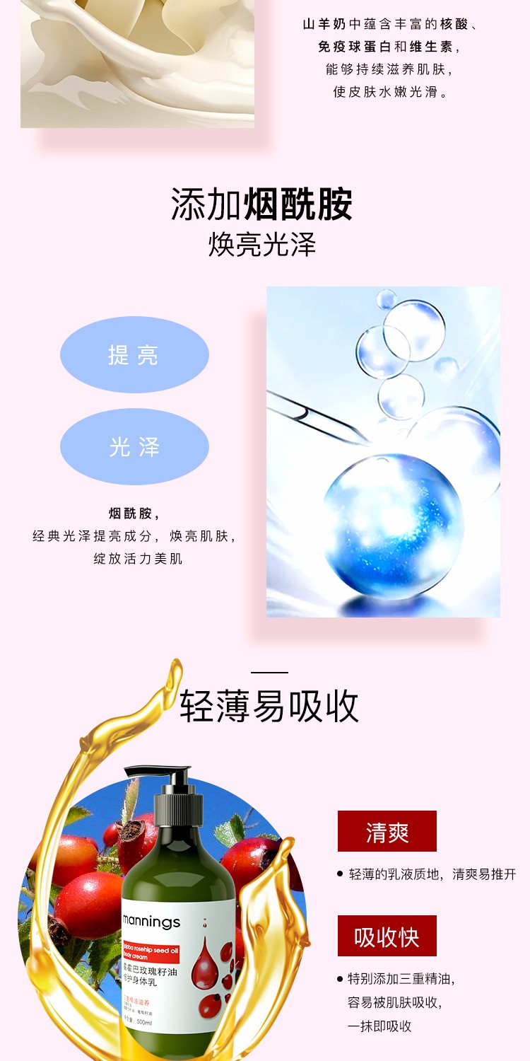 Mannings Jojoba Repair Moisturizing Darkening Body Lotion Women's Niacinamide Moisturizer (new and old packaging randomly sent) 500ml 1 bottle - Olive Beirun