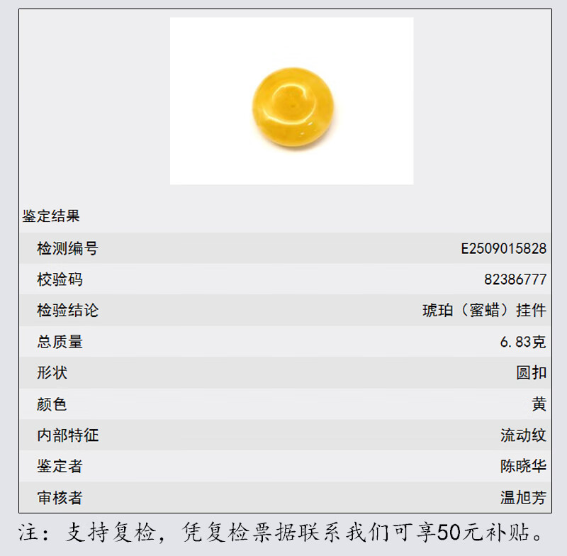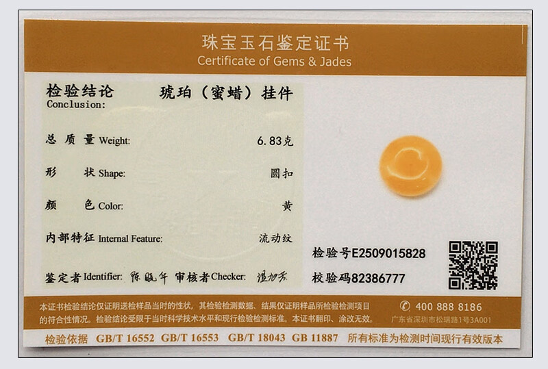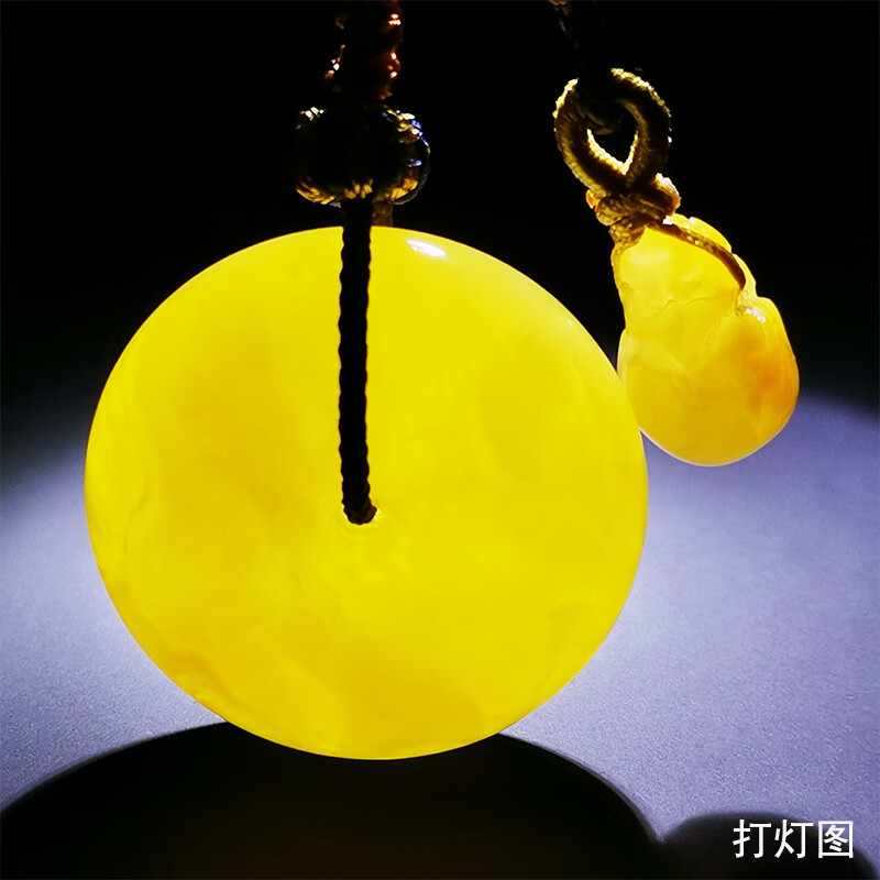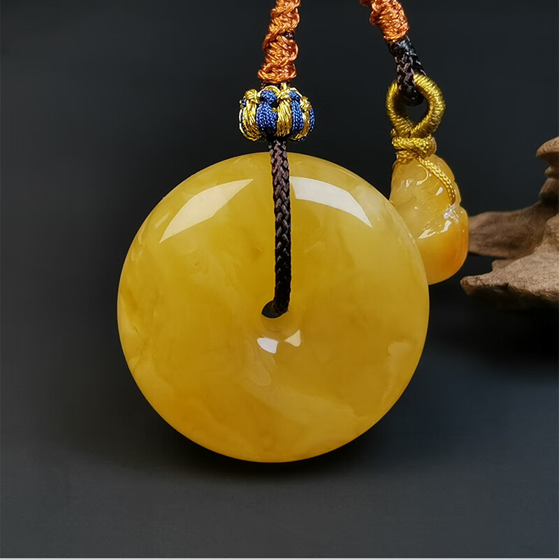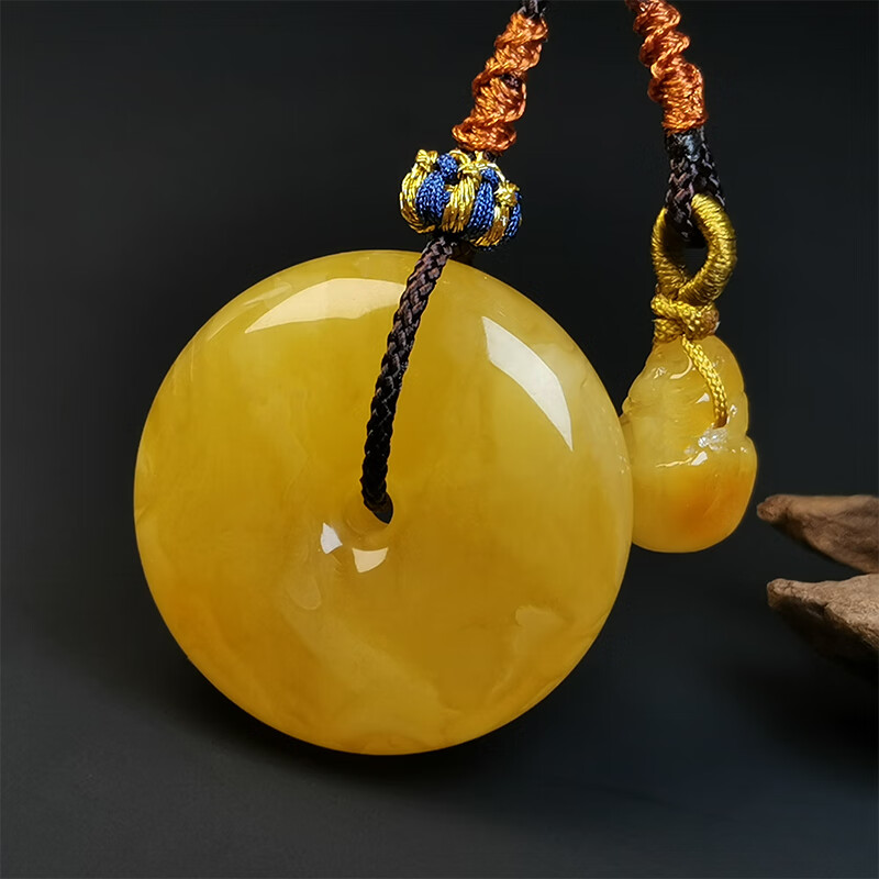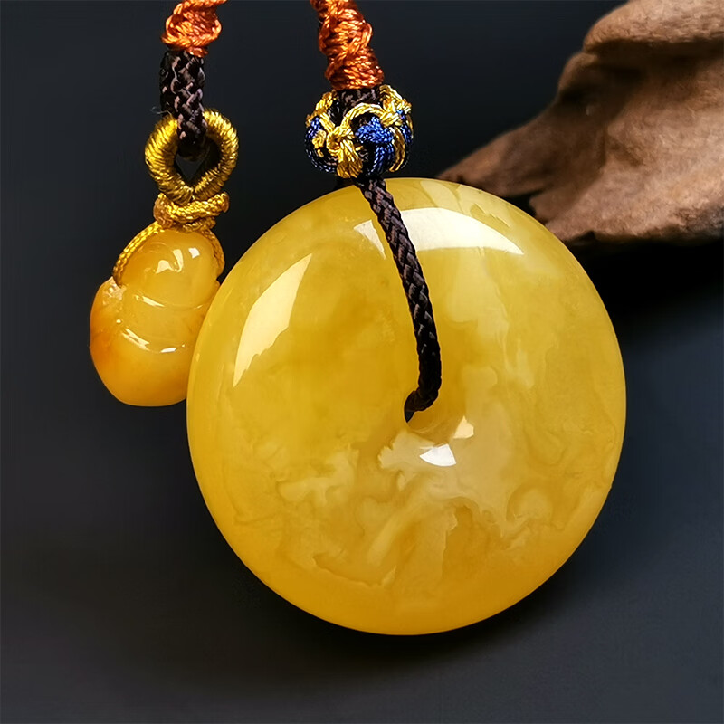 Hupai, one thing, one picture, one certificate, beeswax keychain safety buckle for men and women, Russian chicken fat yellow necklace, beeswax pendant, 6.83g, 29*11mm