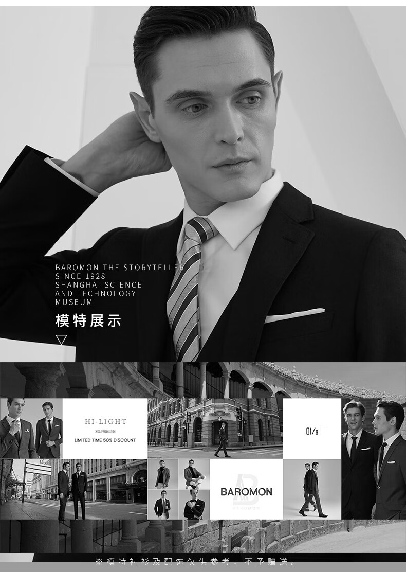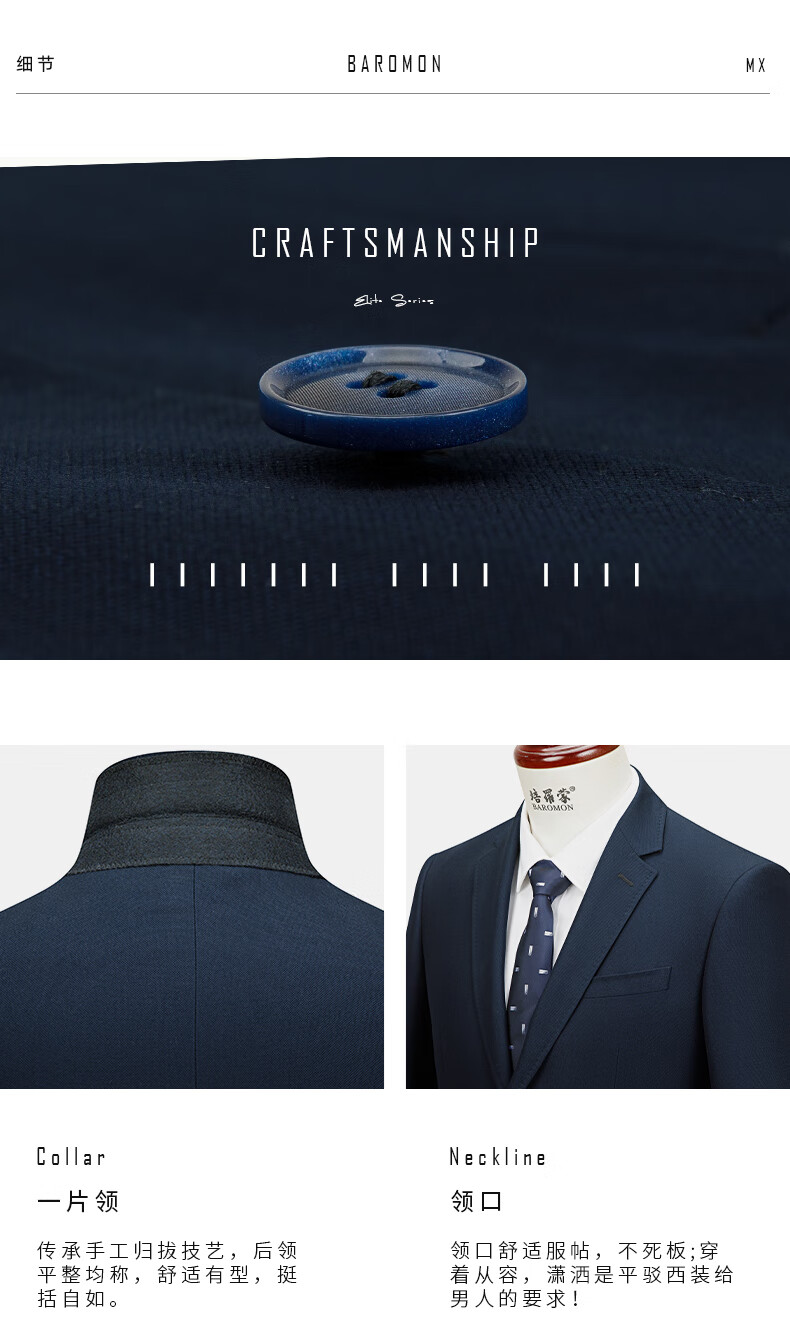 BAROMON anti-wrinkle and iron-free suit men's jacket business light formal suit men's suit top single suit navy blue-single top 175A (single top)