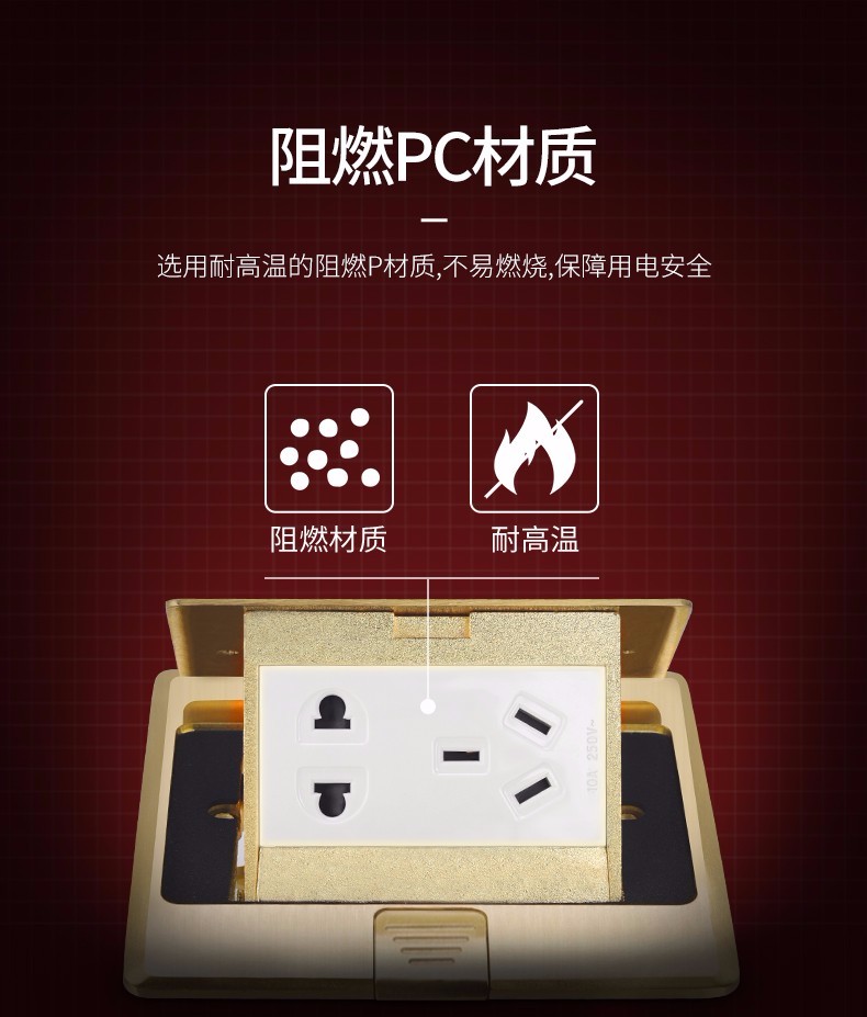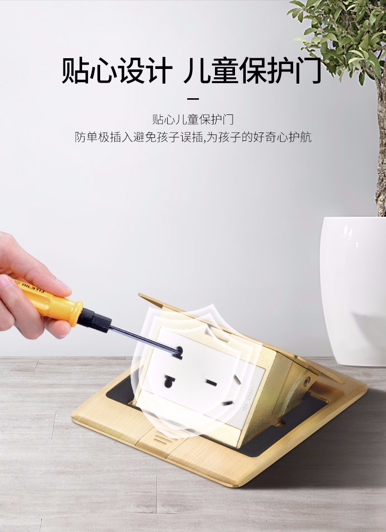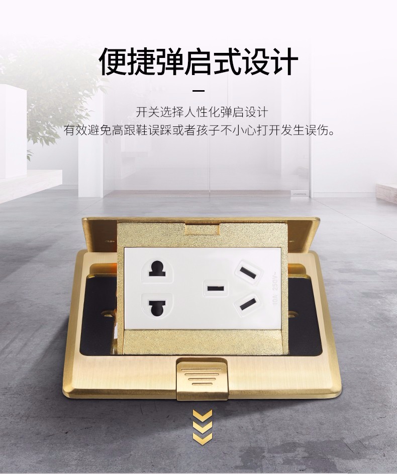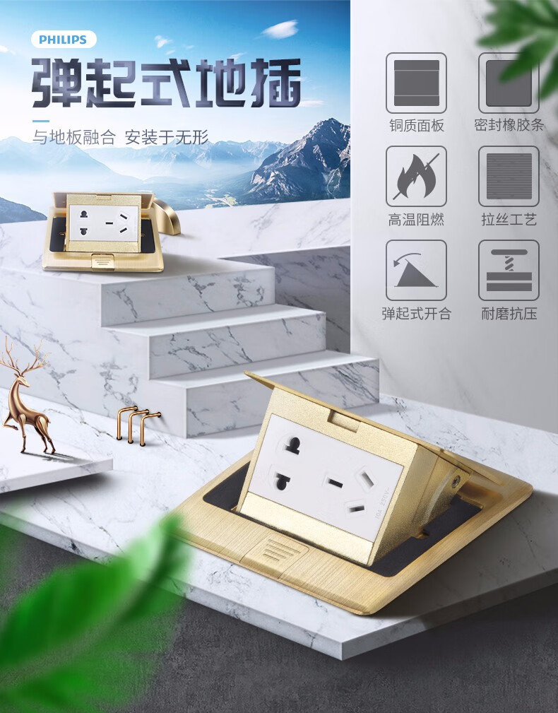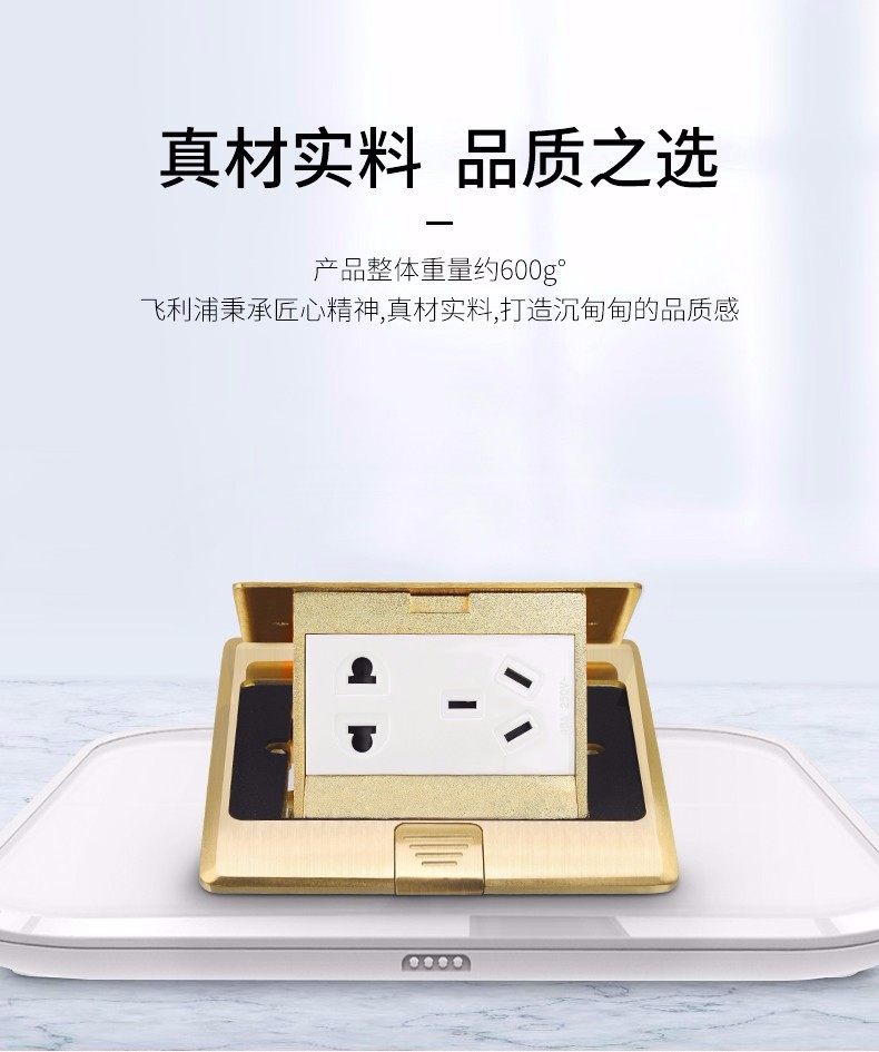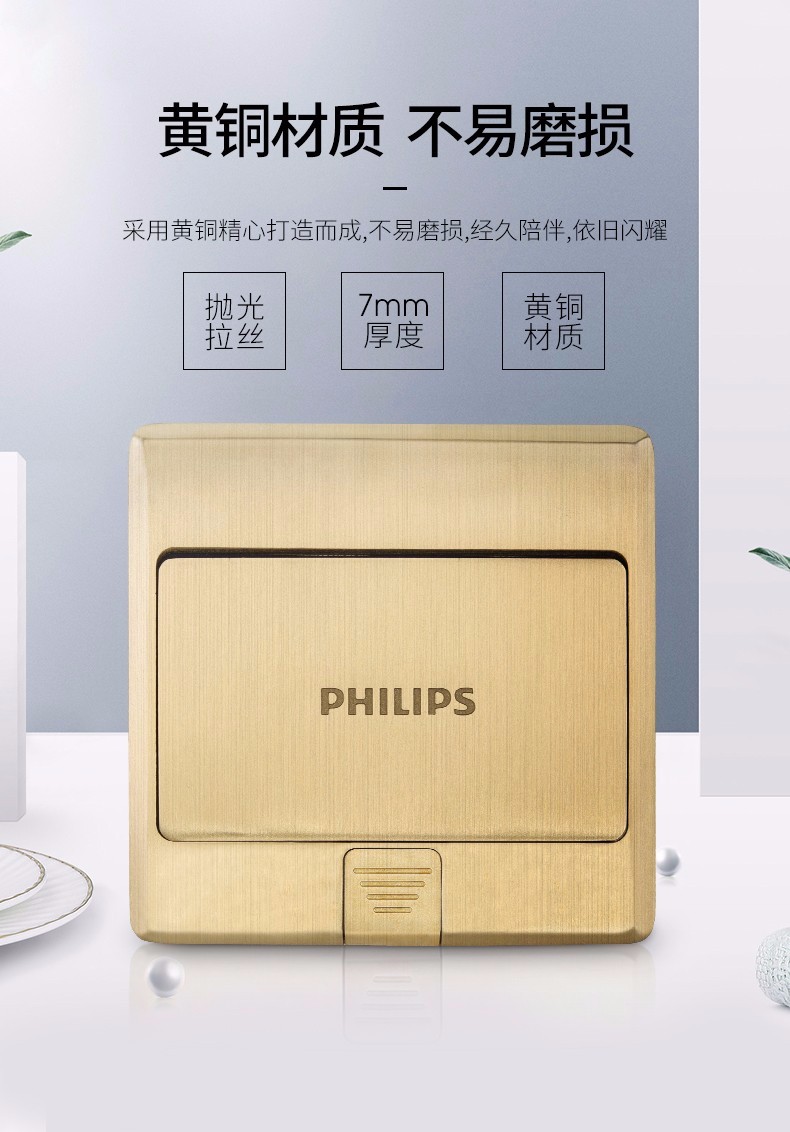 Philips switch socket panel five-hole floor socket hidden pop-up waterproof floor plug copper alloy five-hole floor plug copper alloy five-hole floor plug pop-up type