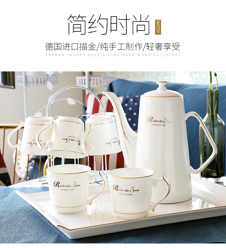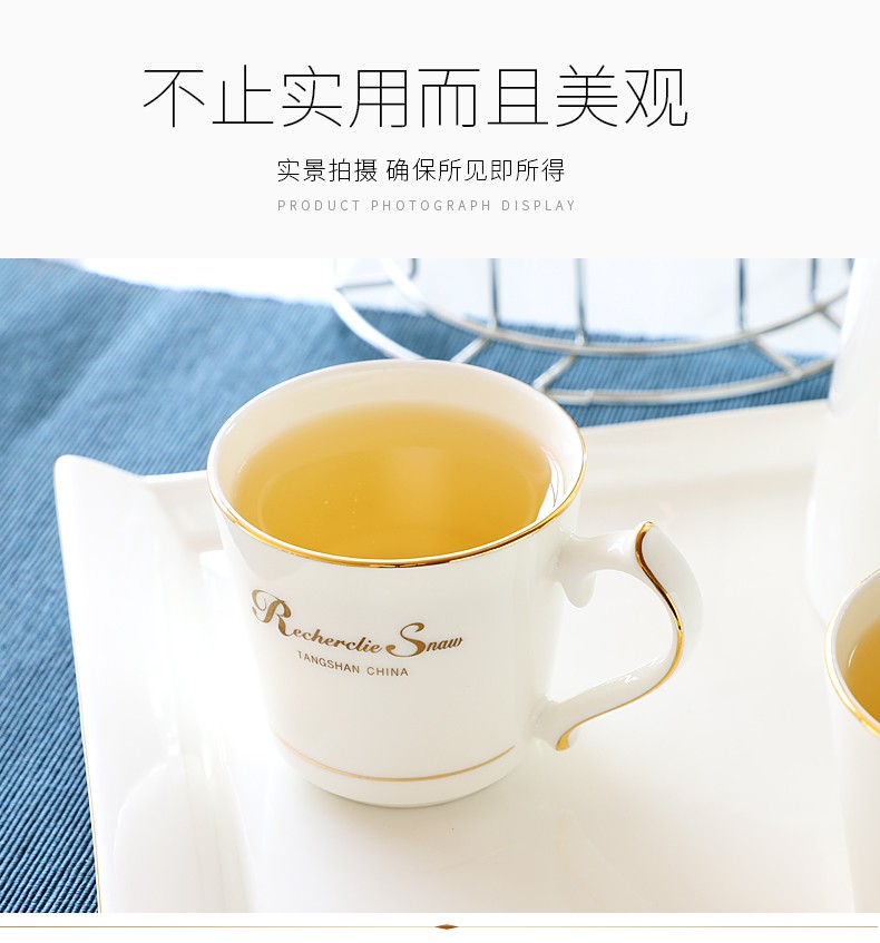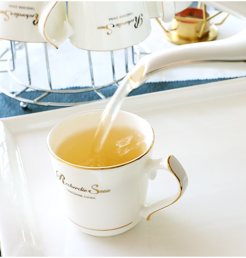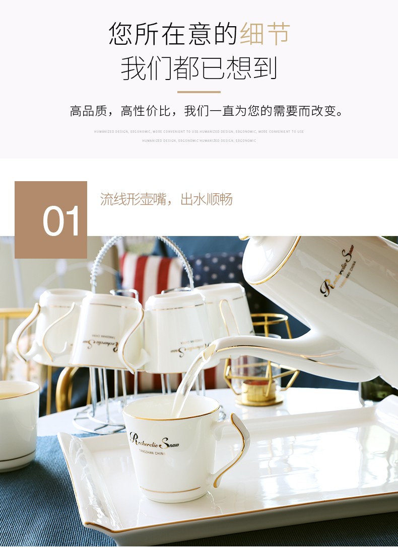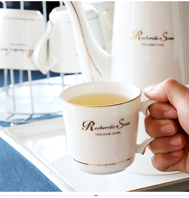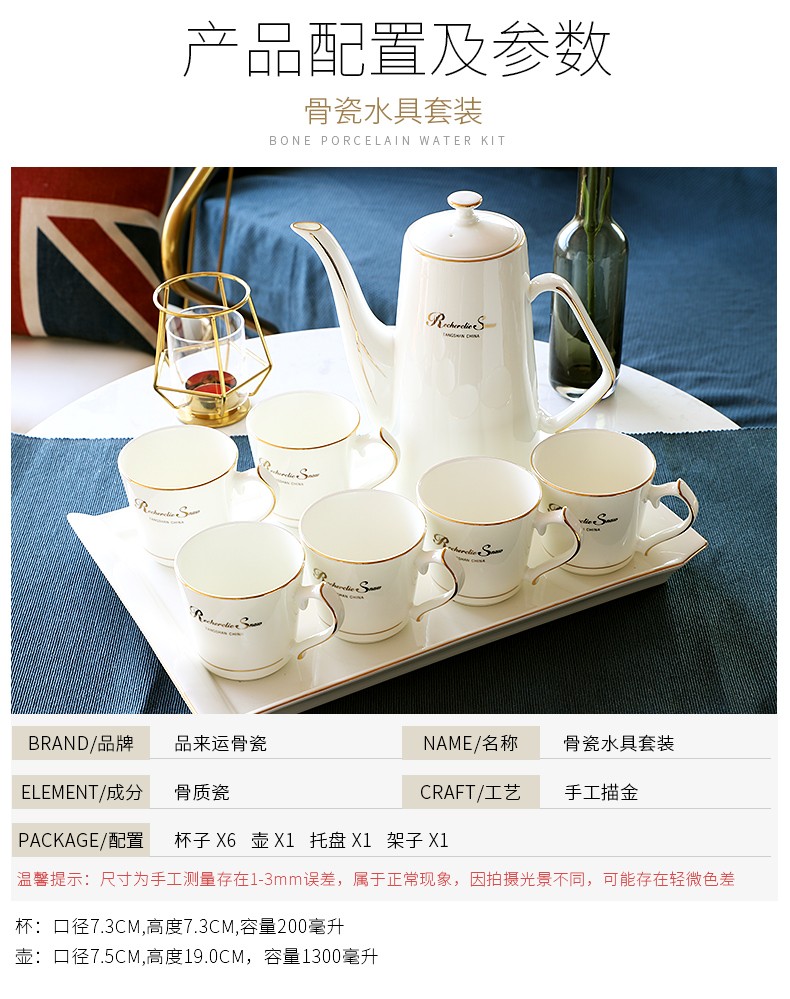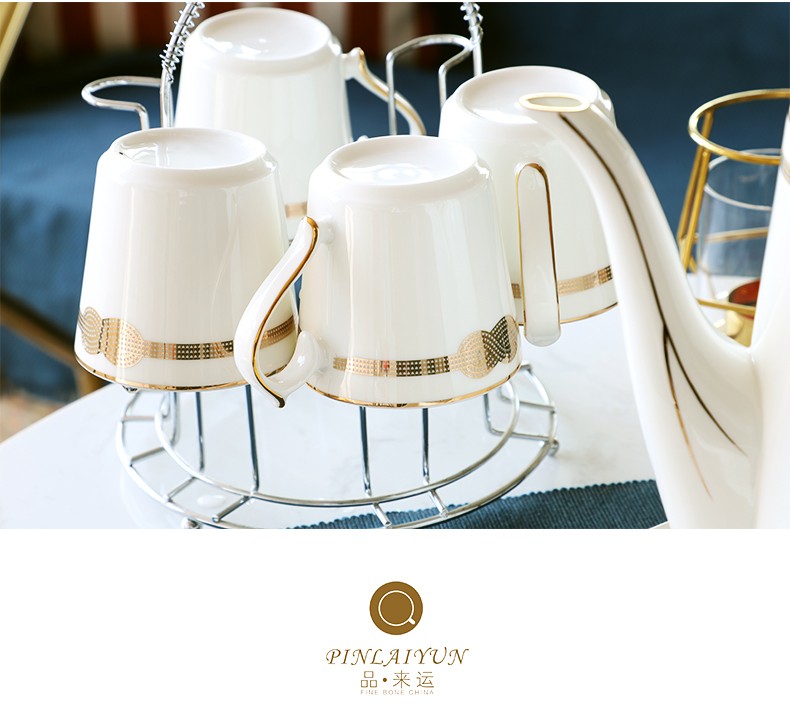 Pinlaiyun ceramic tea set set bone china tea cup living room light luxury teapot household water cup simple water set afternoon tea set gold R beautiful water set 9 pieces (with bone china tea tray)