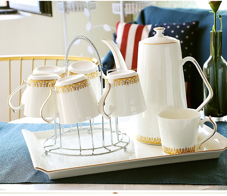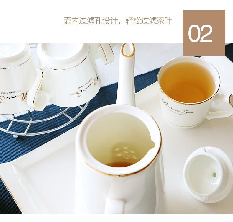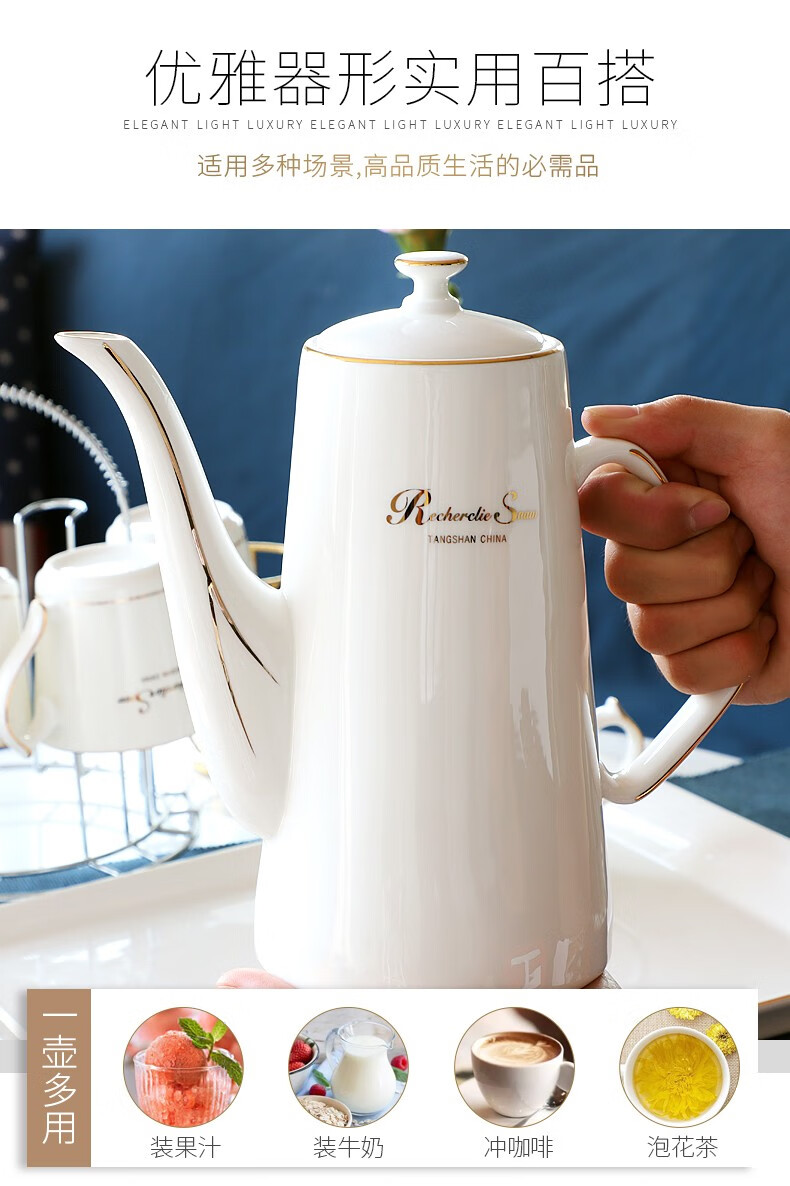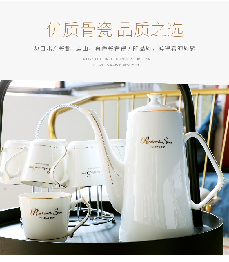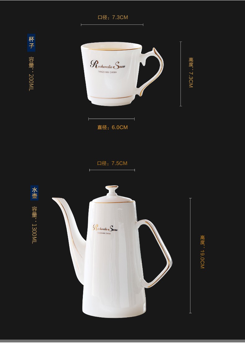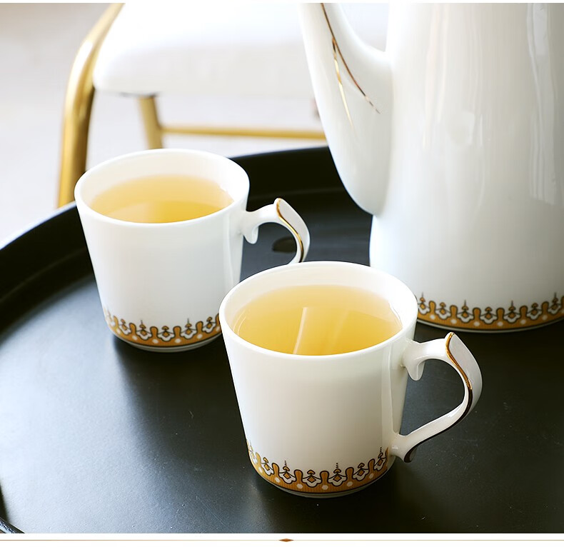 Pinlaiyun ceramic tea set set bone china tea cup living room light luxury teapot household water cup simple water set afternoon tea set gold R beautiful water set 9 pieces (with bone china tea tray)
