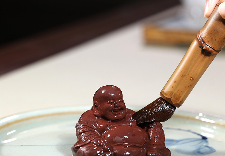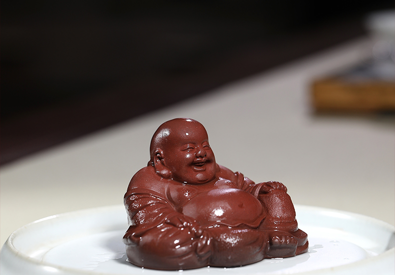 Wanhuyuan purple sand tea pet ornaments can raise Maitreya Buddha tea pet Kung Fu tea set accessories tea play tea table tea table tea ceremony Zen tea set ornaments Maitreya Buddha medium size