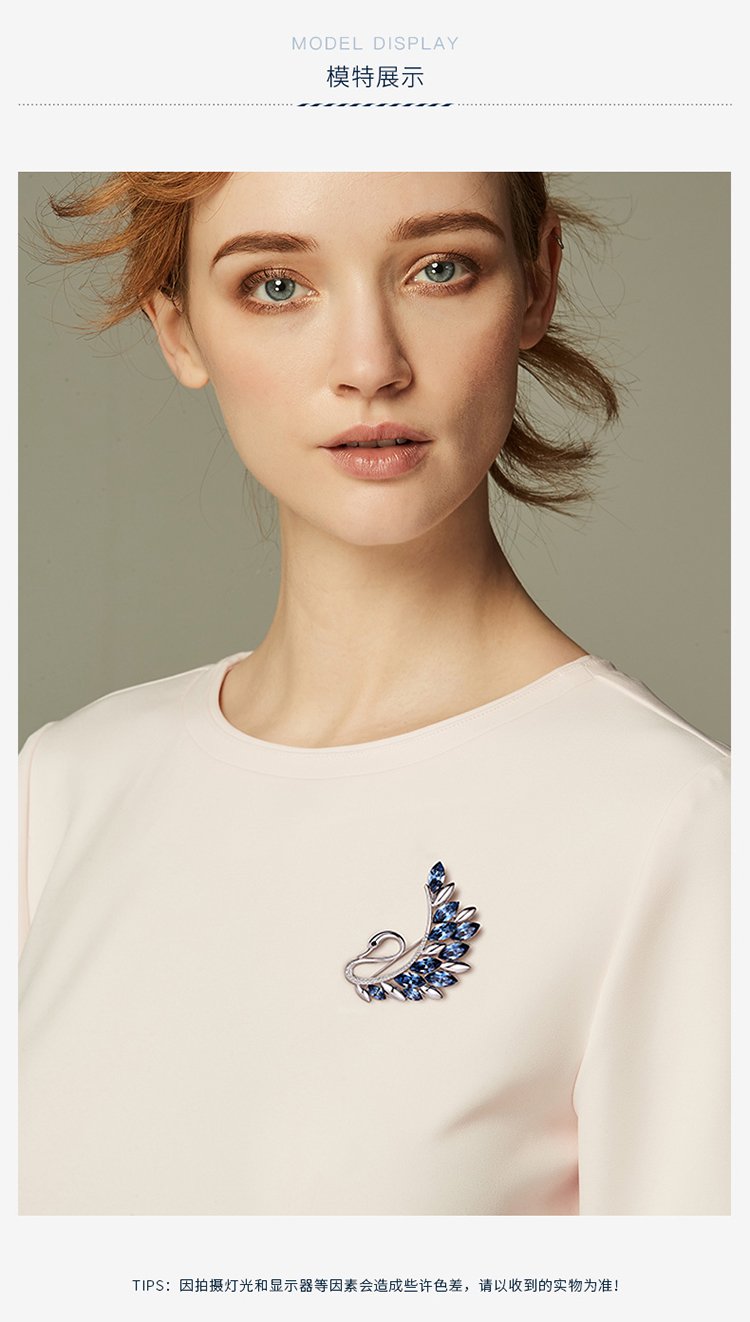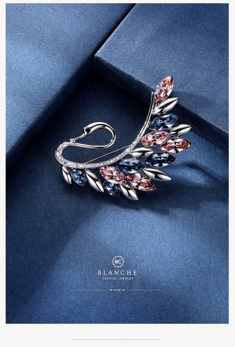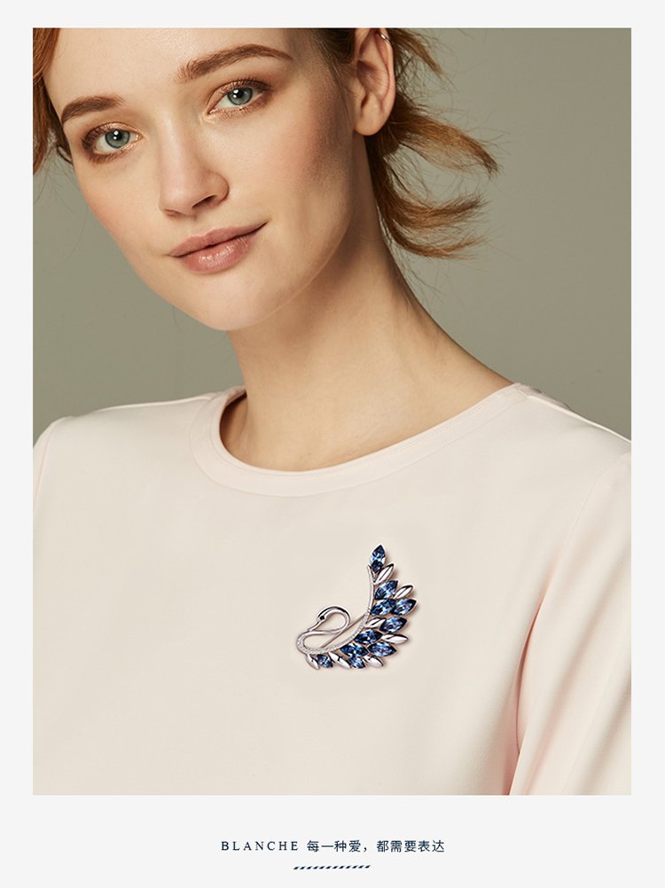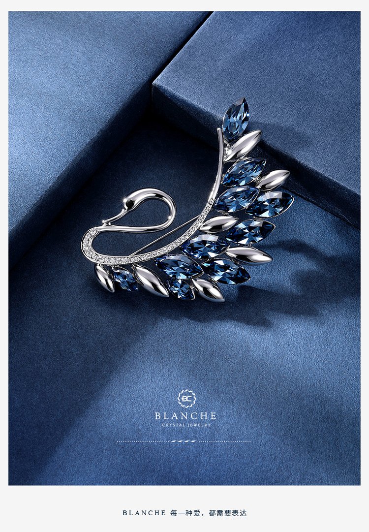 Goddess gift crystal brooch women's accessories Korean swan corsage brooch elegant sweater chain blue