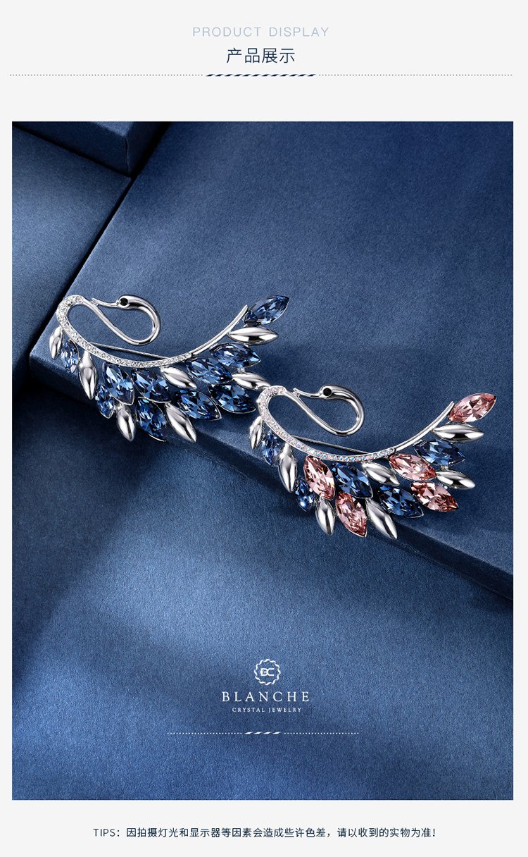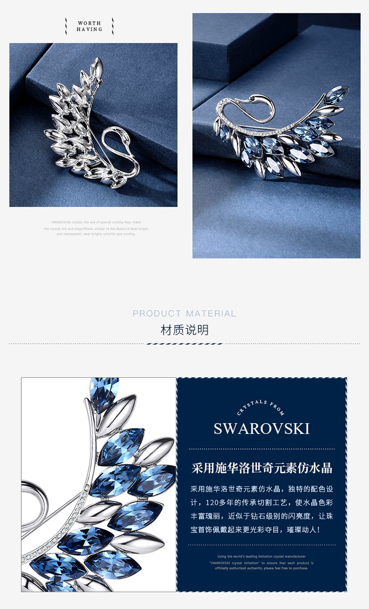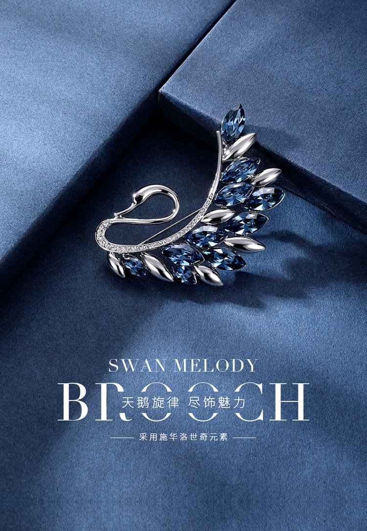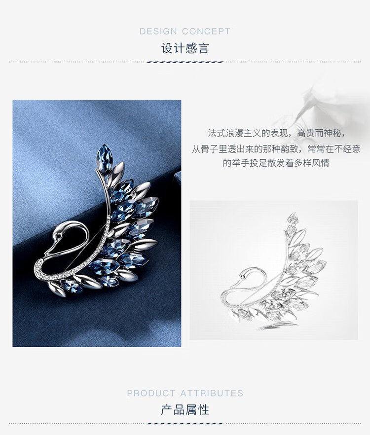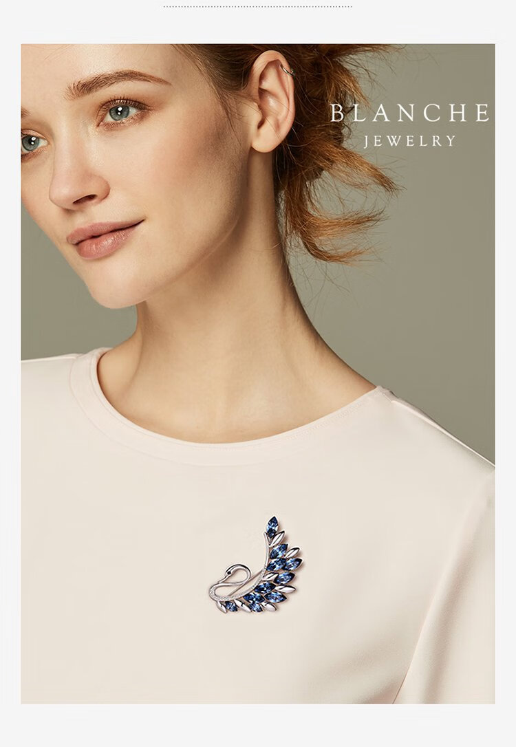 Goddess gift crystal brooch women's accessories Korean swan corsage brooch elegant sweater chain blue