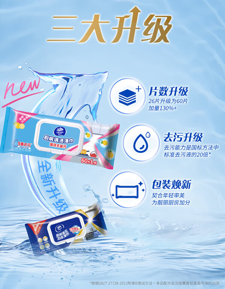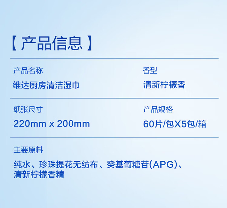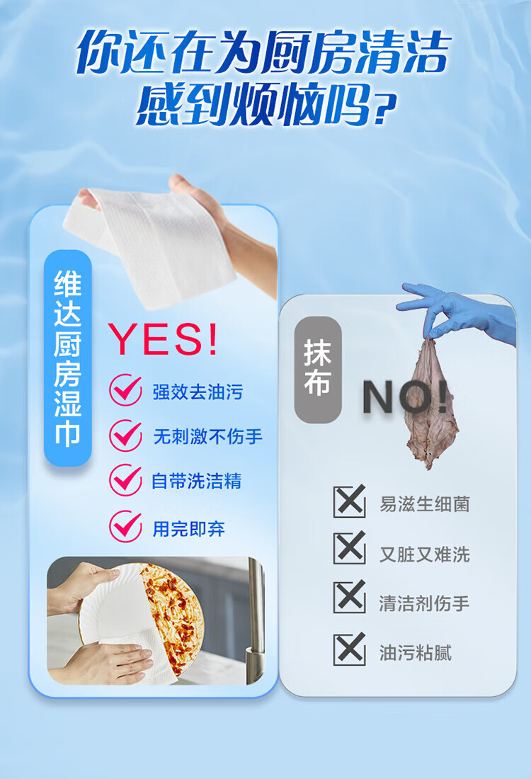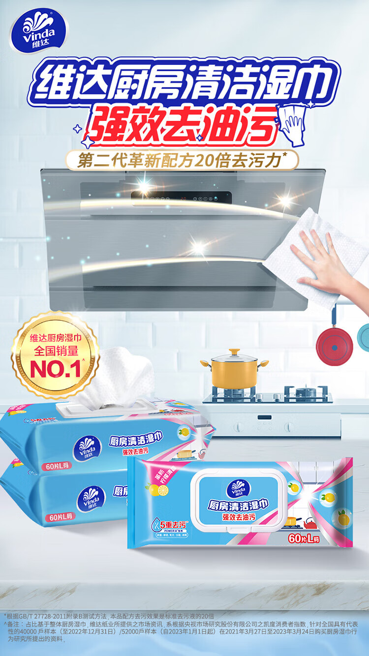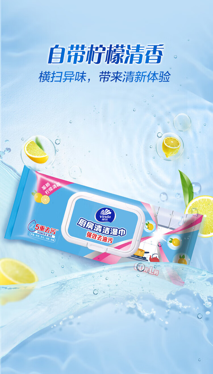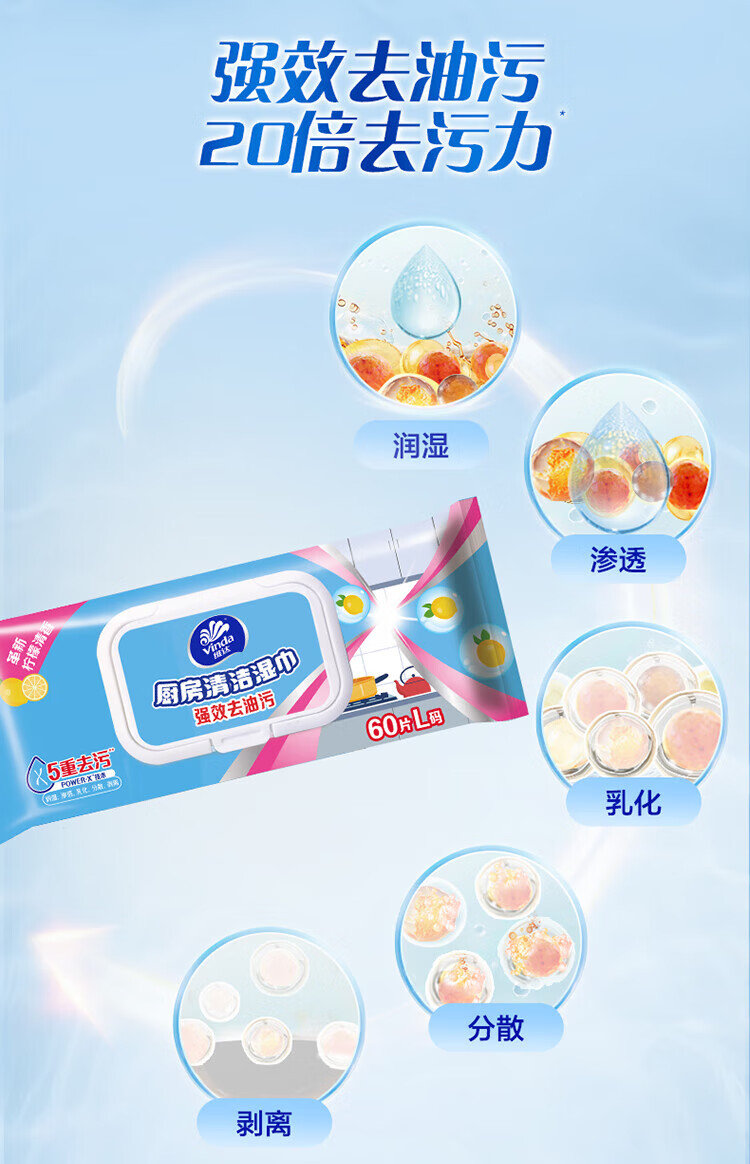 维达(Vinda)厨房湿巾 60片*5包 厨房用纸 加大加量去油污