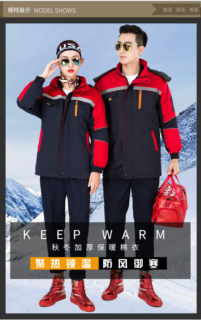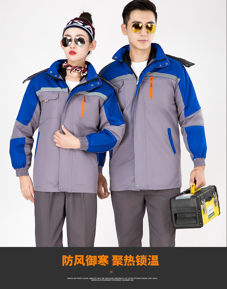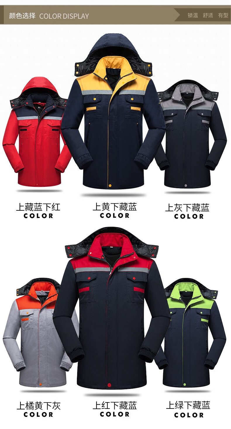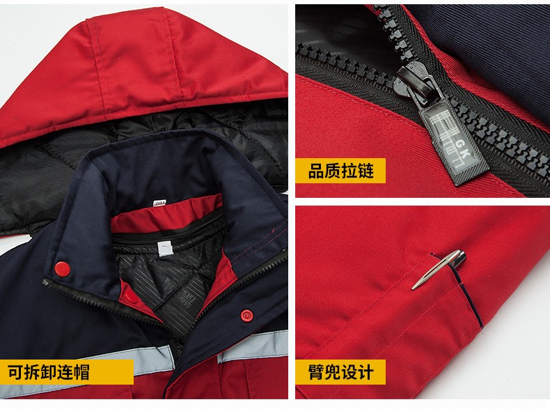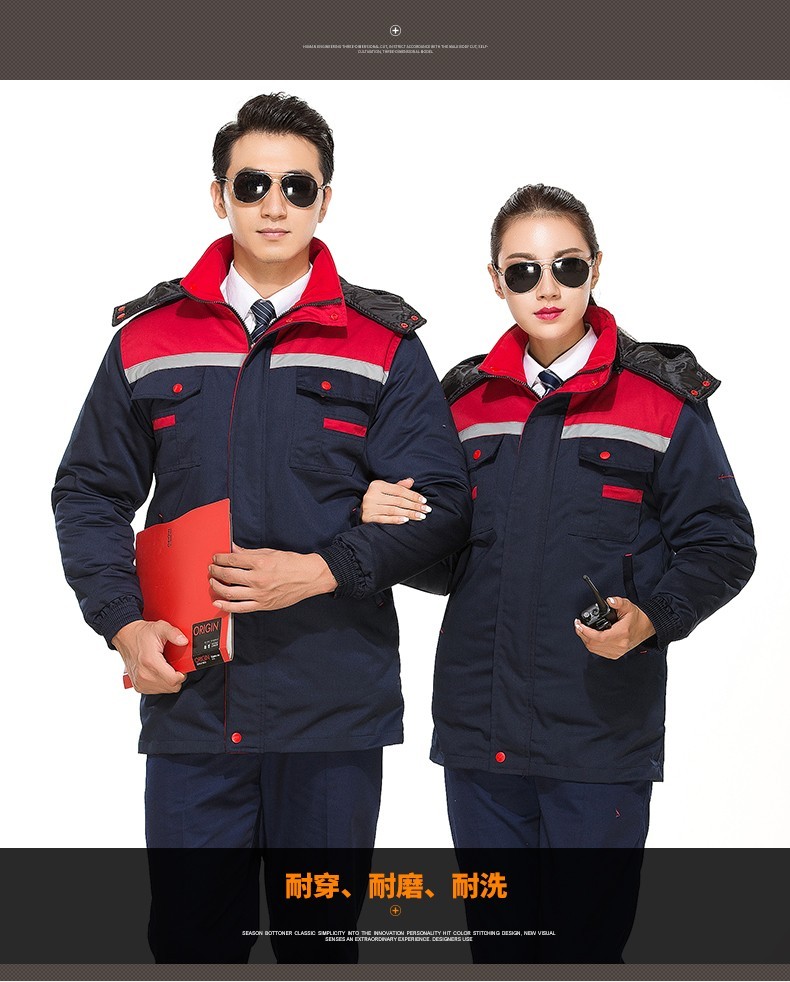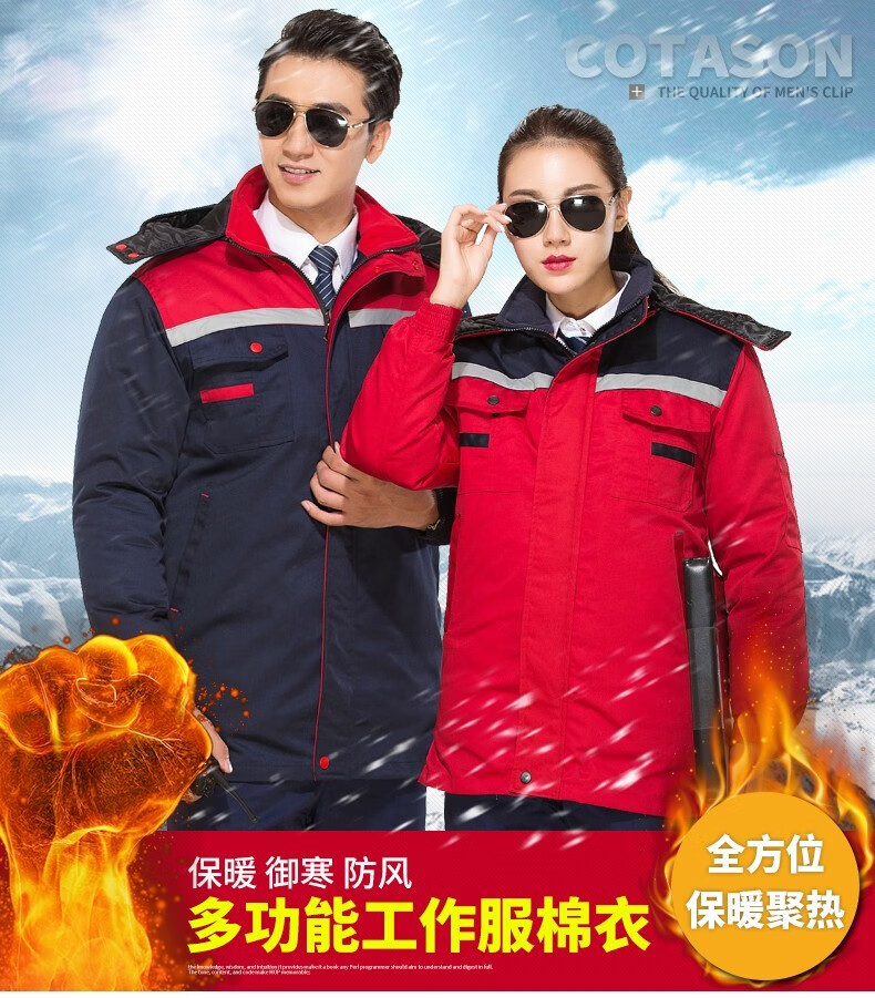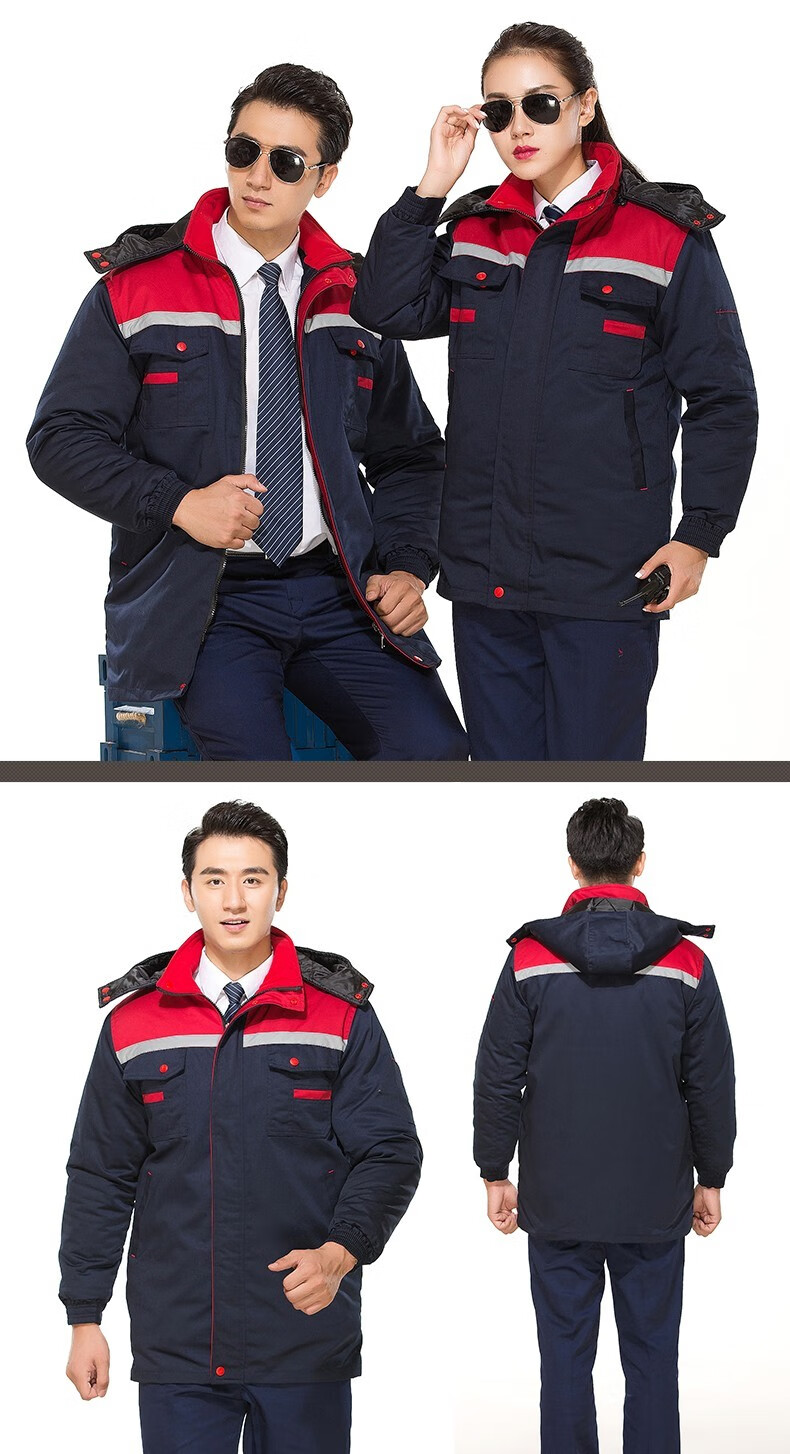 Savannah Valley winter thickened work clothes, cotton clothes, cold-proof and warm labor protection clothes, cotton jackets, logistics property, electric welding cotton clothes, work clothes, customized, navy blue and red, non-detachable 175/XL