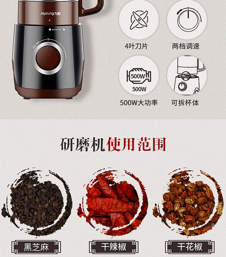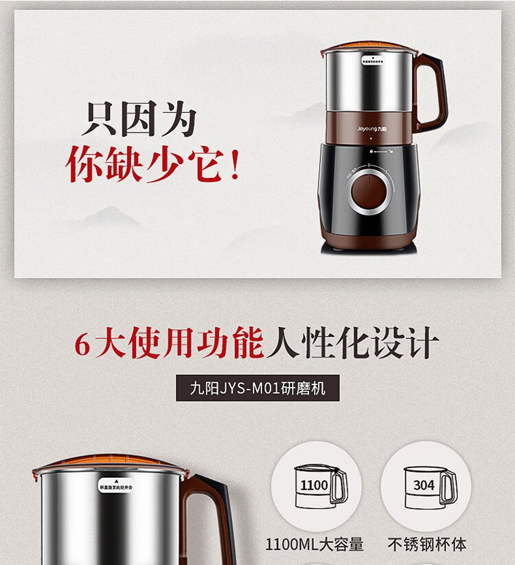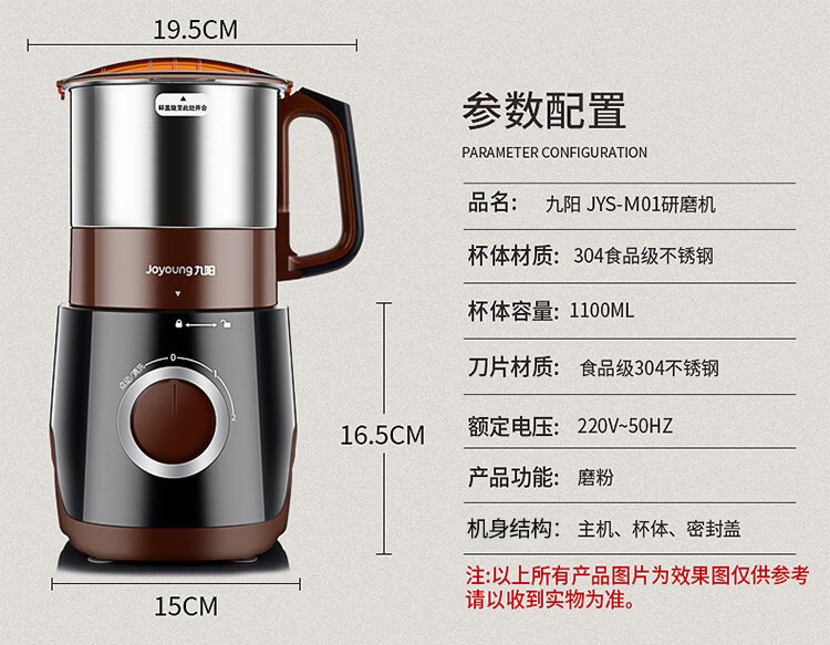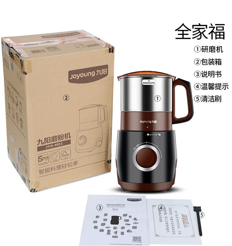 Joyoung grinder household cooking machine dry grinding grinder for grains and grains ultra-fine electric stainless steel grinder Chinese herbal medicine small grinder JYS-M01