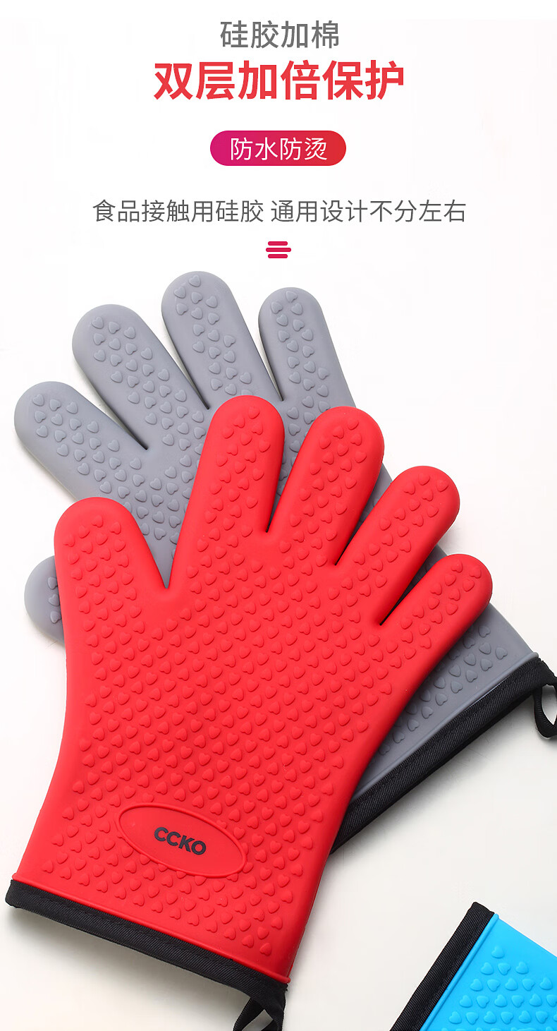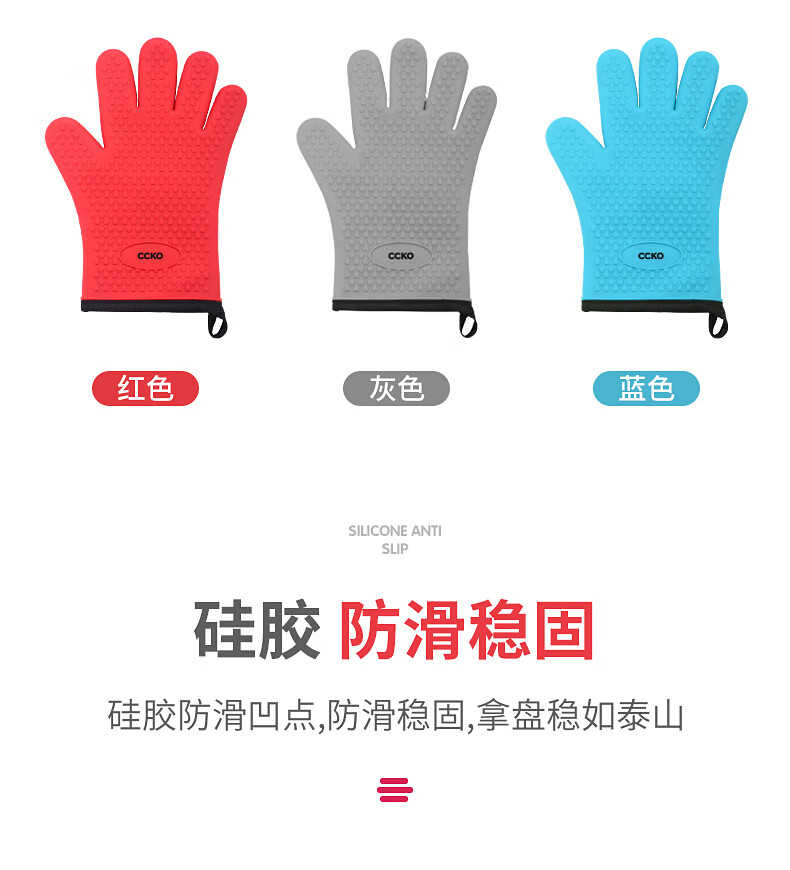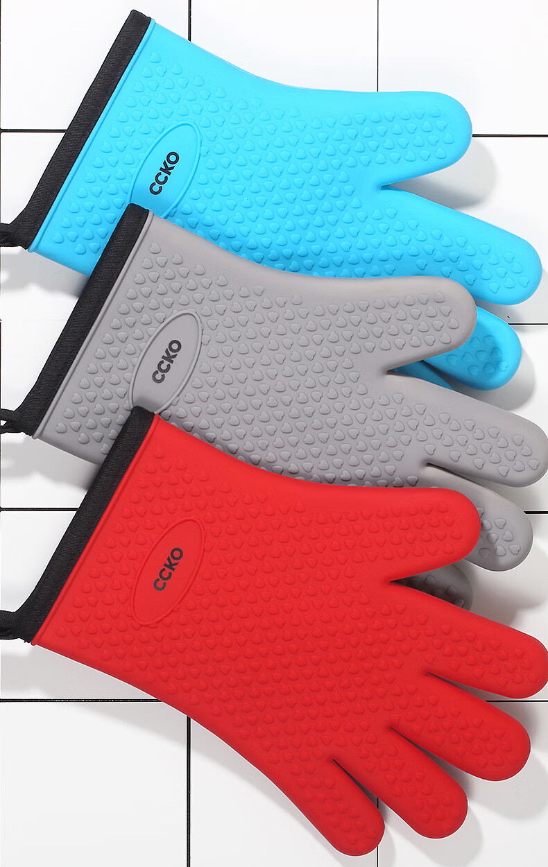 CCKO heat insulation anti-scalding gloves thickened silicone kitchen household oven microwave steamer high temperature baking special anti-scalding gloves (gray GY)