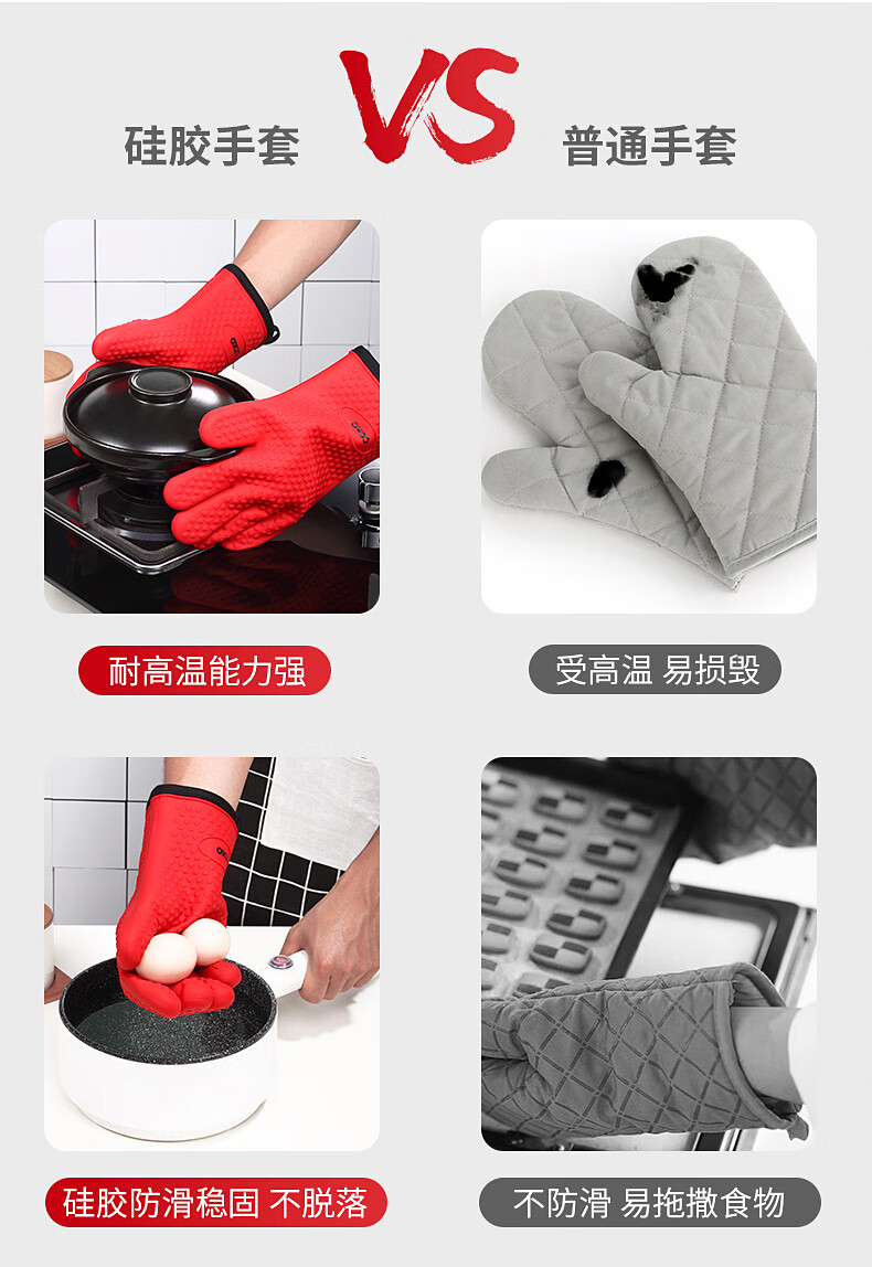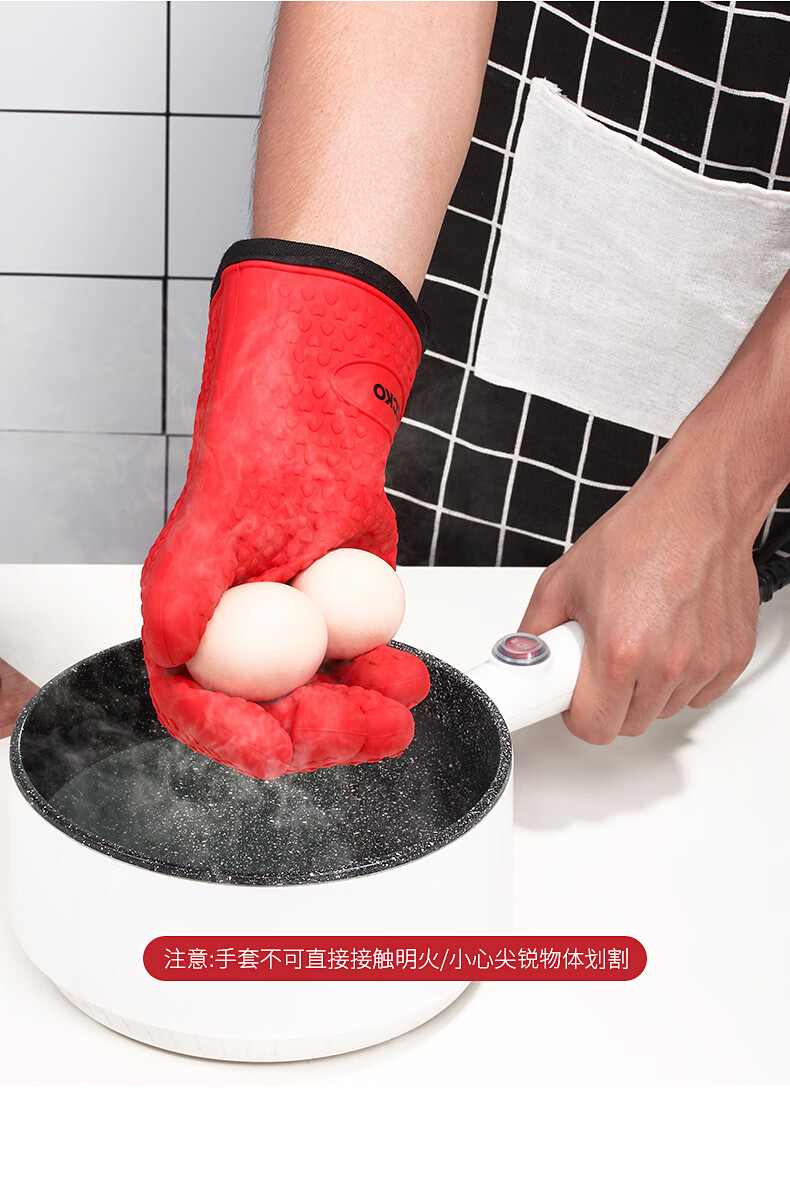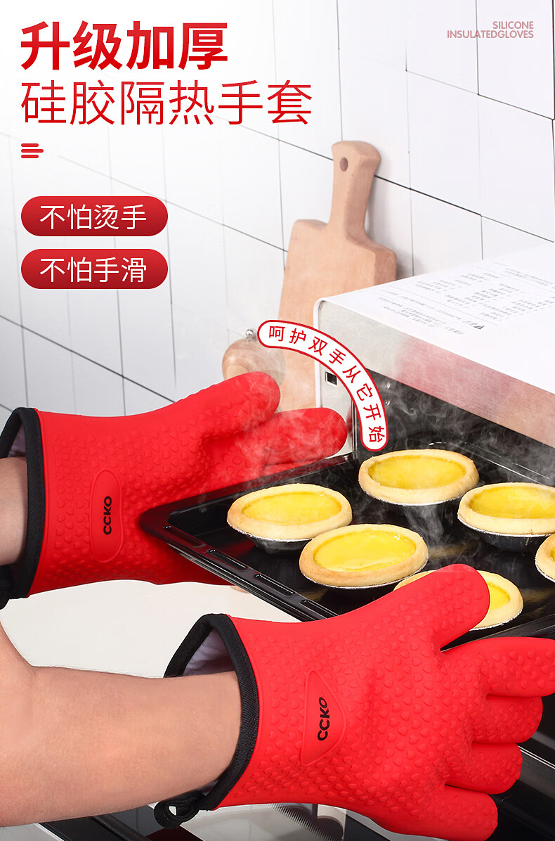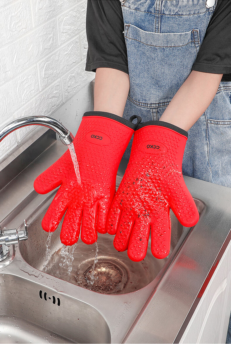 CCKO heat insulation anti-scalding gloves thickened silicone kitchen household oven microwave steamer high temperature baking special anti-scalding gloves (gray GY)