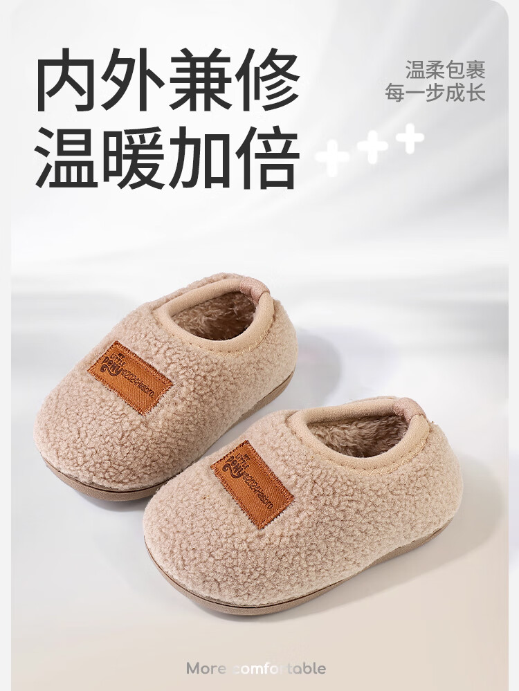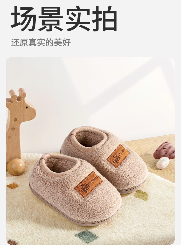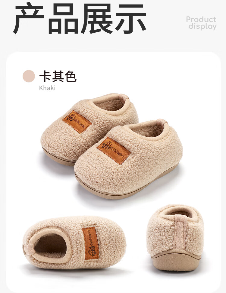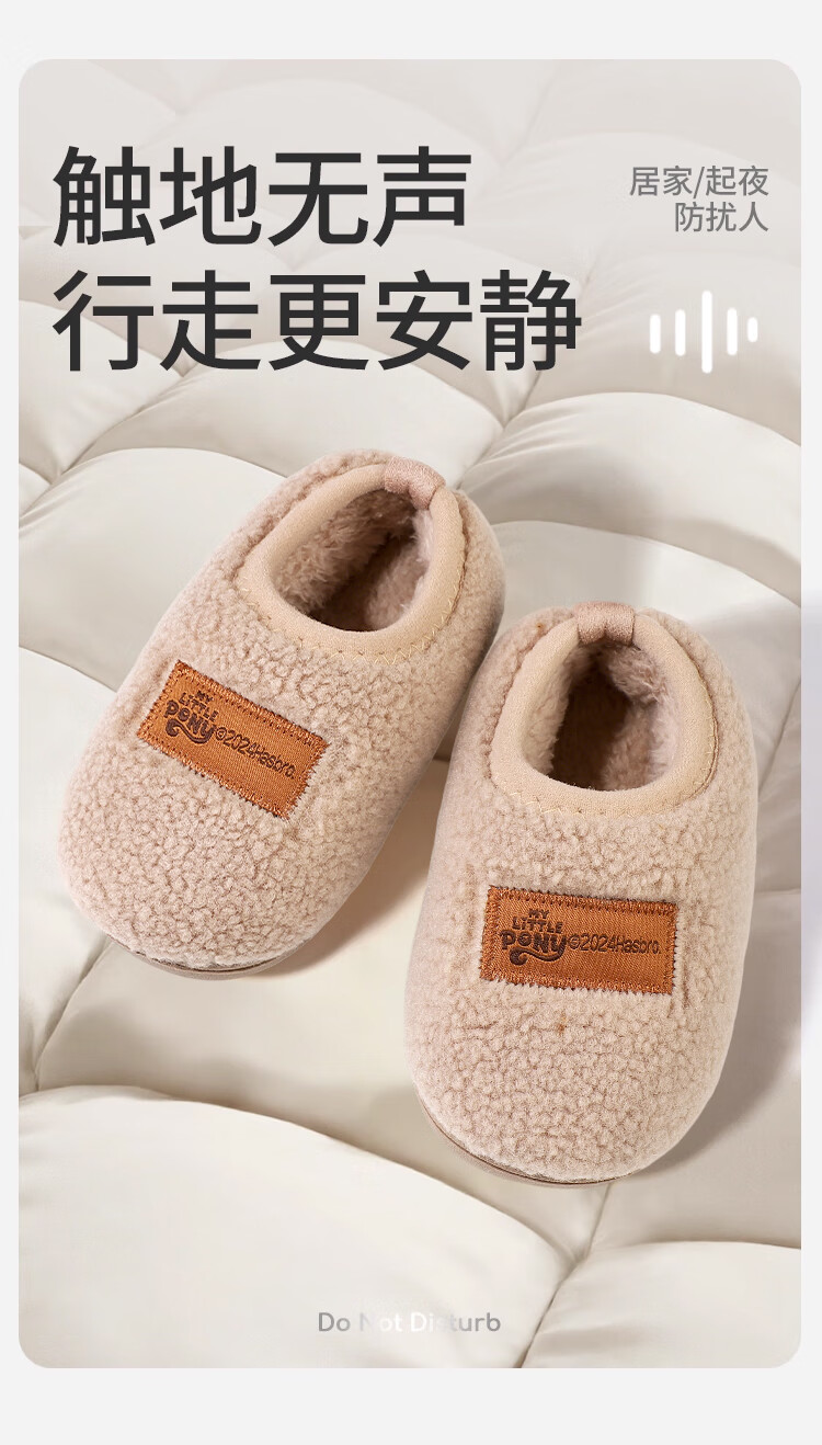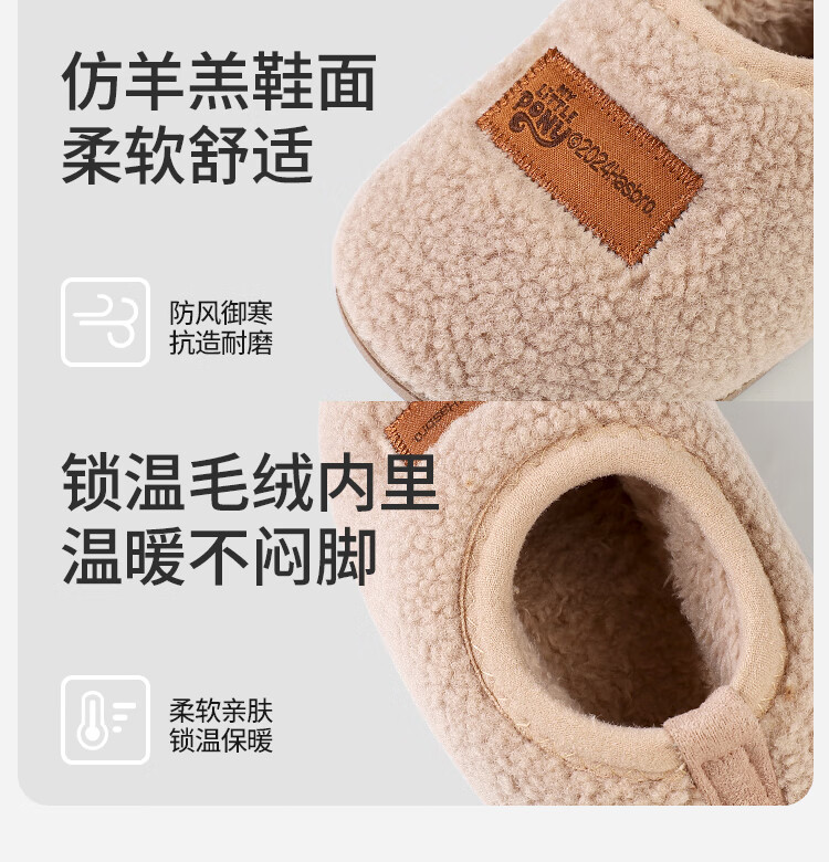 MY LITTLE PONY Children's Cotton Slippers Bag Heels Winter Boys' Floor Shoes Girls' Furry Home Shoes Baby Slippers Children's Cotton Shoes M101 Khaki (It is recommended to choose one size larger for fat feet) 20 Inner length 14cm 150 size Foot length 13-13.5cm