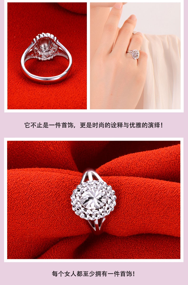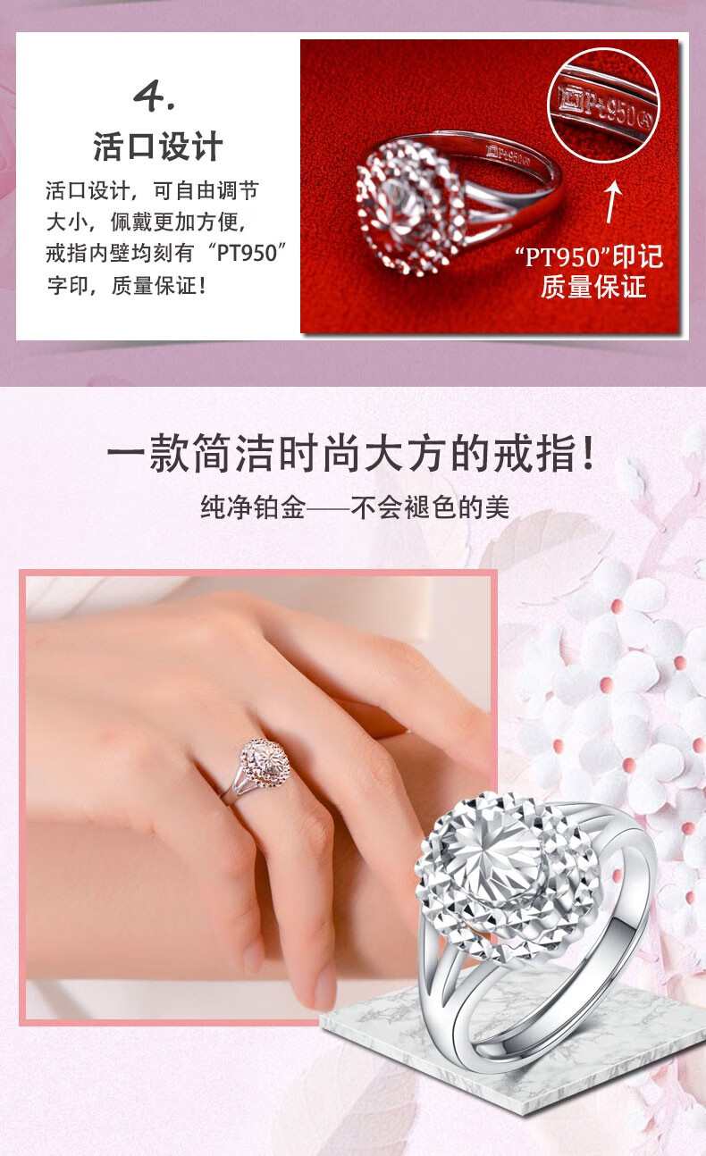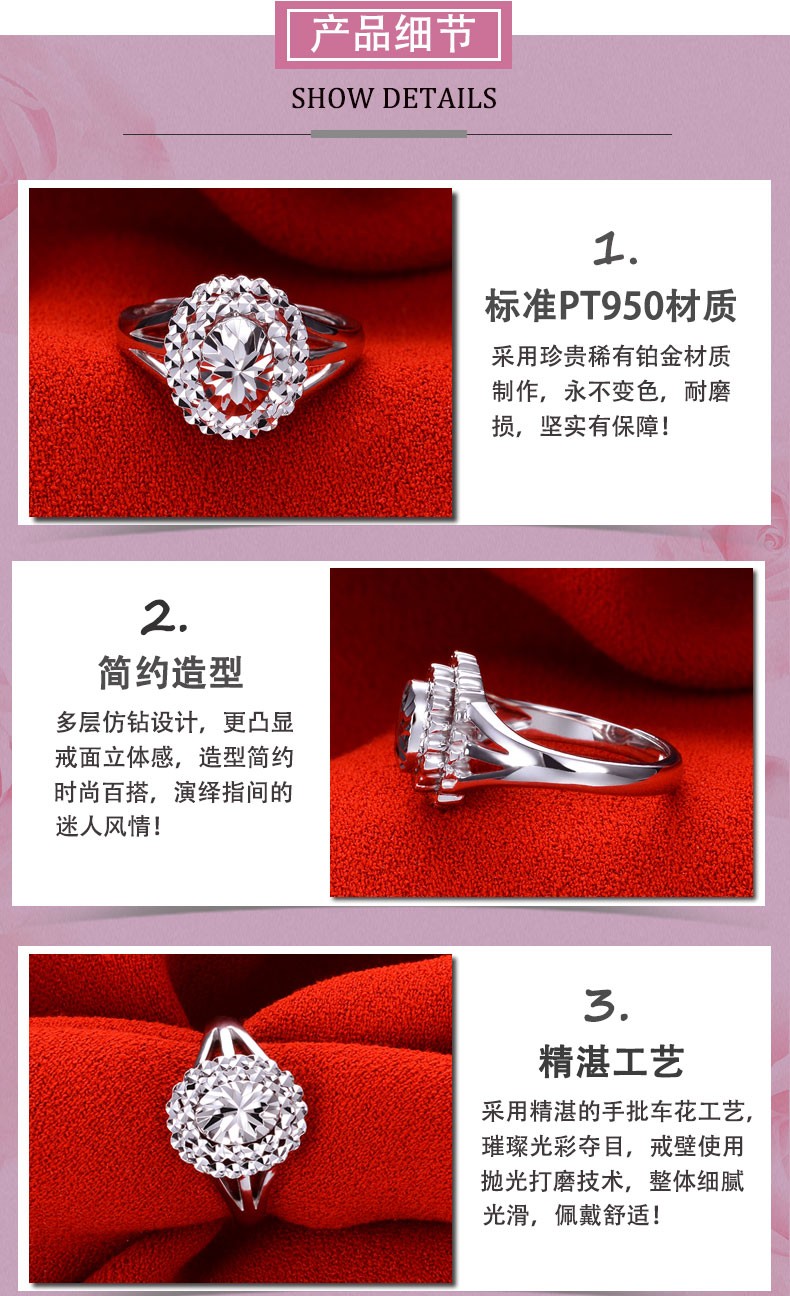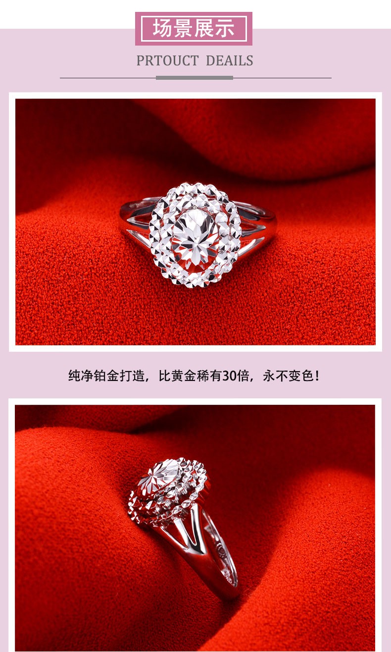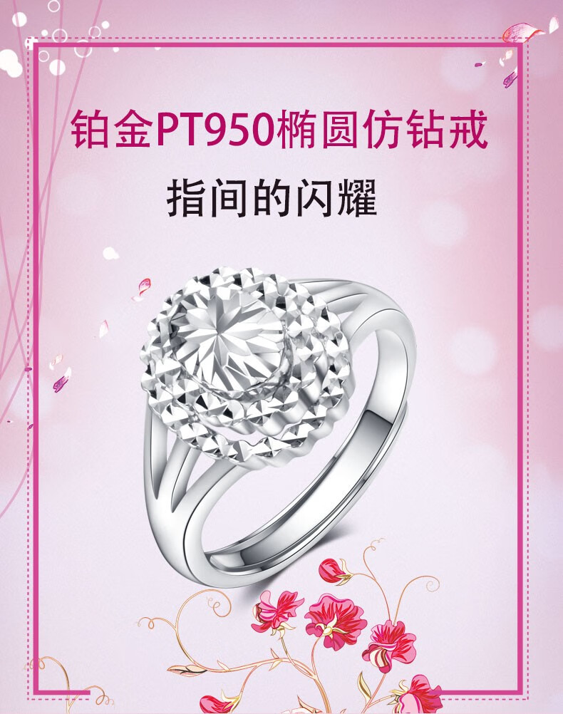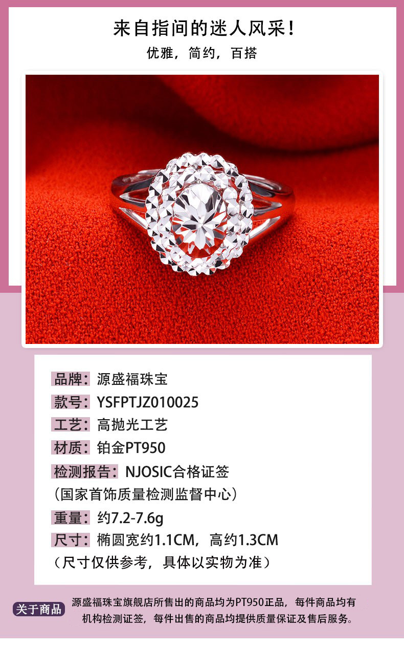 Yuan Shengfu's new PT950 oval imitation diamond platinum ring, fashionable women's platinum ring, adjustable and lively, shiny 7.35g
