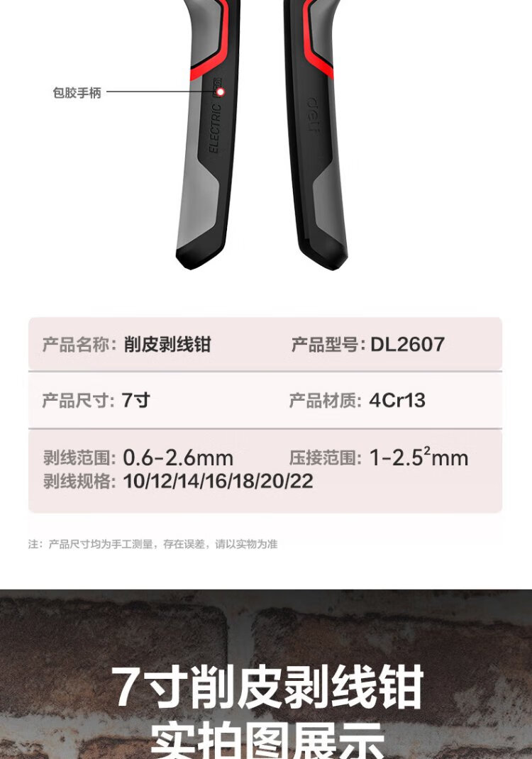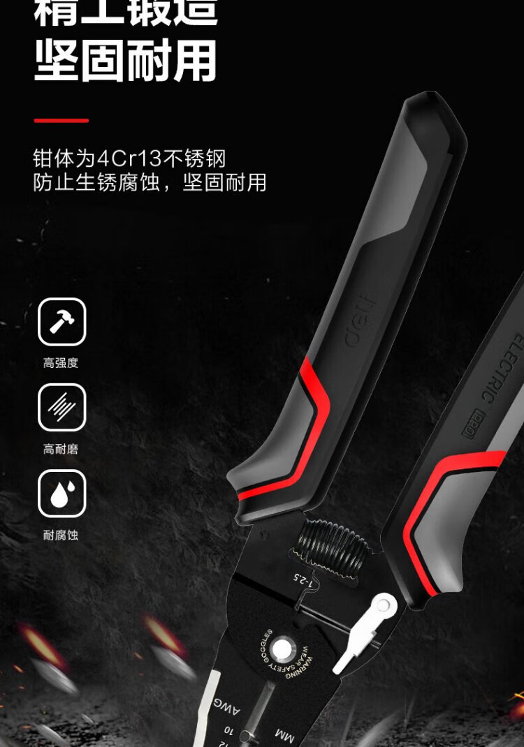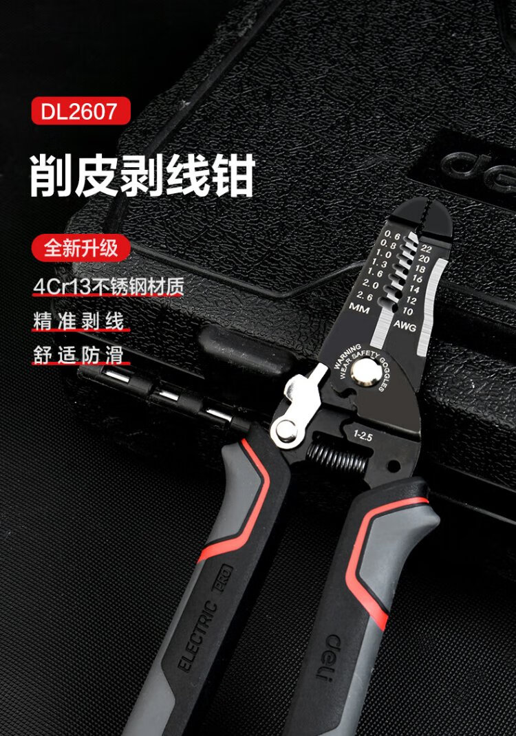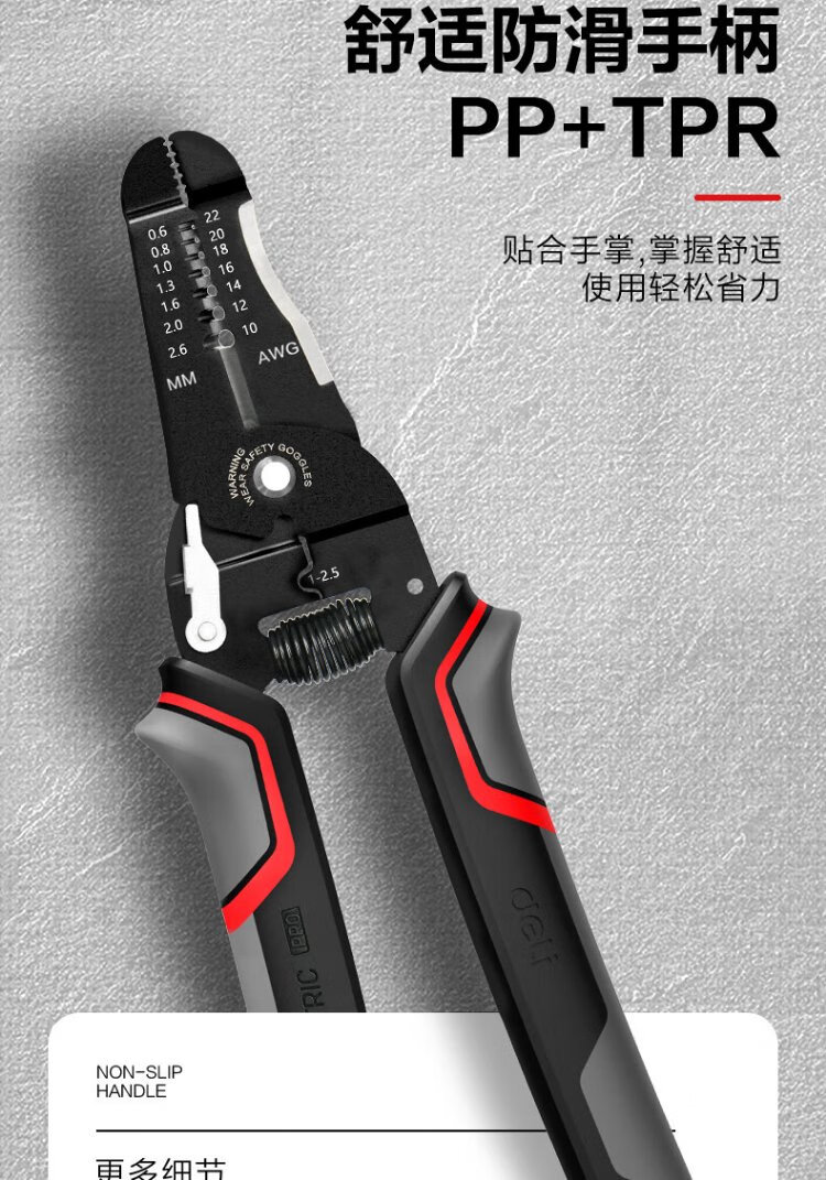 Deli 7-inch wire stripping pliers, seven-speed wire stripping electrician's pliers, wire pulling pliers, multi-functional wire stripping and cutting pliers