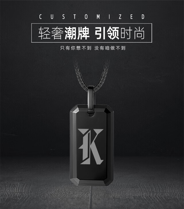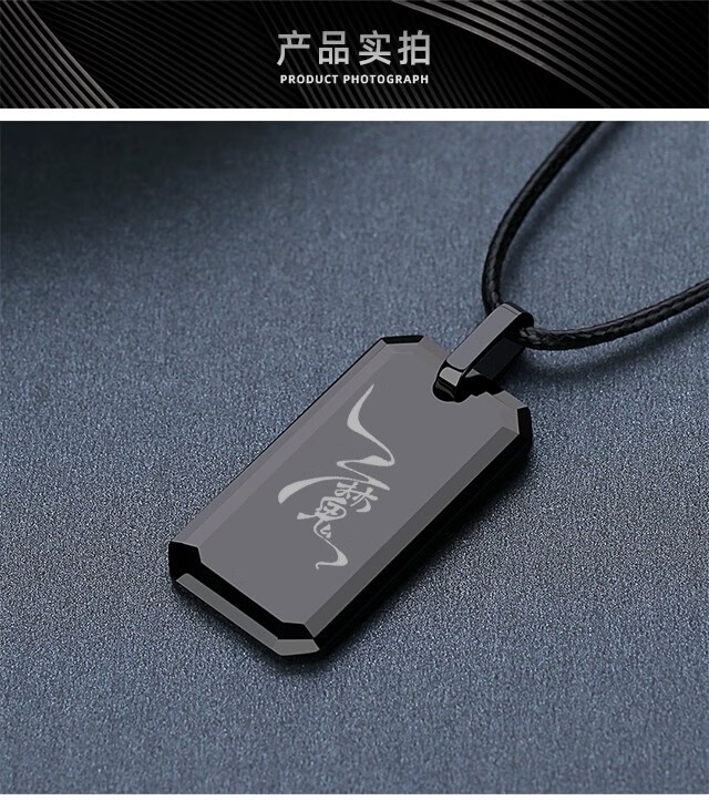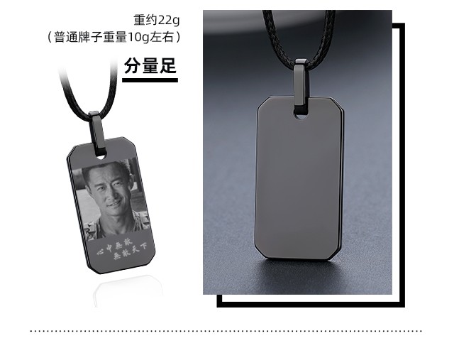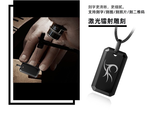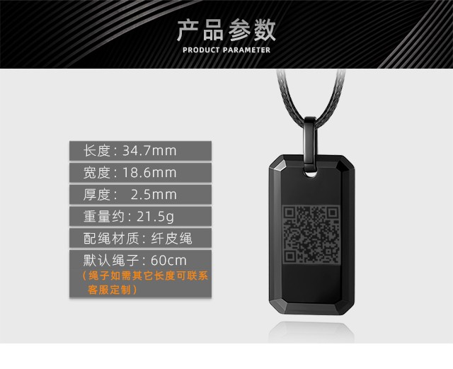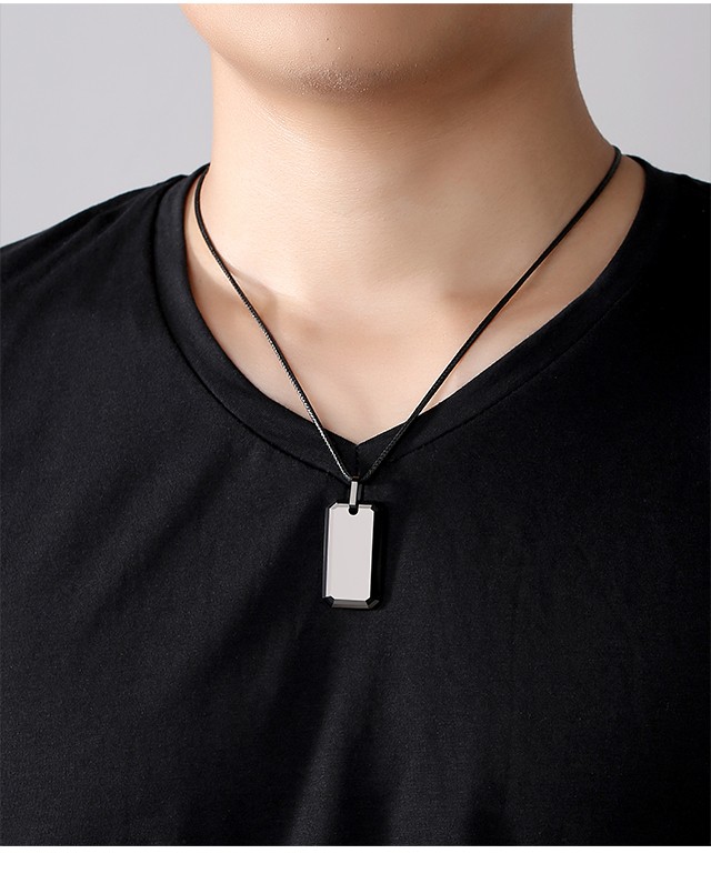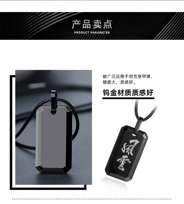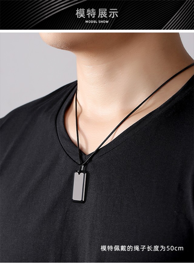 Peifeite black necklace men's trendy simple men's pendant sweater chain trendy pendant tungsten gold necklace men's engraving military brand black length 60cm