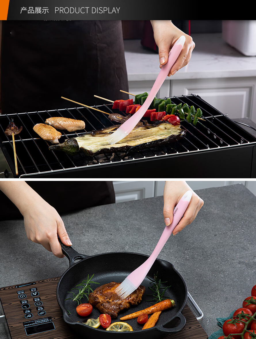 Odro Silicone Brush High Temperature Resistant BBQ Brush Oil Brush Bread Pancake Brush Baking Tool NO-SS Silicone Oil Brush (Pink)