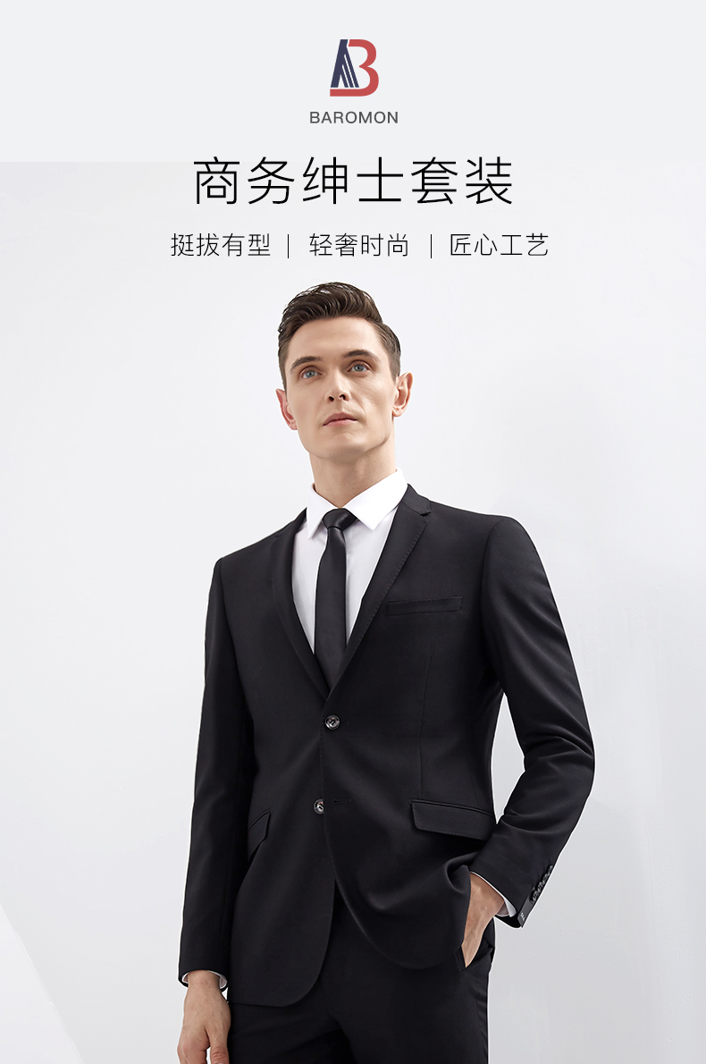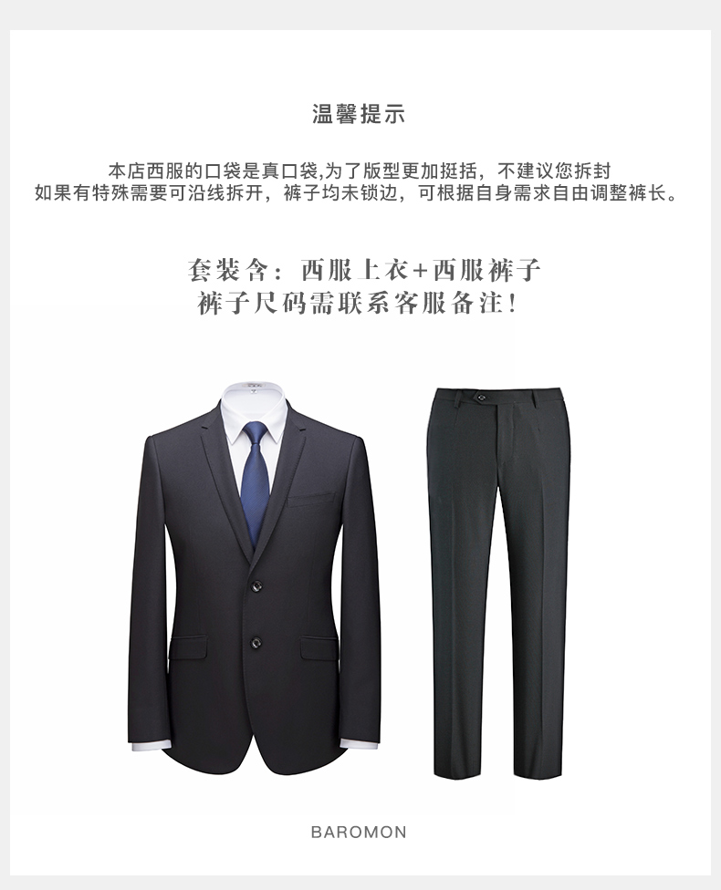 BAROMON Anti-wrinkle and Iron-Free Suit Men's Light Business Formal Suit Complete Men's Slim Fit Black 180C Please note the size of the trousers