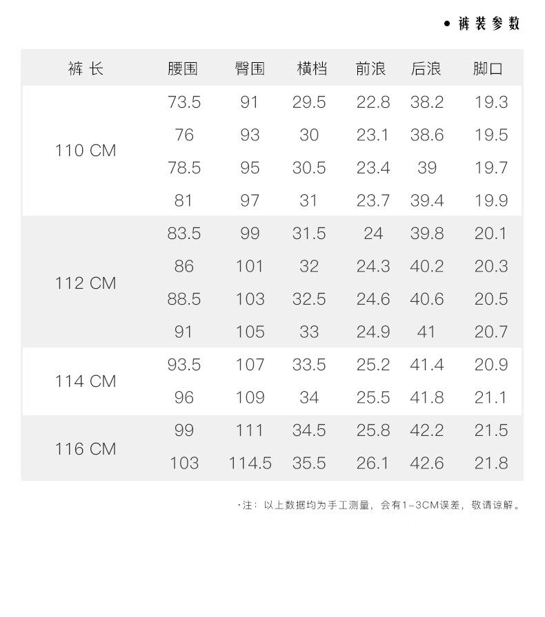 Outseam (cm) 99 cm 101.5 cm 104 cm 106.5 cm 109 cm