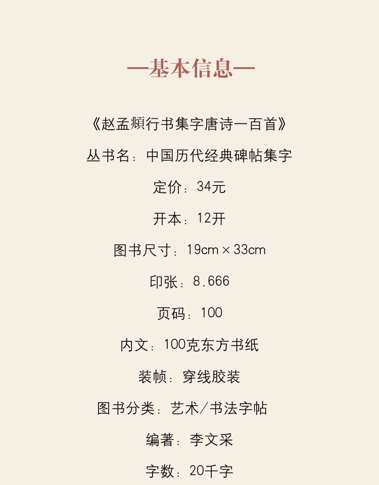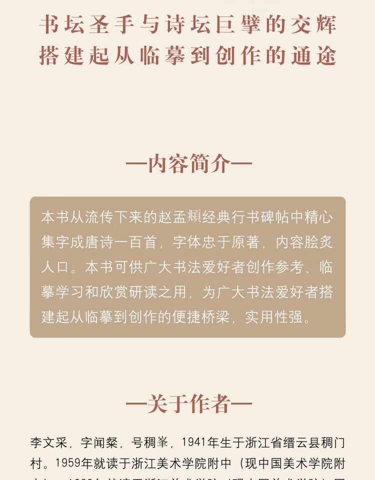 One hundred Tang poems with calligraphy in Zhao Mengfu's running script. Copying tutorial for Zhao Mengfu's classic stele calligraphy collection in running script and ancient poems and calligraphy. An introductory copying textbook for beginners of Zhao style calligraphy calligraphy. Zhejiang People's Fine Arts Publishing House