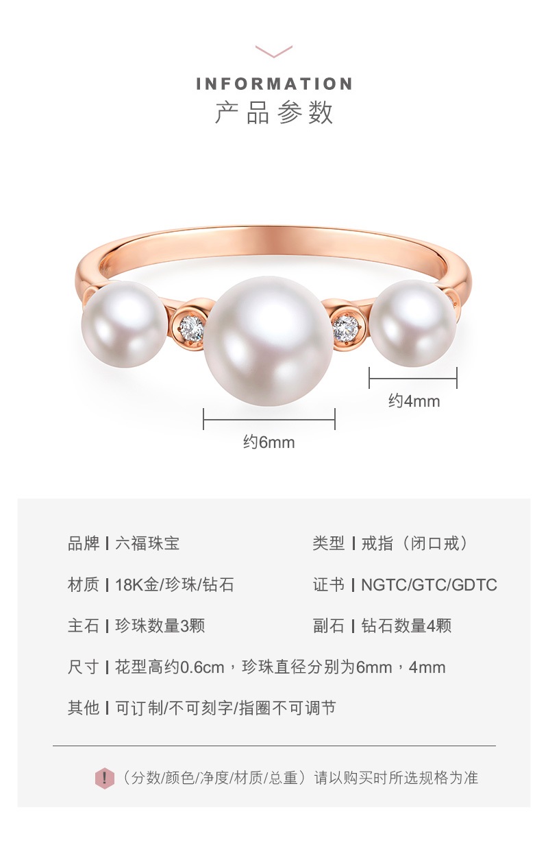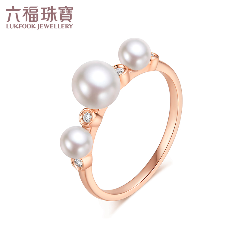Lukfook Jewelry 18K gold twin diamond and seawater pearl ring women's closed ring G04TBKR05R No. 12 - total weight 2.32 grams