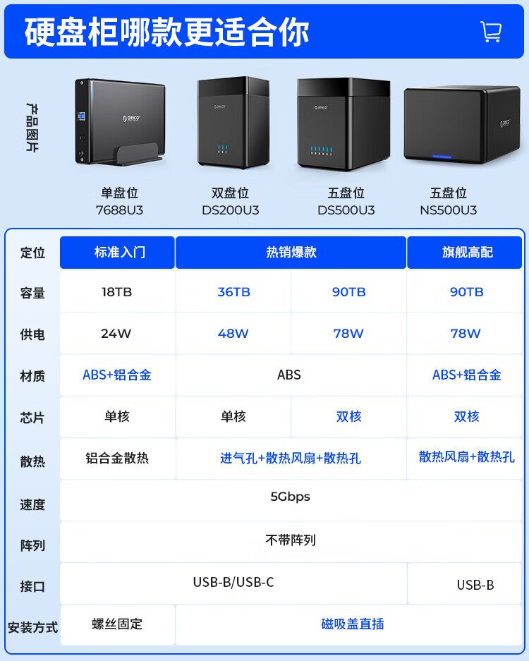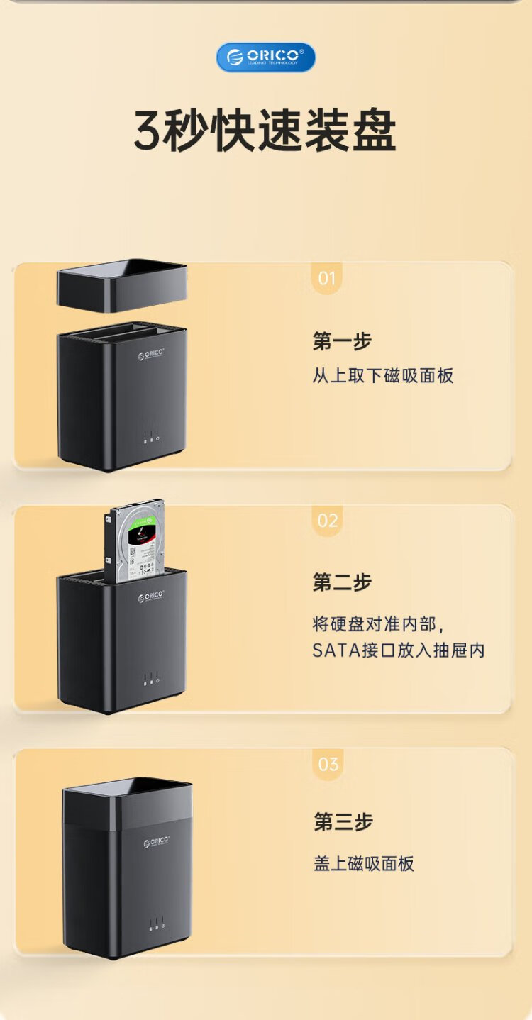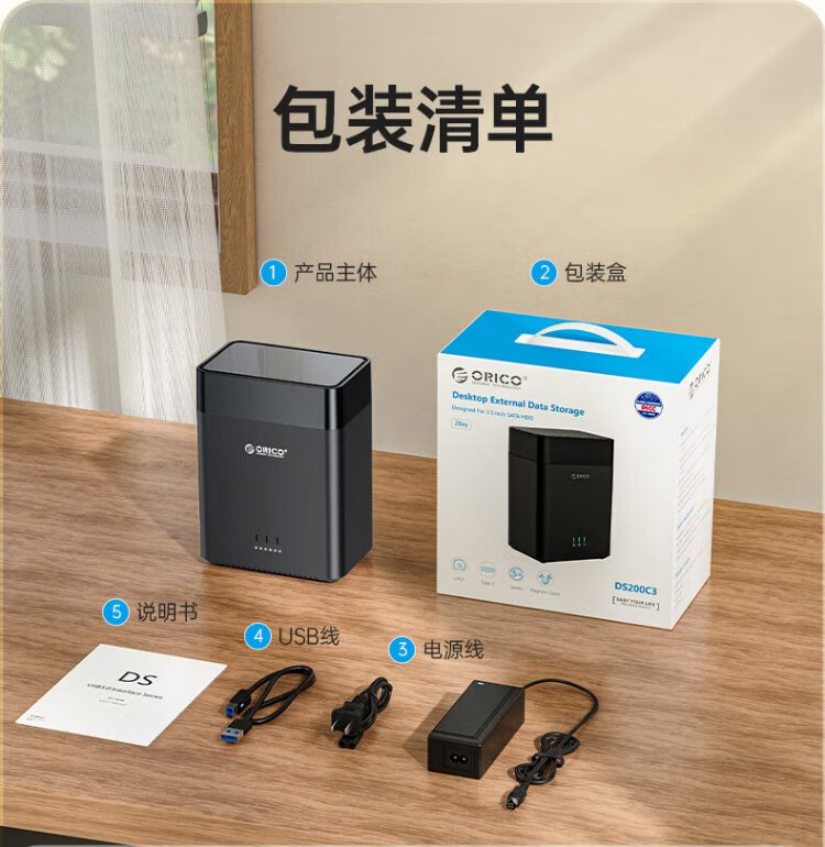 ORICO Festplattenbox Festplattenschrank 3,5 Zoll Multi-Bay USB3.0 SATA mechanische Festplatte externer externer mobiler Speicher Festplattenschrank Festplattenkäfig Doppelschacht DS200U3