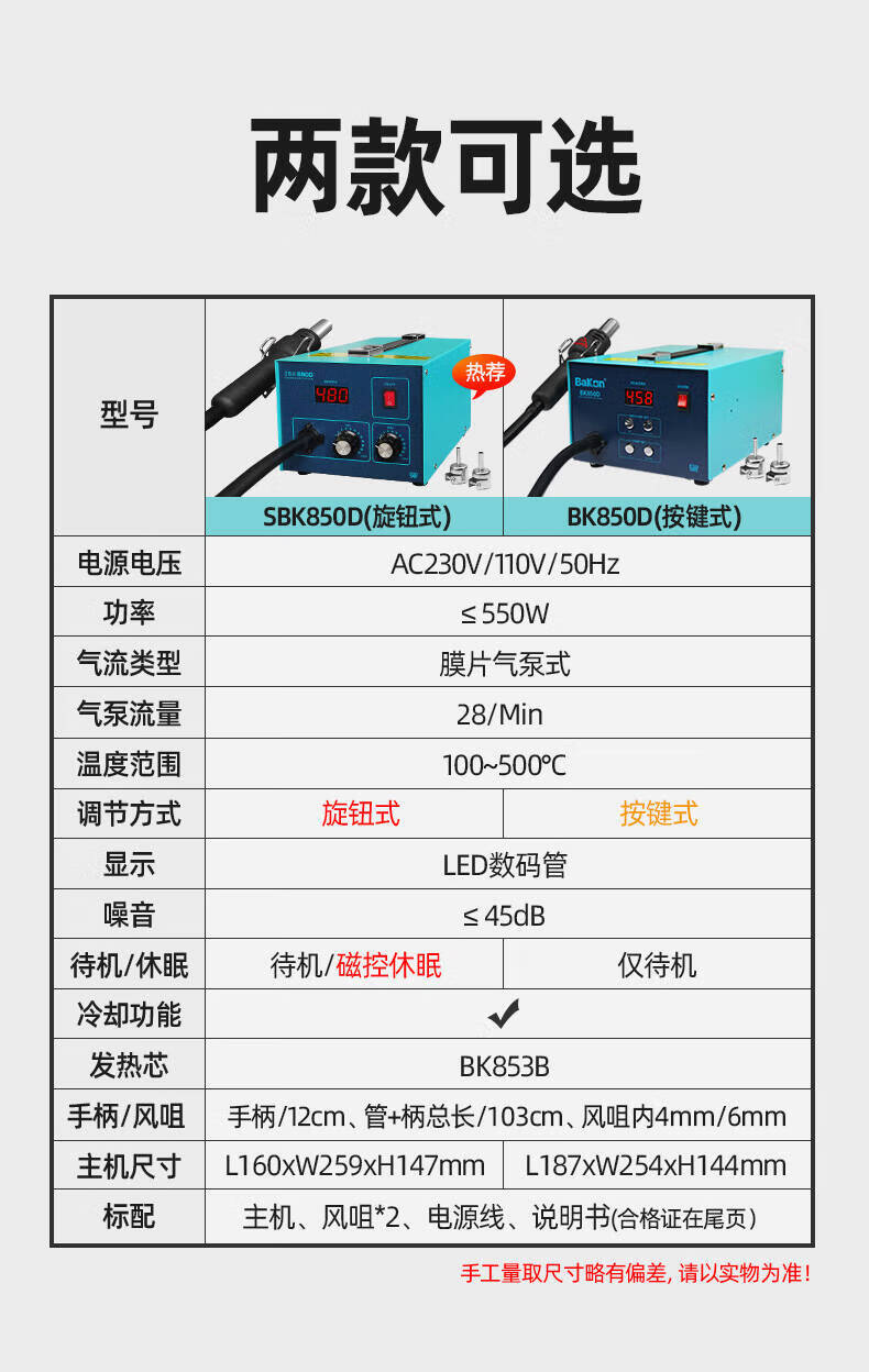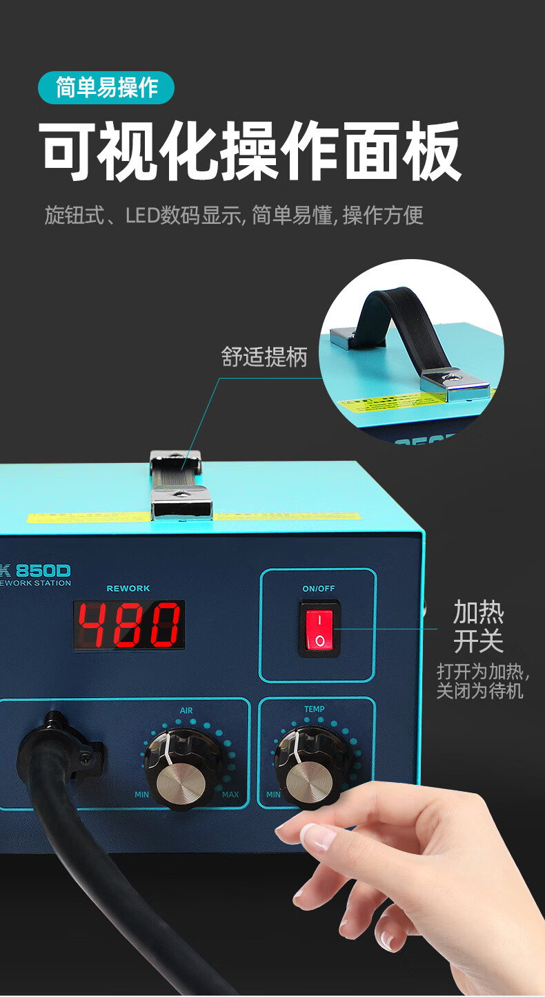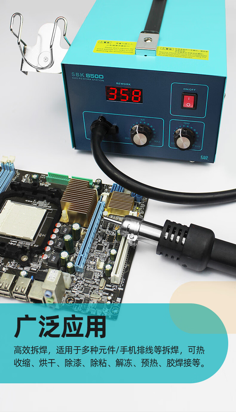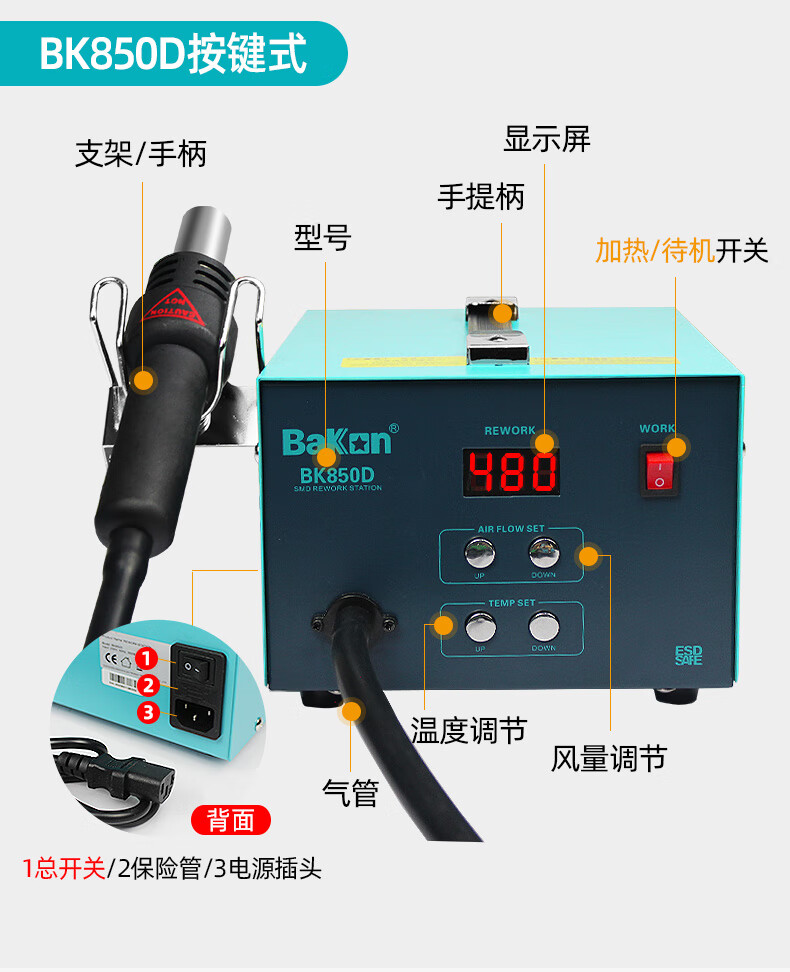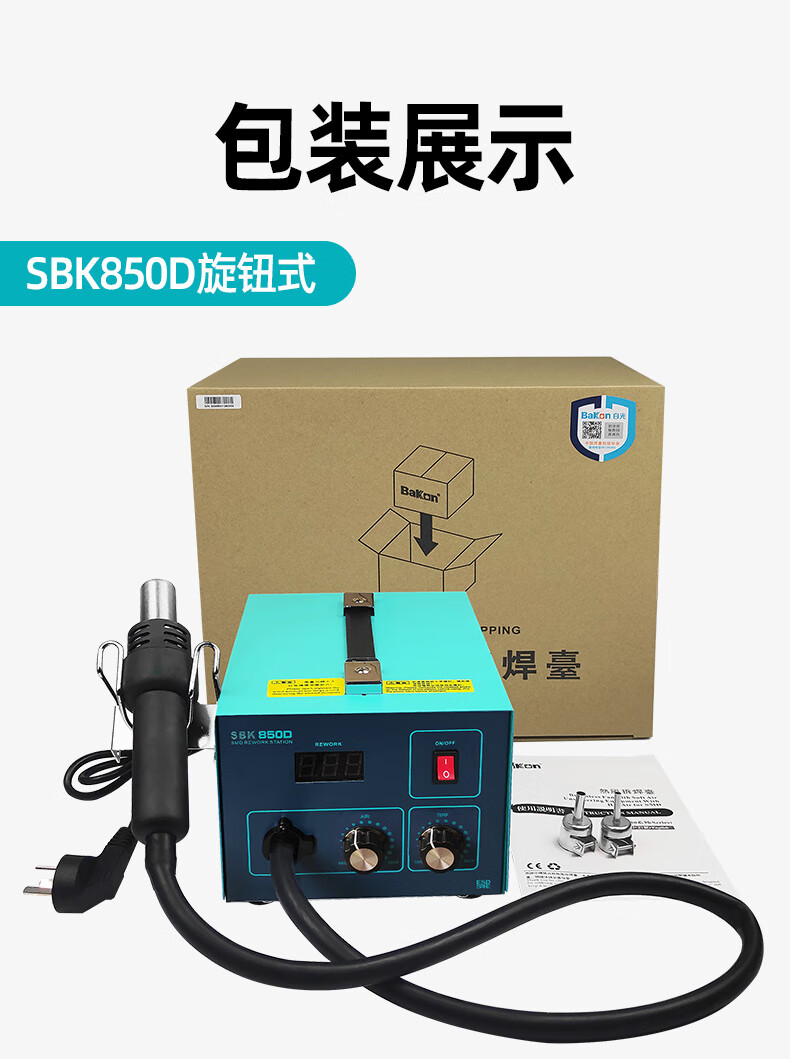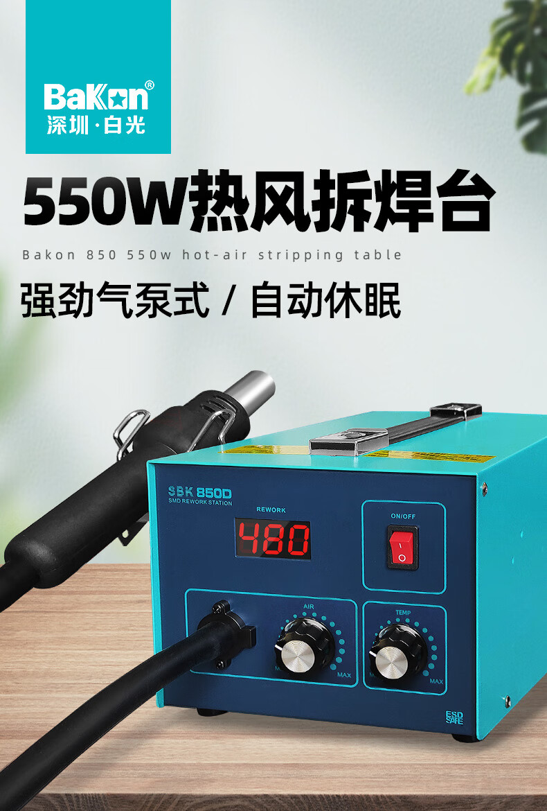 BakonBAKON white light digital display hot air gun welding station constant temperature adjustable industrial oven mobile phone repair air gun desoldering station SBK850D丨550W丨automatic sleep