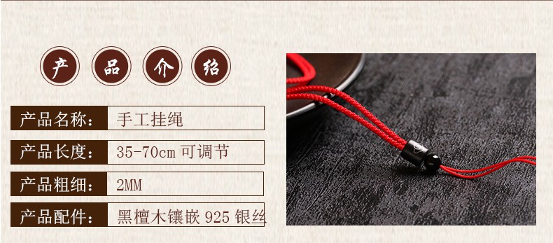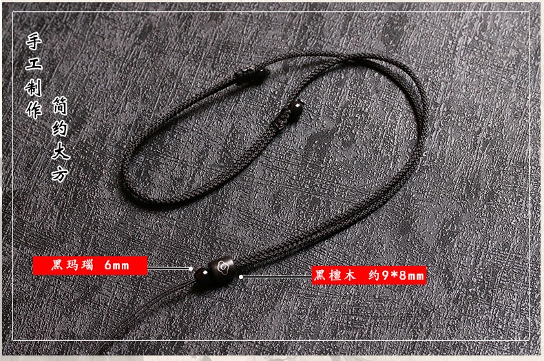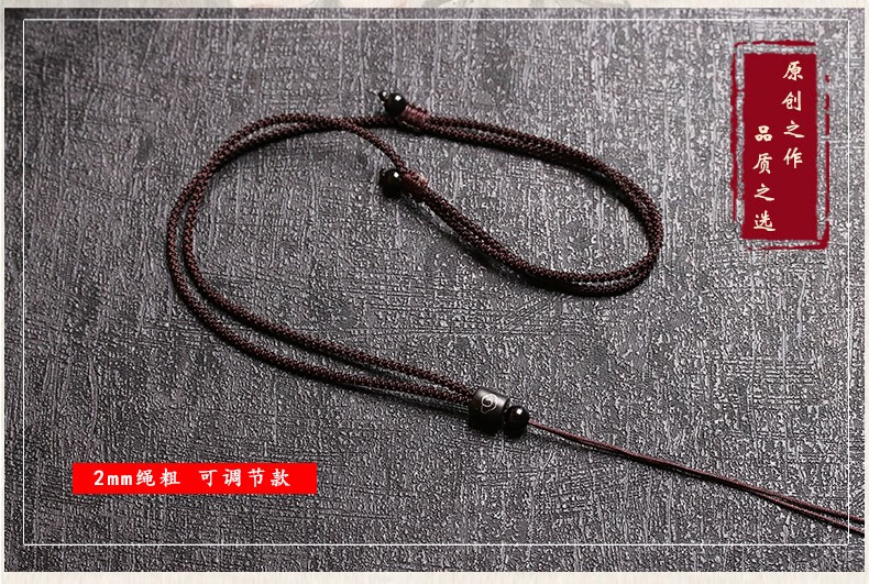 Tongyou Pavilion ebony hand-woven pendant lanyard ebony necklace rope jade pendant braided rope jade pendant rope men and women pendant rope wood inlaid silver wire black rope adjustable