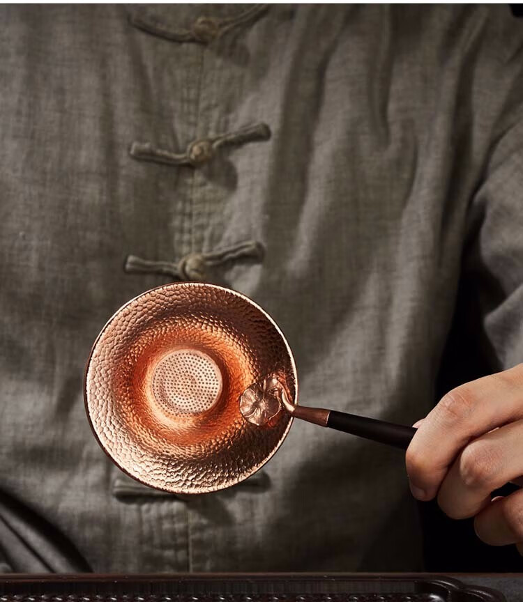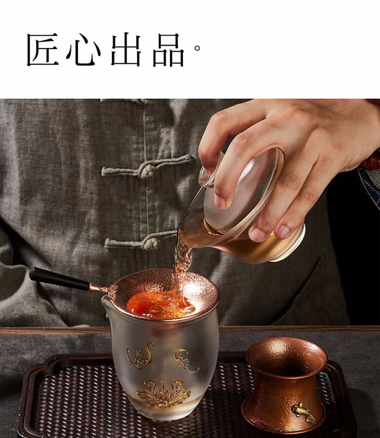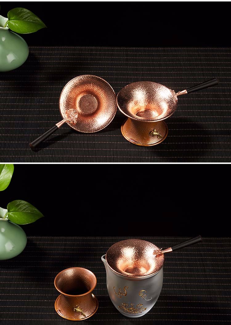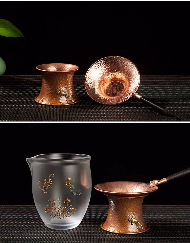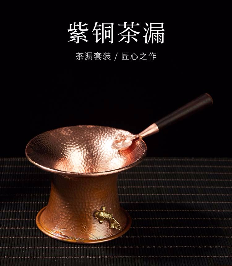 Rongshantang copper tea drain tea filter tea strainer tea strainer tea separator funnel bracket set tea set accessories copper colored fish play tea bracket