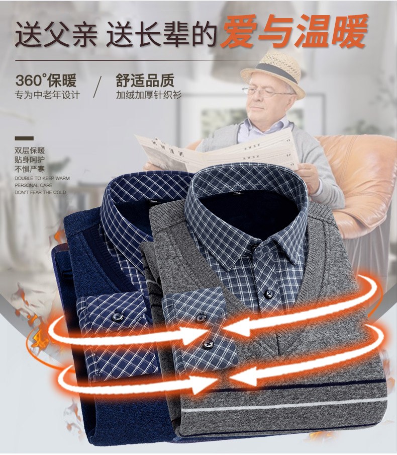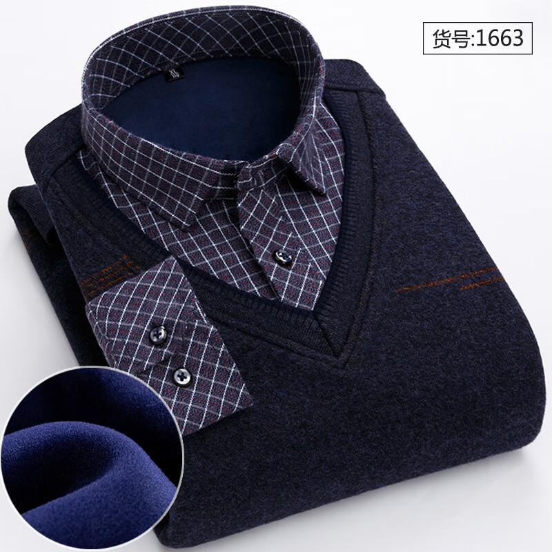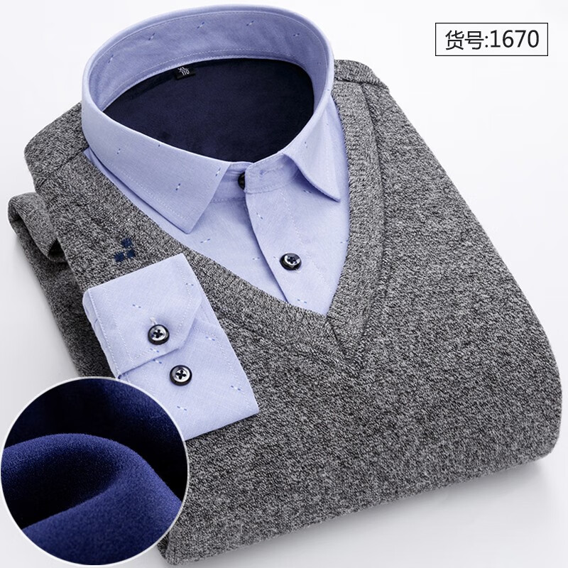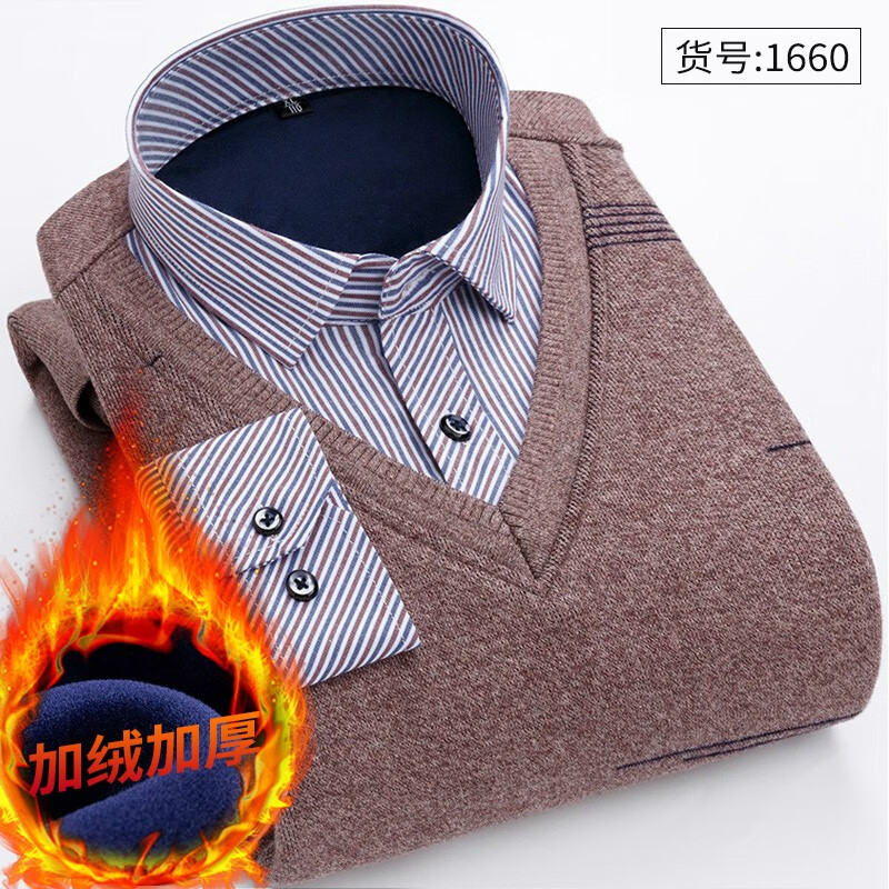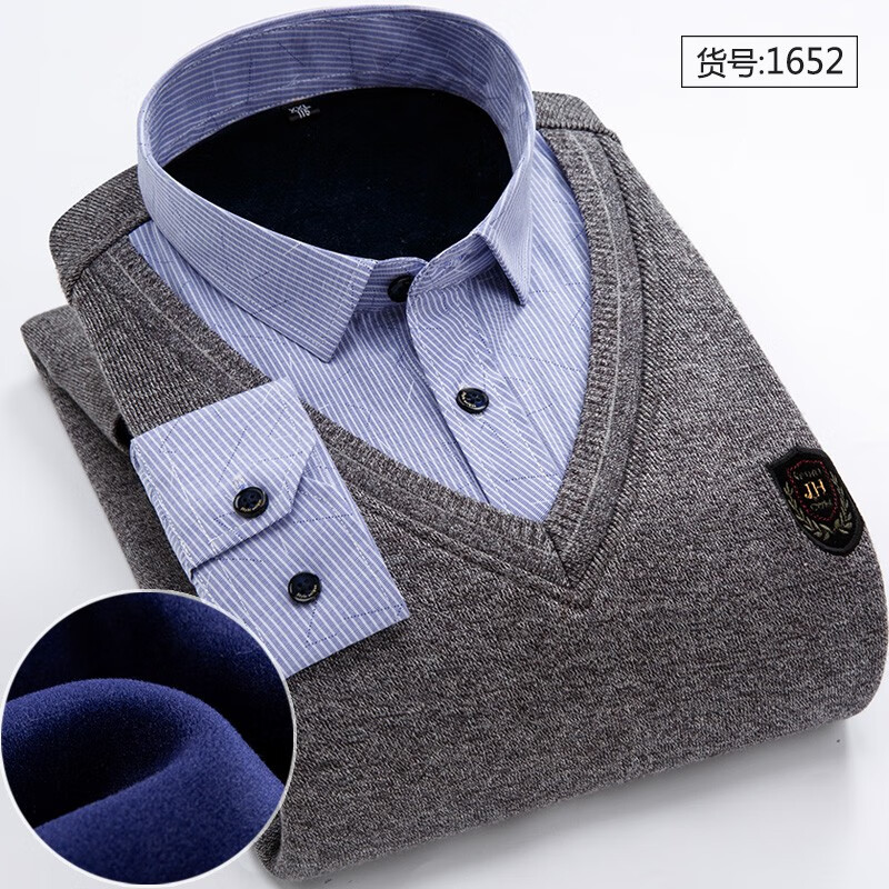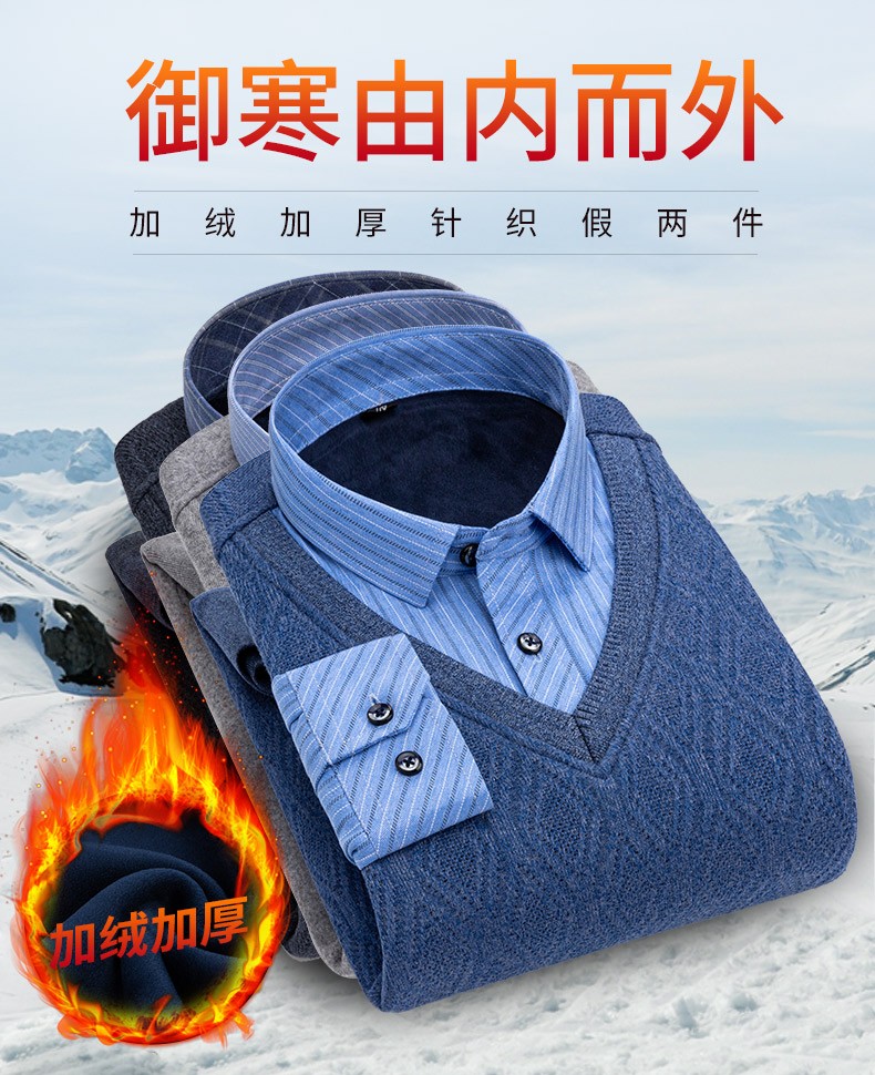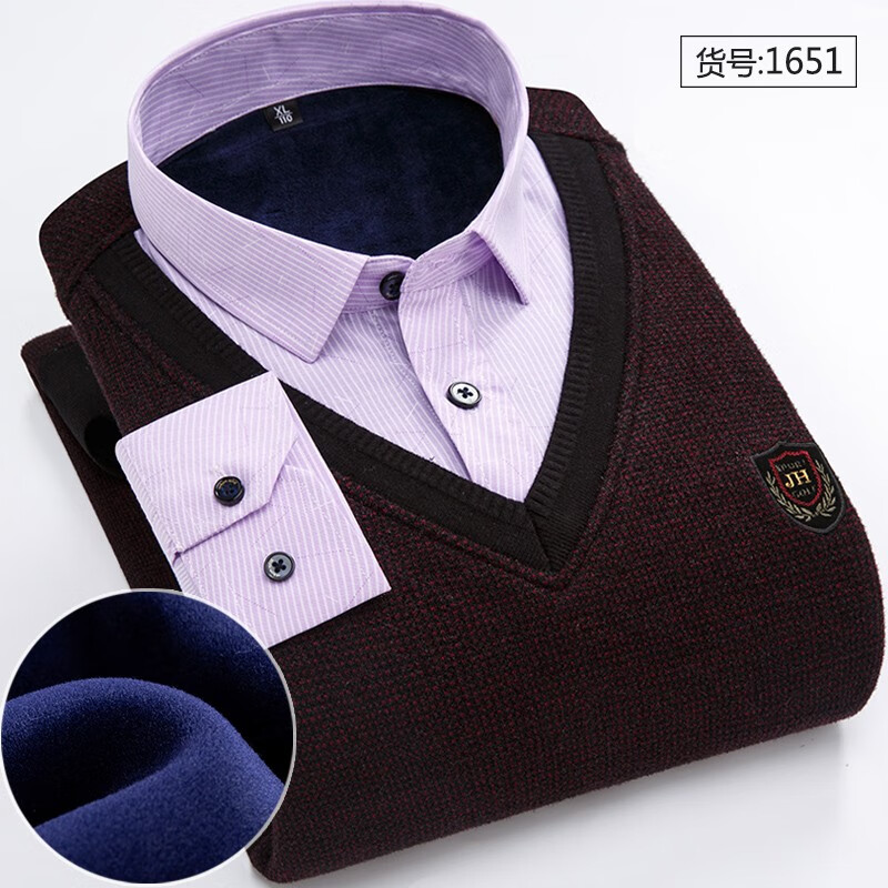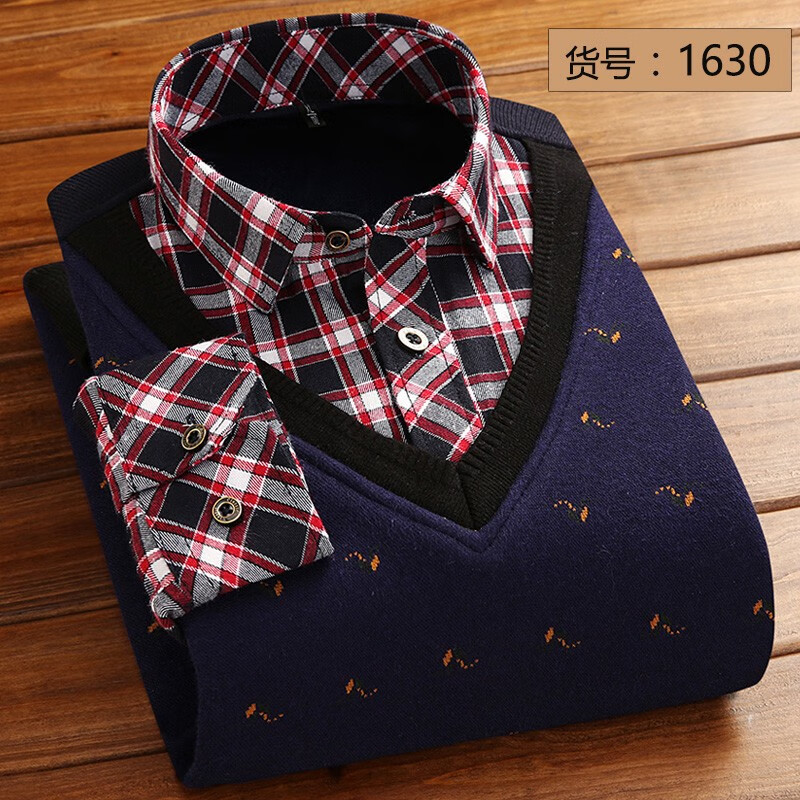 Promon thermal shirt men's winter long-sleeved velvet thickened fake two-piece shirt collar sweater sweater pullover for young and middle-aged people 1648 XL
