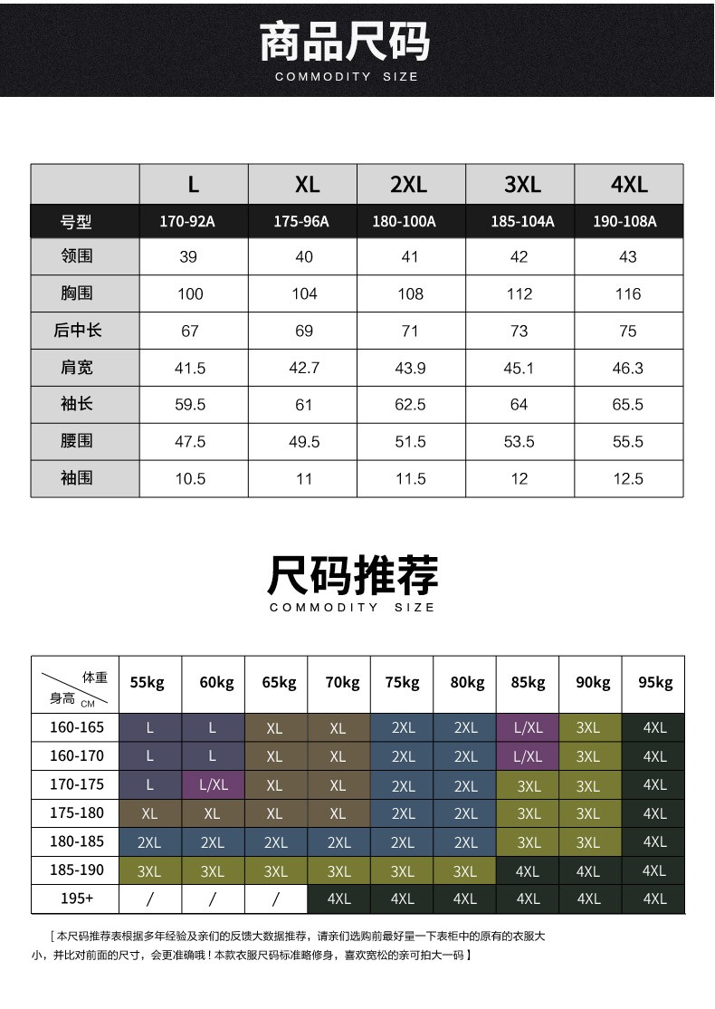 China (cm) 160-165/84-86 165-170 / 88-90 167-172 / 92-96 168-173 / 98-102 170-176 / 106-110