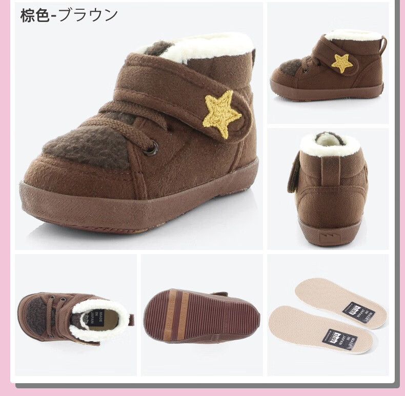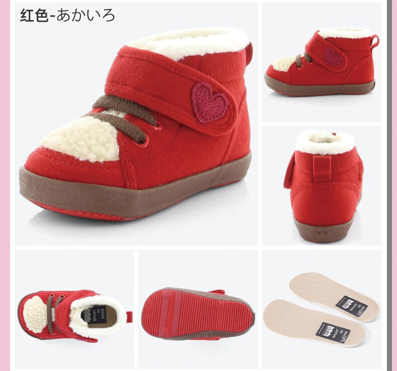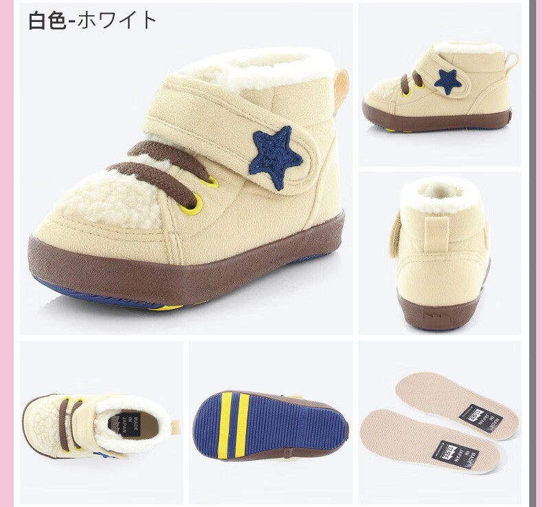 Yuexing children's shoes imported from Japan, children's cotton shoes, boys' winter cold-proof plus velvet toddler shoes, girls' baby shoes, white 21 (inner length 13cm, suitable for feet 12.5cm long)