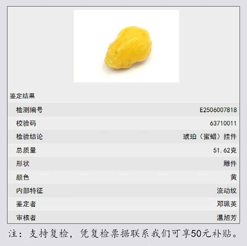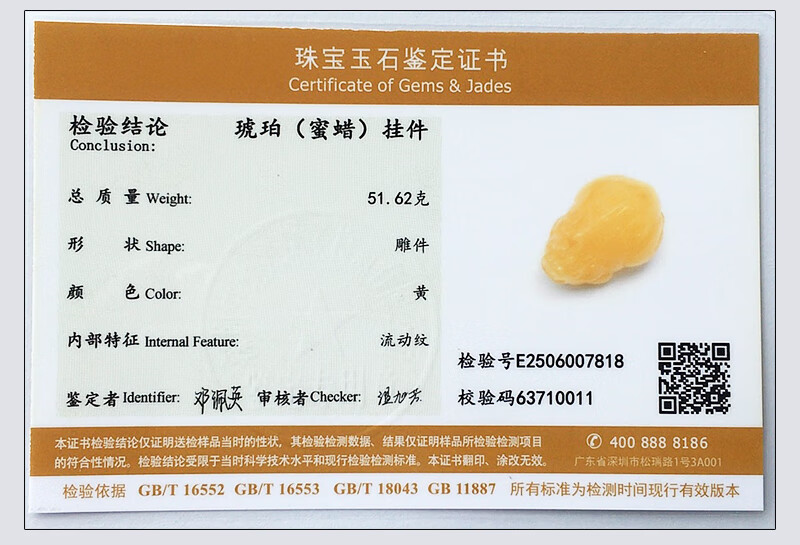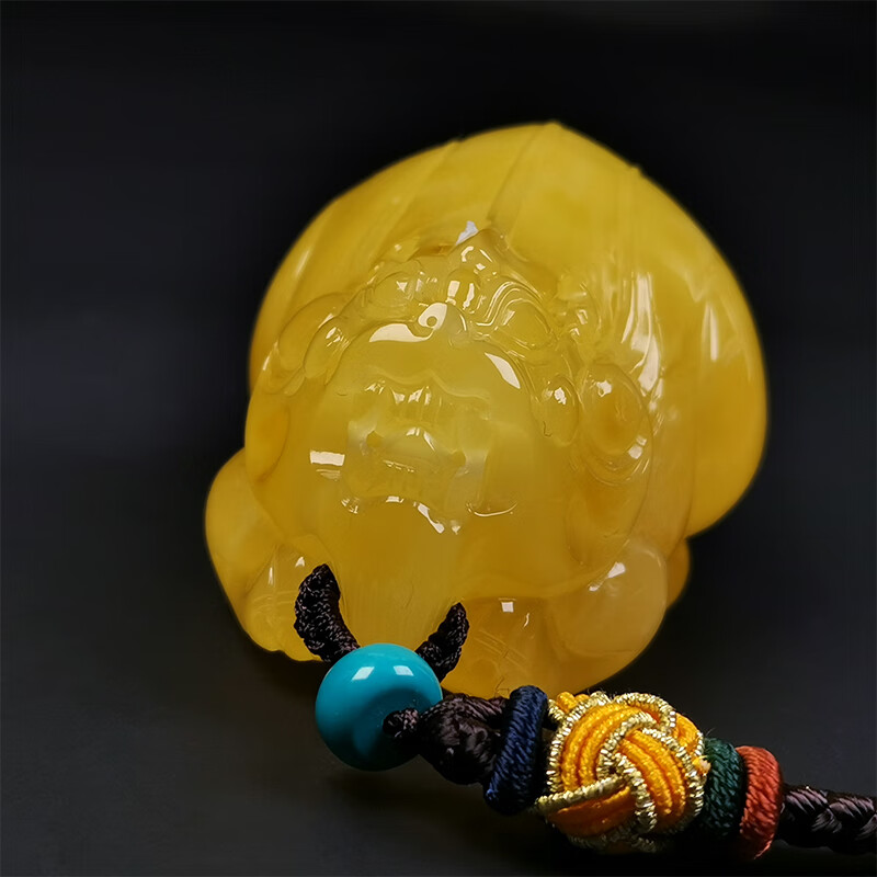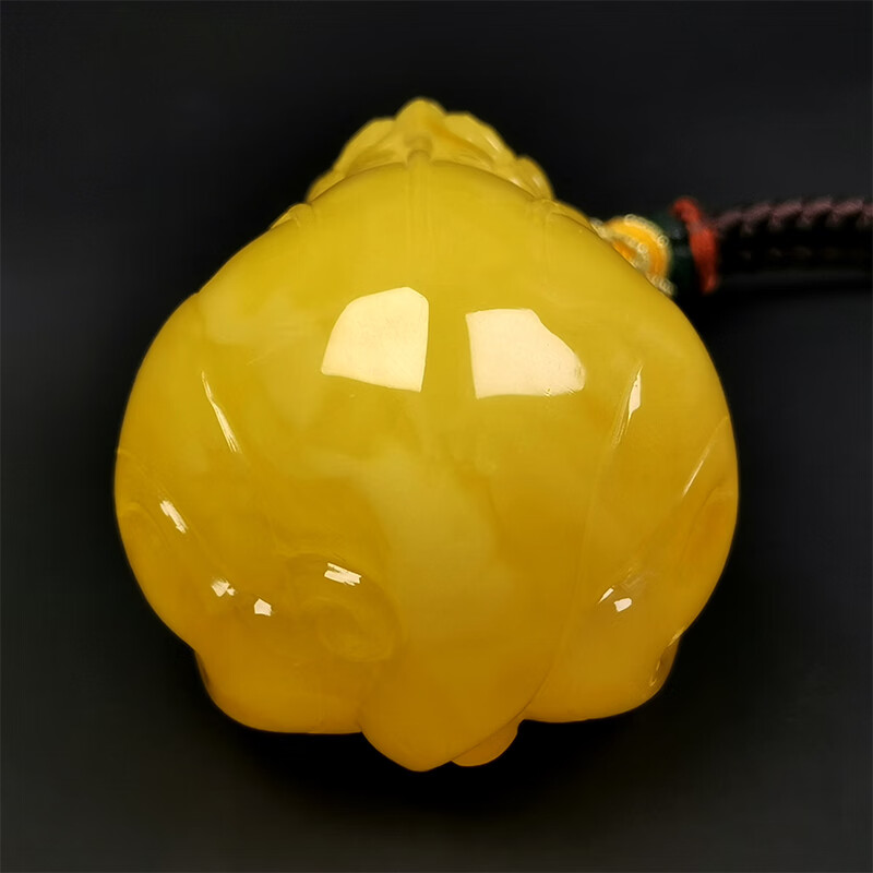 Amber School, one thing, one picture, one certificate, natural beeswax pendant, Pixiu handle, men's chicken fat yellow amber, flawless pendant, 51.62g, 58*42*38mm
