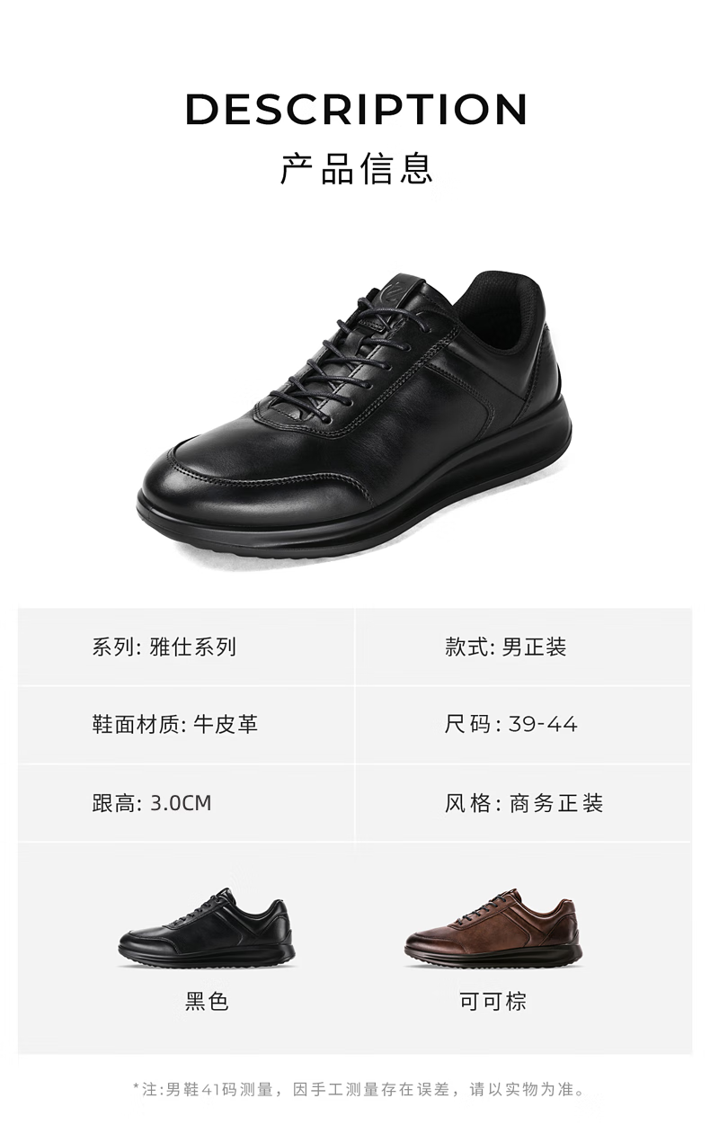 ECCO business leather shoes men's casual leather shoes men's leather shoes formal shoes wedding shoes Yashi 207124 black 20712401001 41
