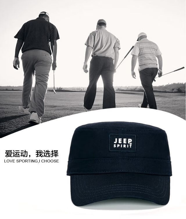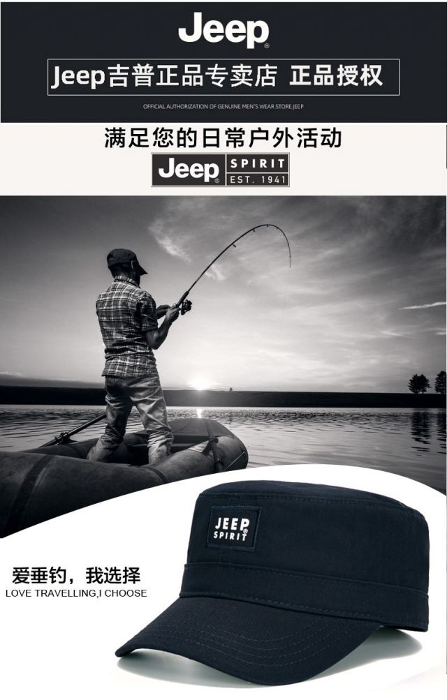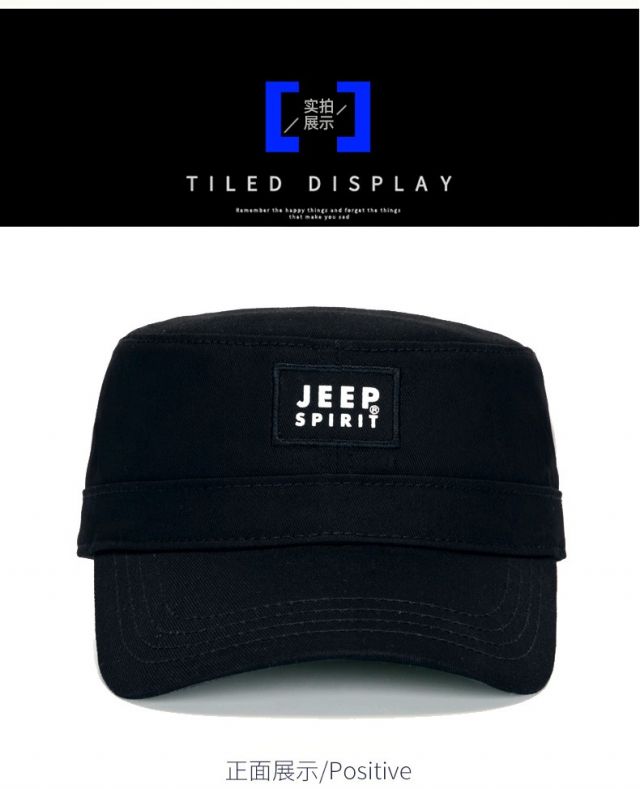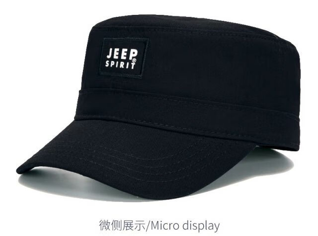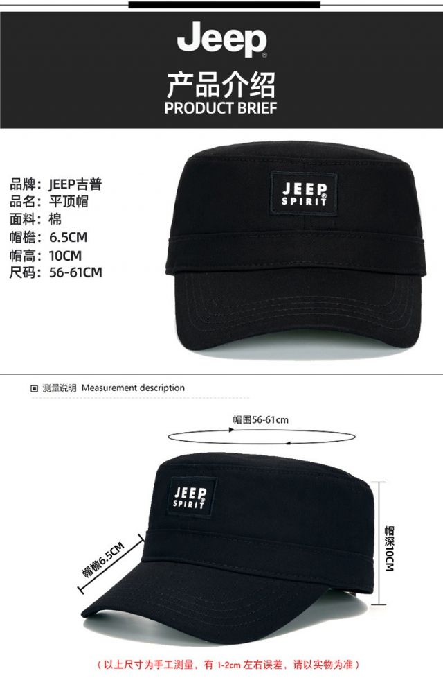 Jeep Hat Men's Fully Sealed Flat Cap Outdoor Leisure Hat Winter Solid Color Embroidered Peaked Cap Black L (56-58CM)