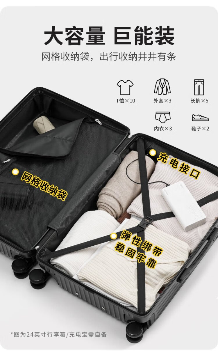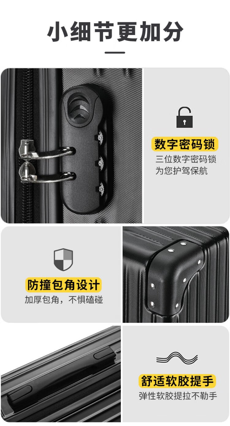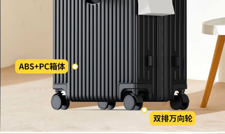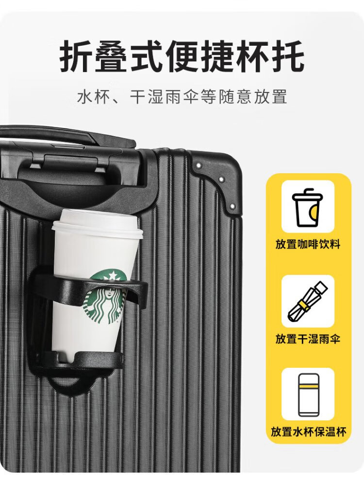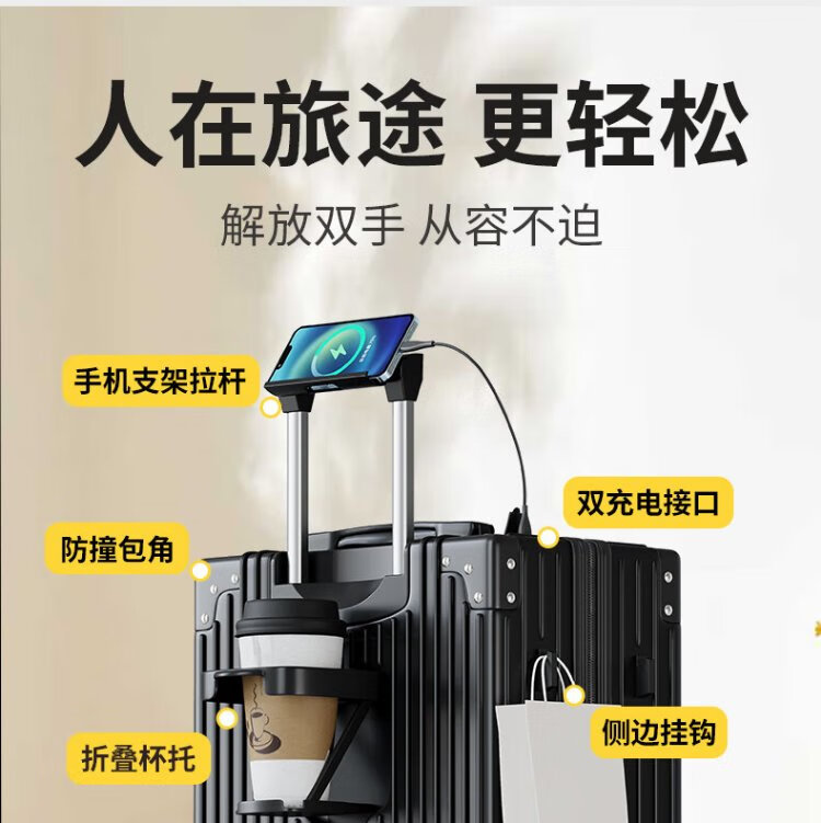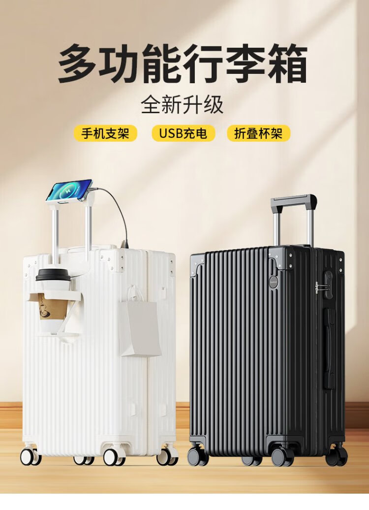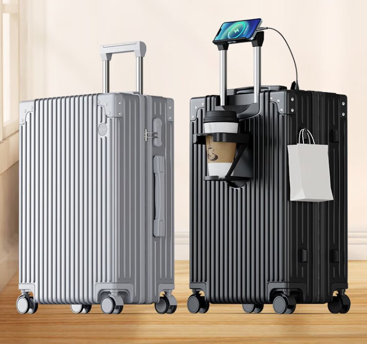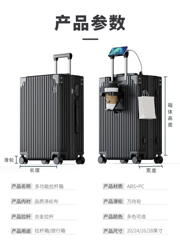 Fandia 28-inch suitcase multi-functional luggage trolley case student large-capacity travel password case leather suitcase cup holder black