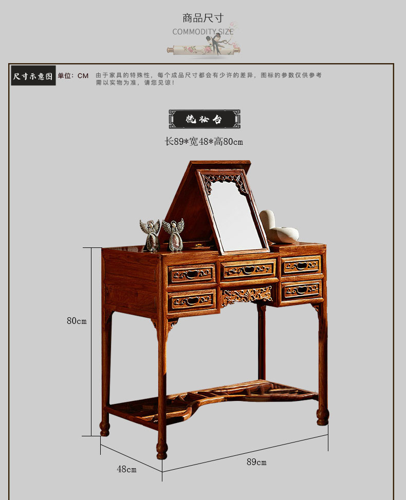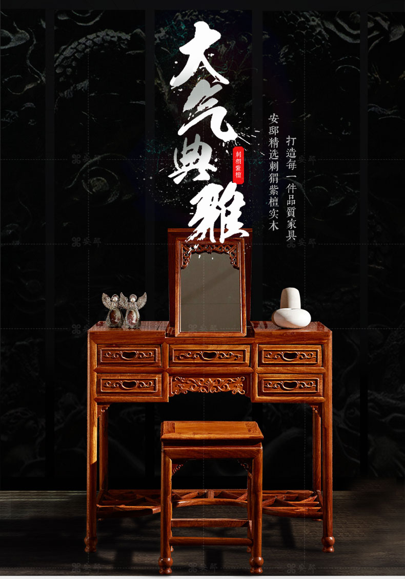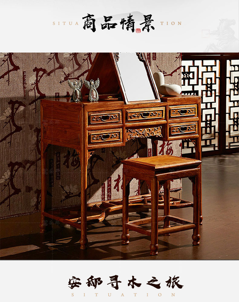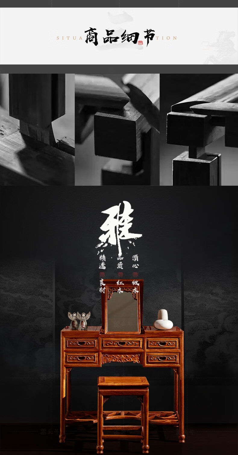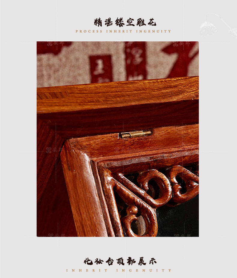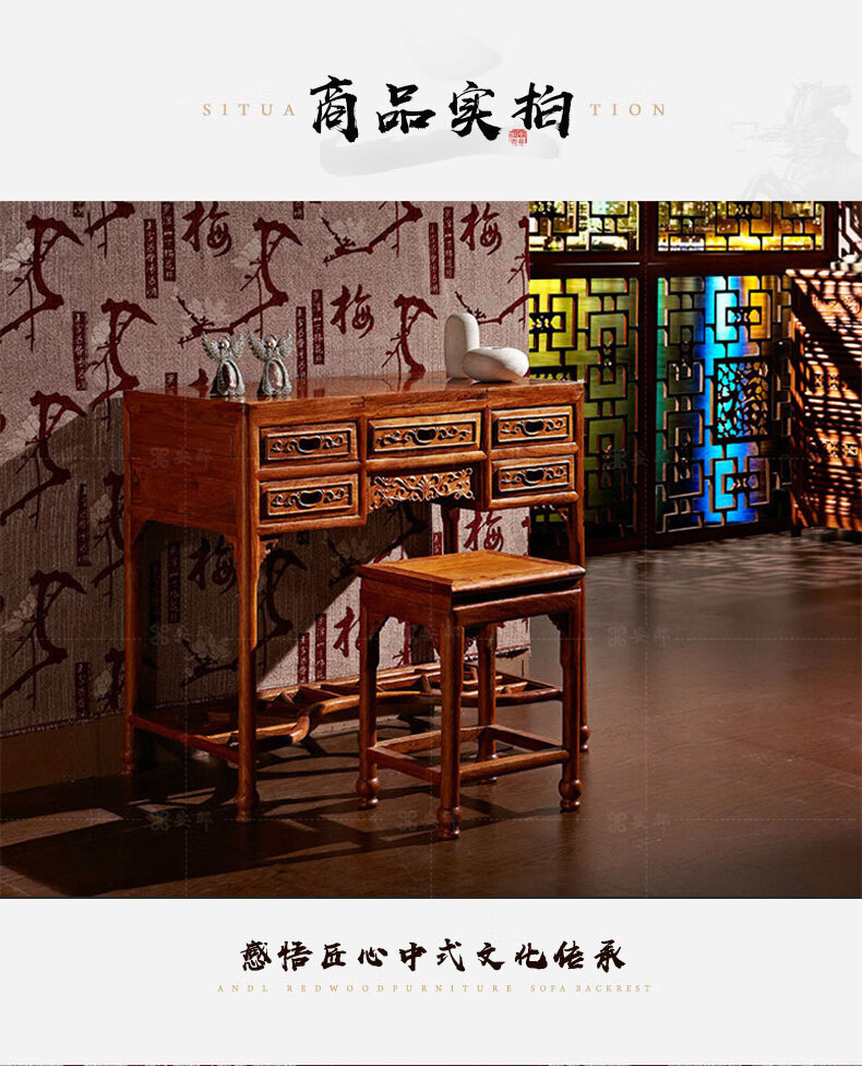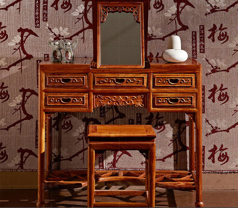 Andi mahogany furniture African rosewood (scientific name: Hedgehog rosewood) dressing table, new Chinese style classical bedroom solid wood furniture dressing table dressing table, flip top dressing table, dressing table + makeup stool (with tissue box)