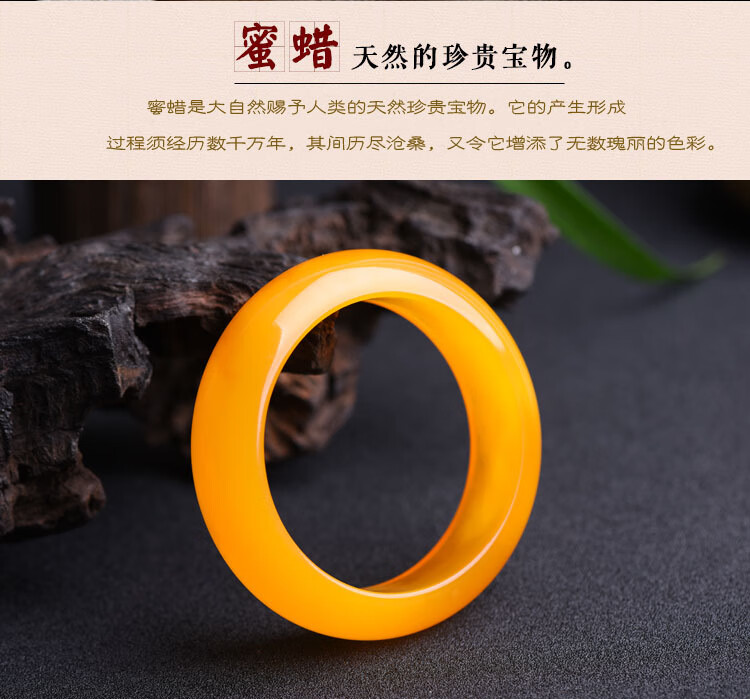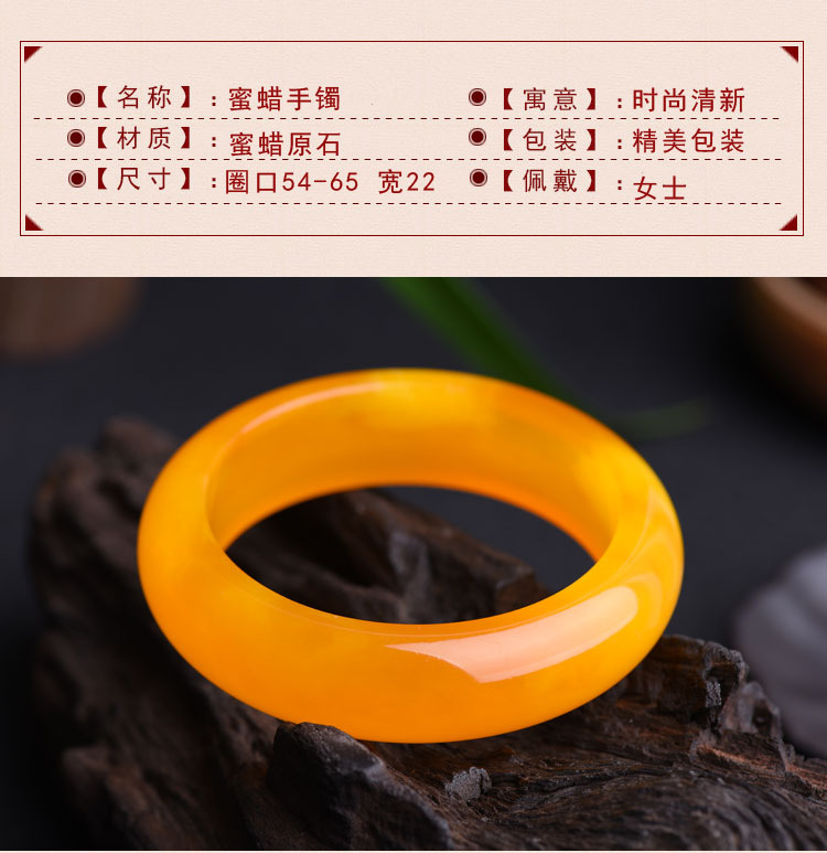 Flying Goose Chicken Fat Yellow Beeswax Bracelet, Amber Raw Stone Bracelet, Beeswax Women's Jewelry, Picture Color, Ring 60-61