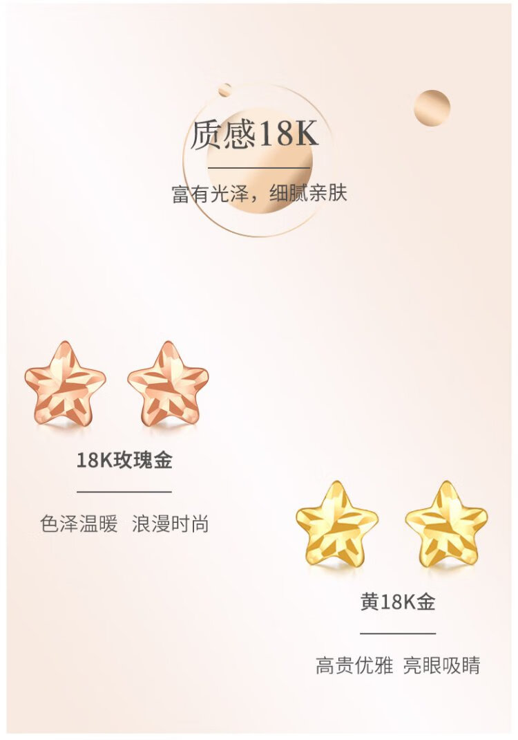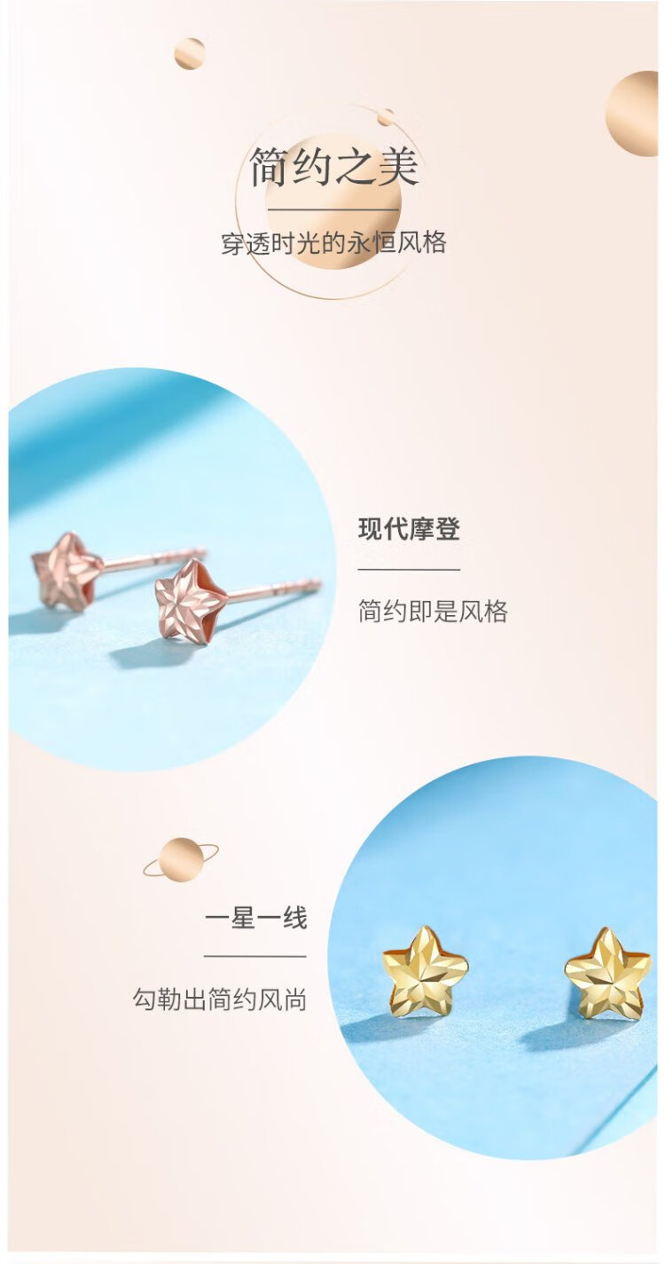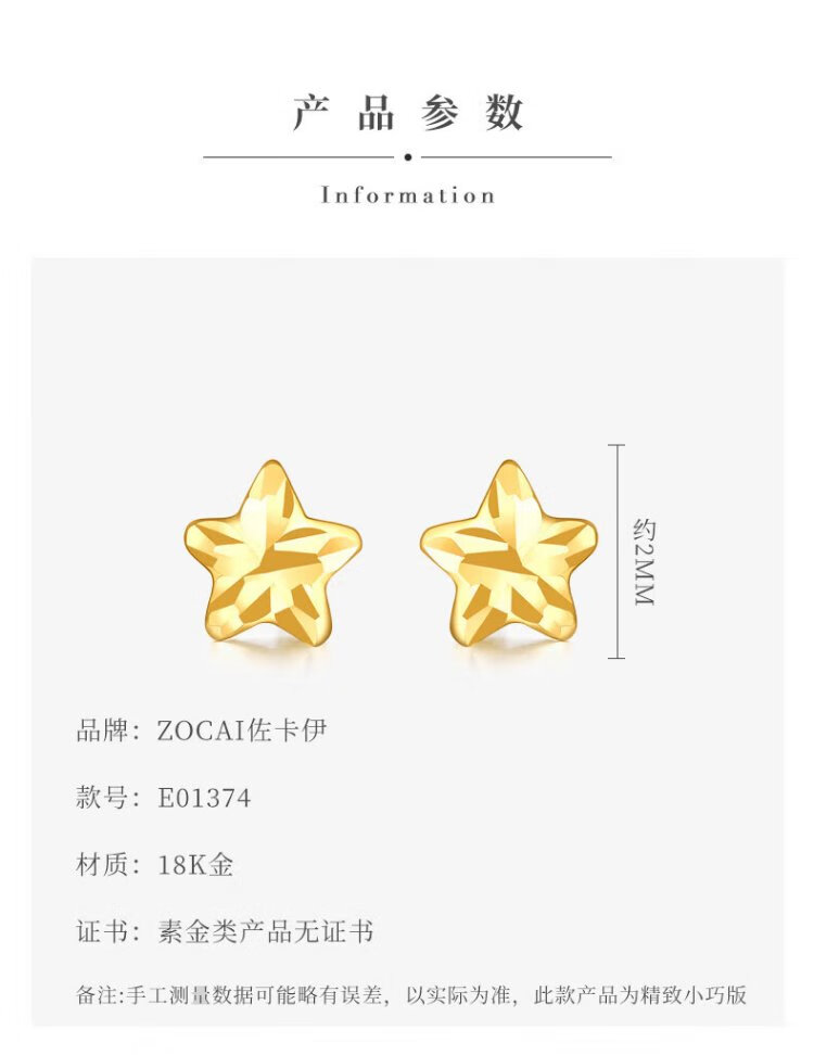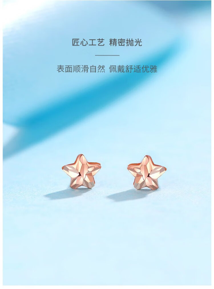 Zokai rose 18K gold stud earrings star simple romantic versatile birthday gift E01374