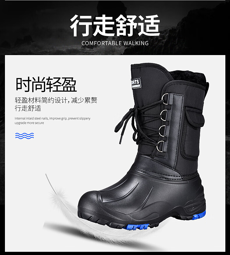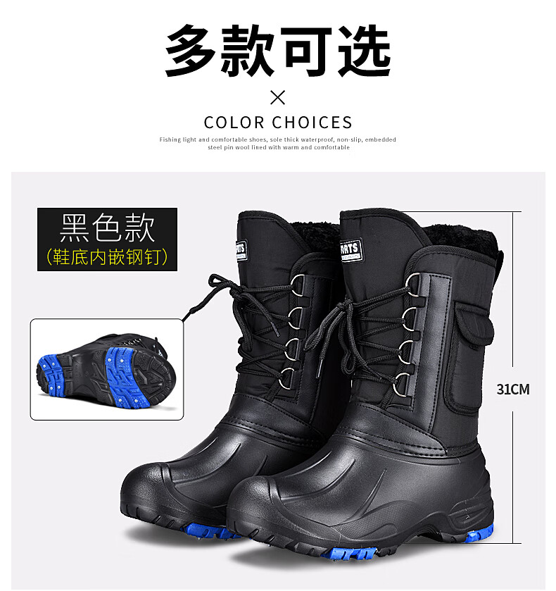 Chaoyu Luya fishing warm shoes men's outdoor waterproof anti-slip soles winter snow boots fishing shoes snow boots spike soles TD-1 with pockets (with spikes) 43
