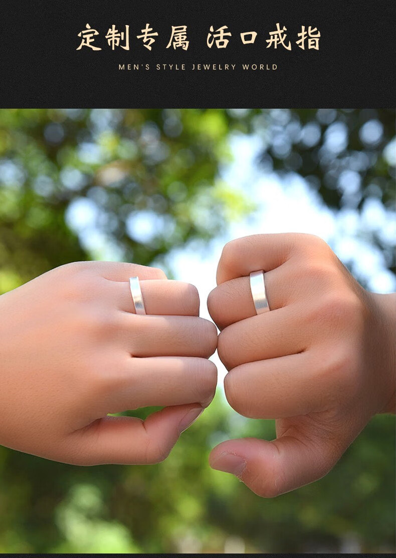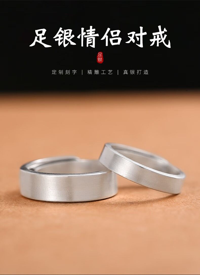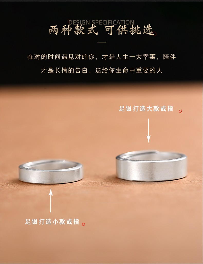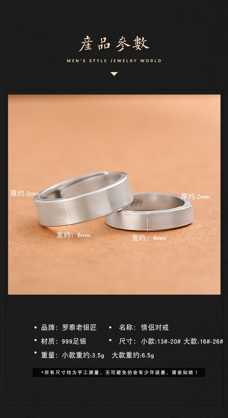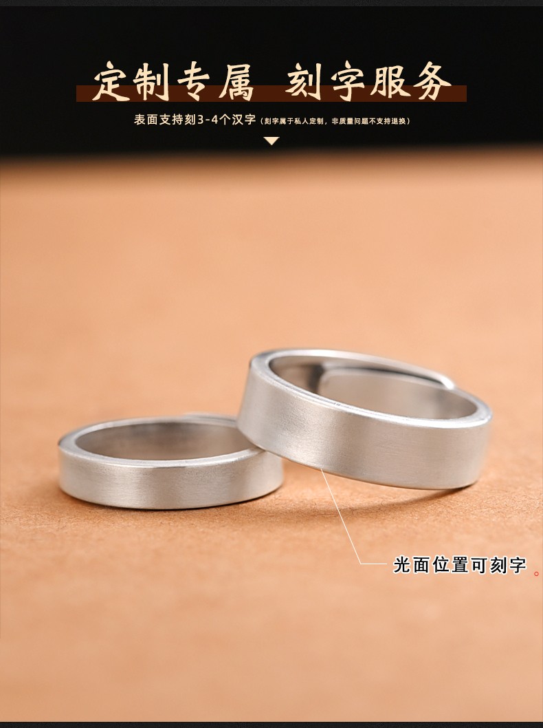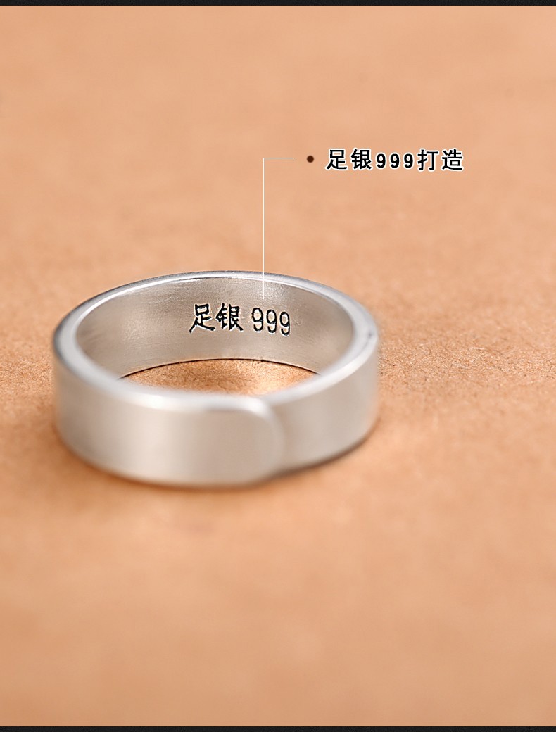 Luotai Old Silversmith 999 Pure Silver Couple Ring Silver Pair of Live Buckle Silver Rings Pair of Rings Adjustable Customized Engraving Simple Large Style