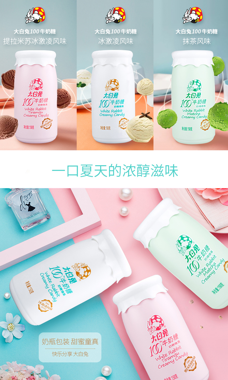 White Rabbit White Rabbit milk candy milk bottle Shanghai Guanshengyuan Matcha ice cream tiramisu flavor optional candies 2 cans of tiramisu flavor