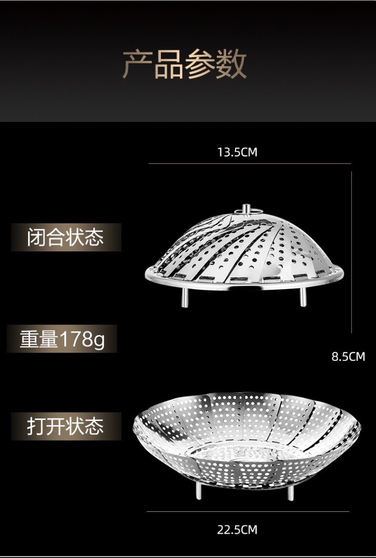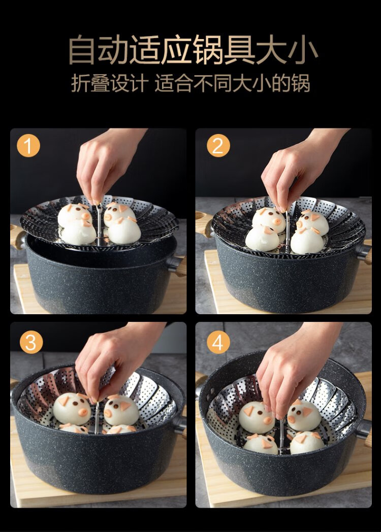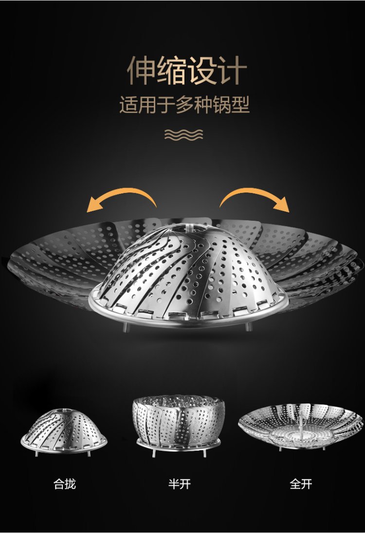 OAK stainless steel steamer multifunctional water-proof steaming rack steaming grid steaming tray retractable folding steamer rack grate steaming rack C123