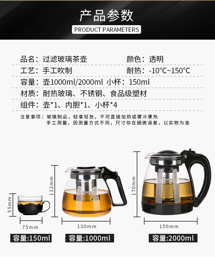Chuge high-quality 2000ML teapot set single pot flower tea cup elegant cup teapot glass heat-resistant 2000ML single pot
