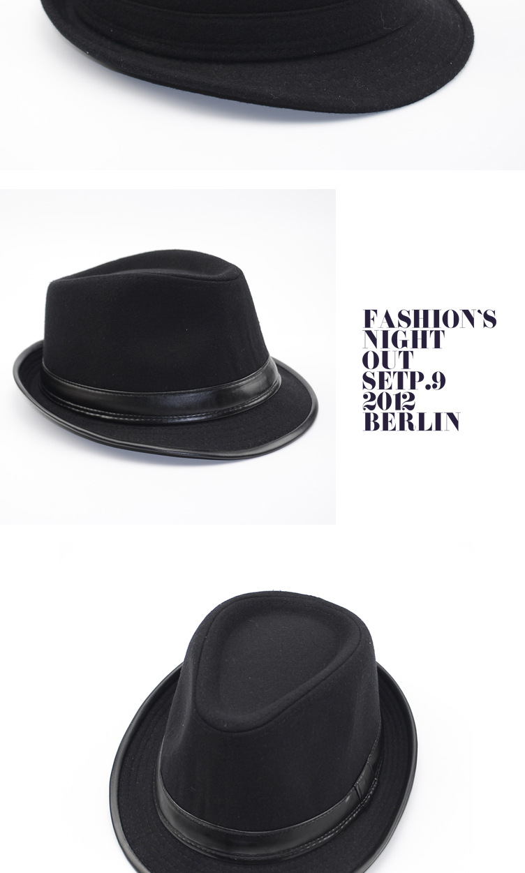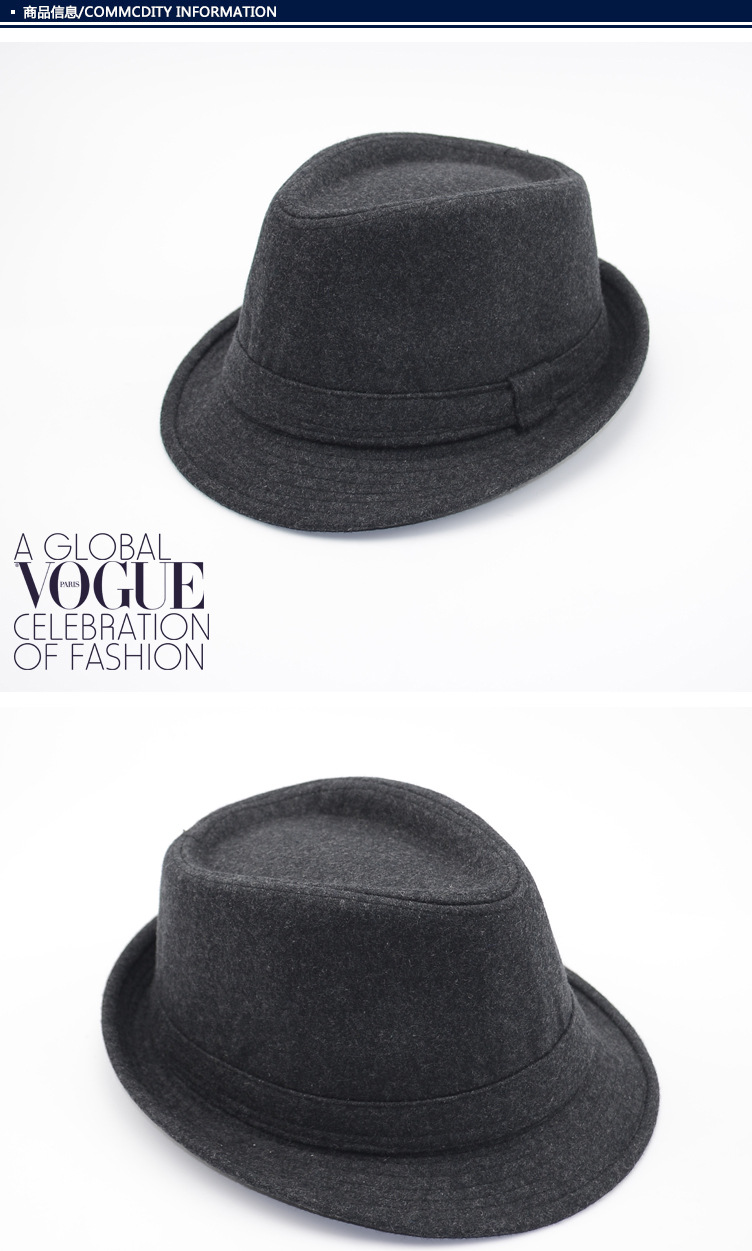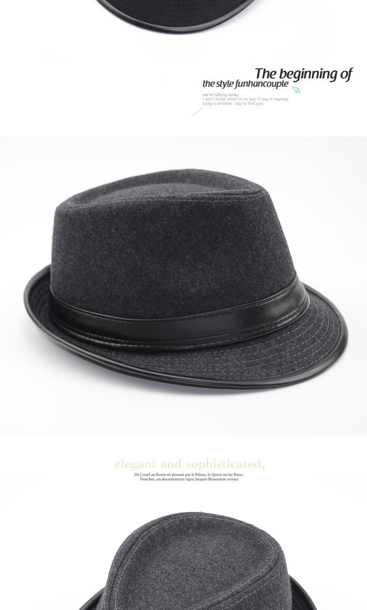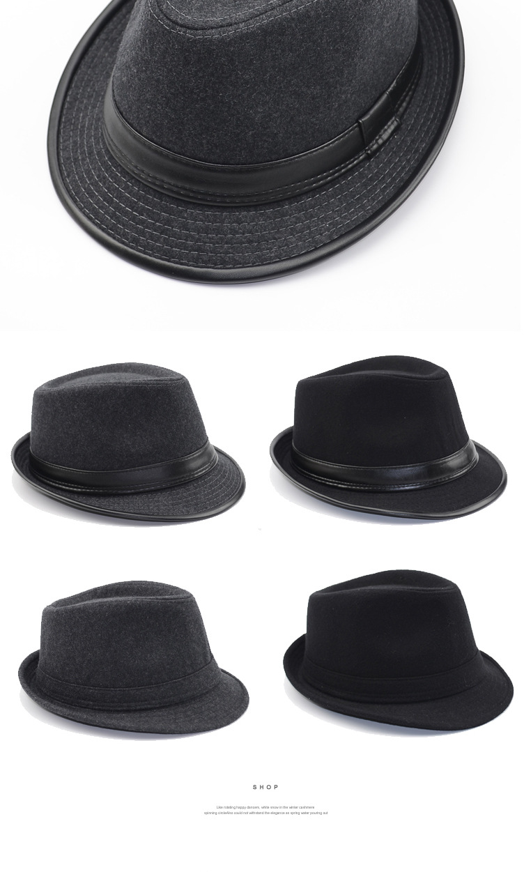 Gardenia hat men's spring and autumn hat men's hat winter woolen warm autumn and winter middle-aged and elderly jazz hat winter old man hat gray leather edge