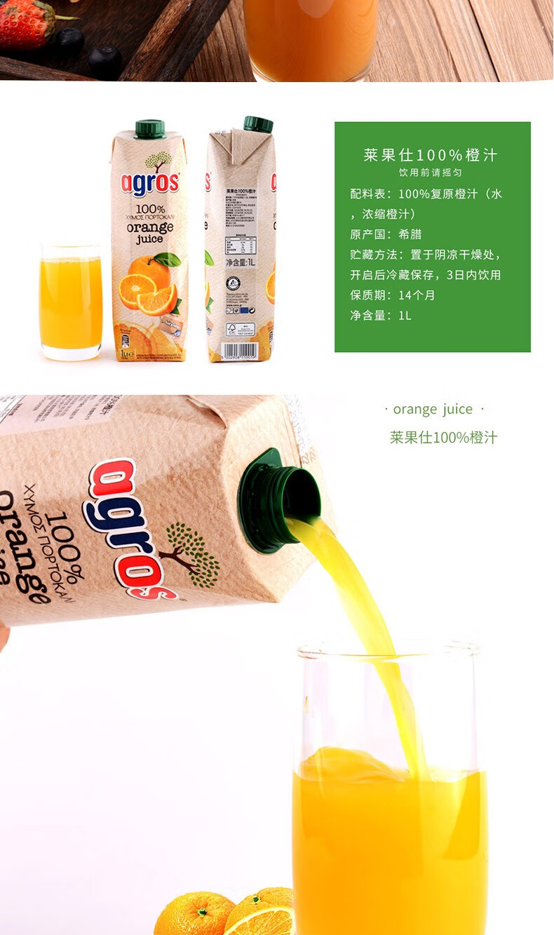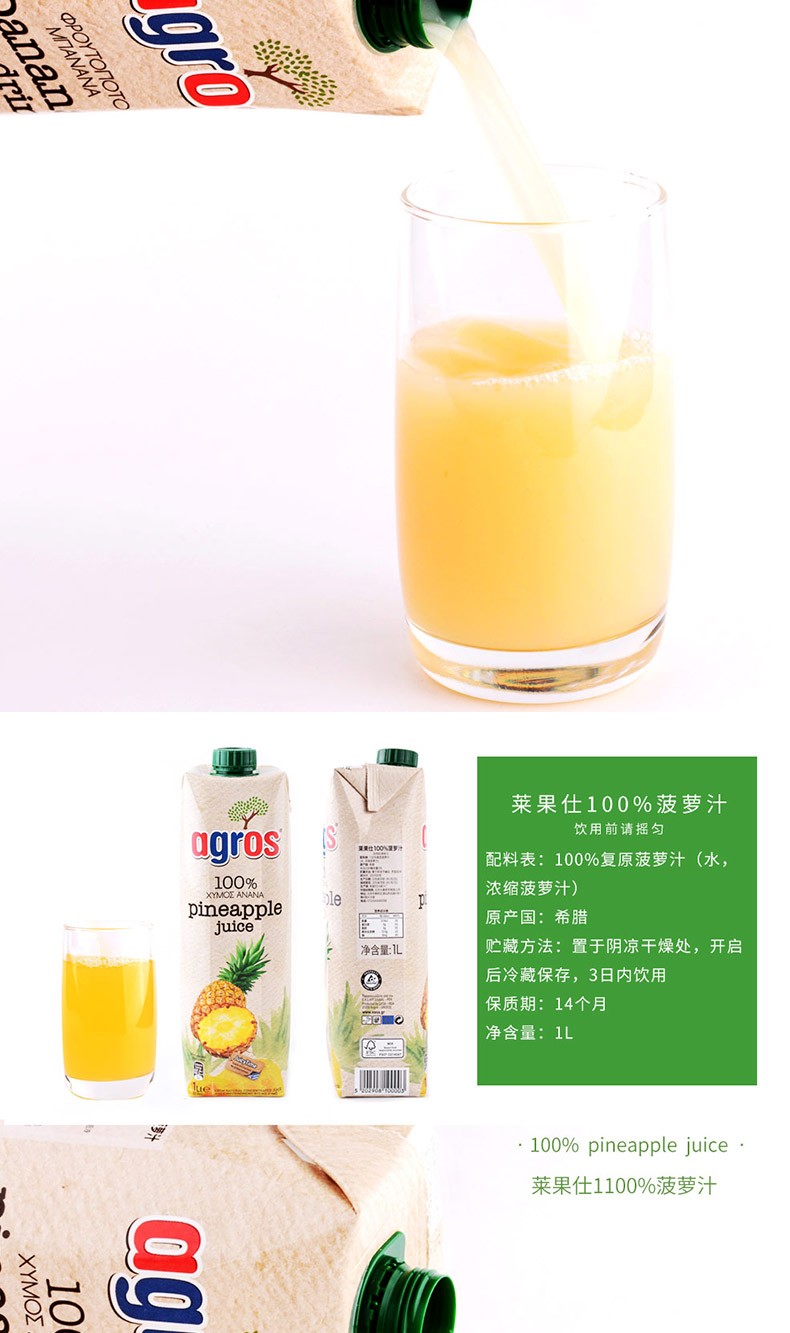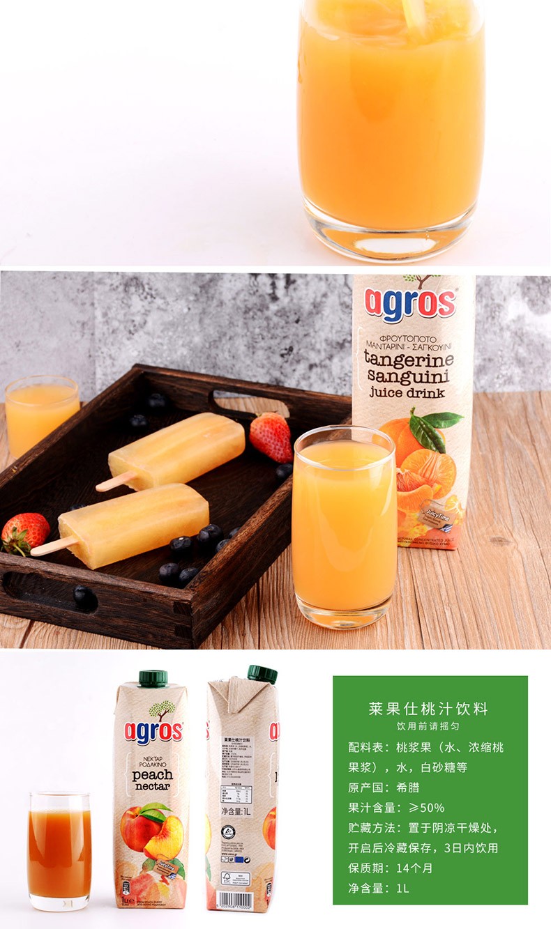 Agros imported from Greece, fruit juice drink, family size, peach juice 1L
