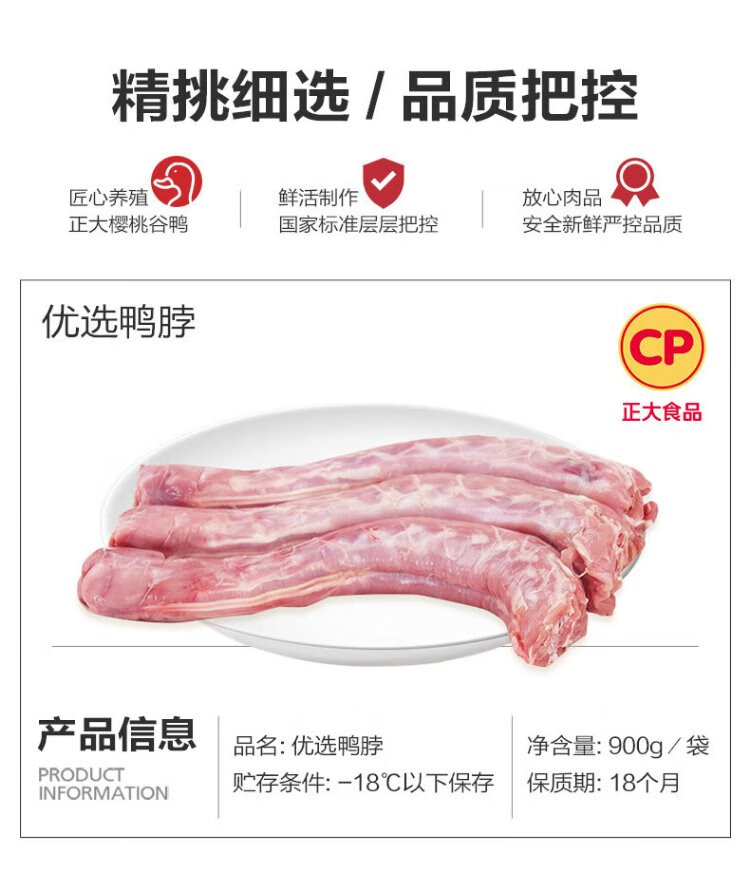 CP Zhengda Food Cherry Valley Duck Neck 1.8 Jin Jin equals 0.5 kg Fresh duck products Spicy Braised Duck products Duck meat hot pot ingredients