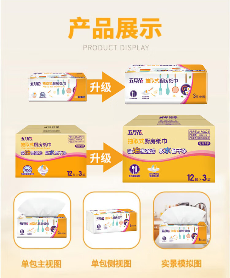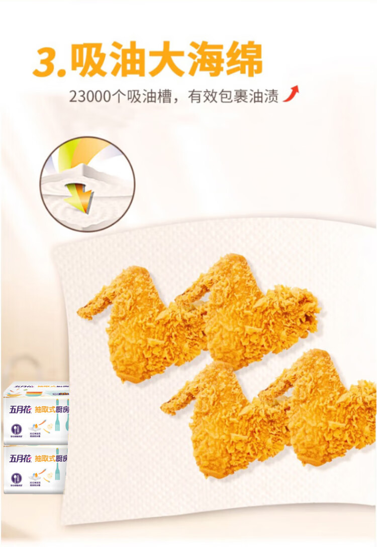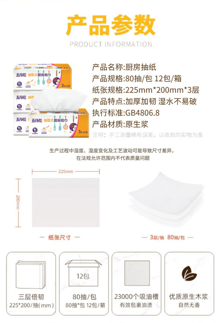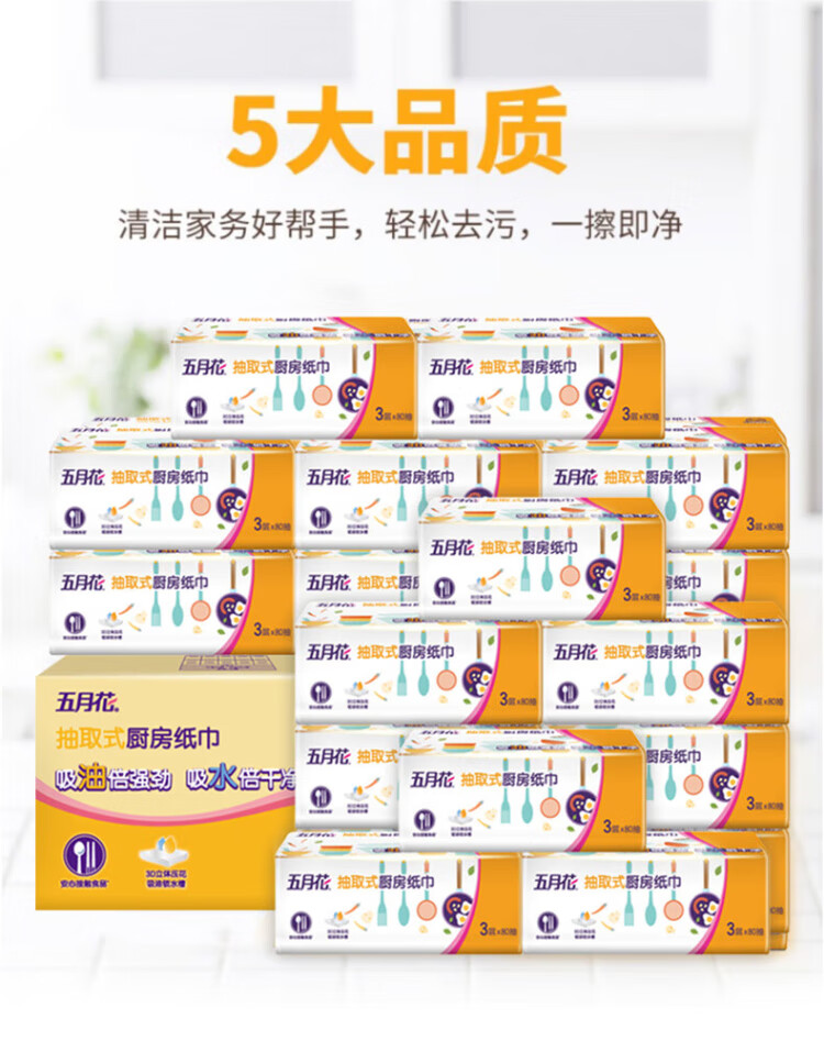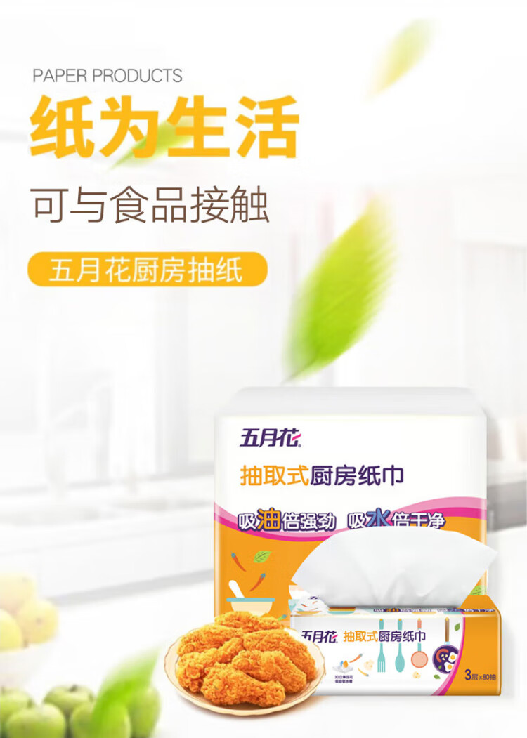 May Flower kitchen tissue, 3 layers, 80 sheets*12 packs, oil-absorbent, water-absorbent, food-contact, hand-wipe paper, full box