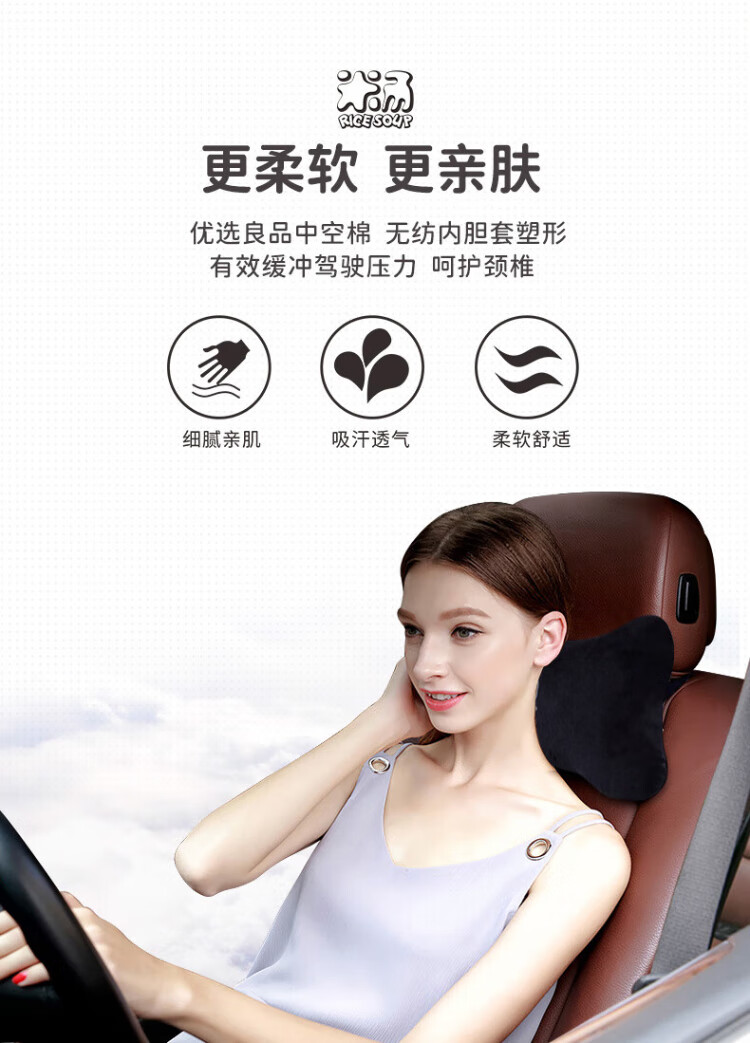 ICAROOM Car Headrest Cushion Driving Neck Pillow Pillow Car Seat Back Cushion Car Supplies