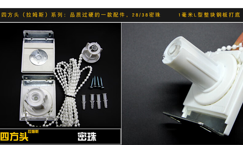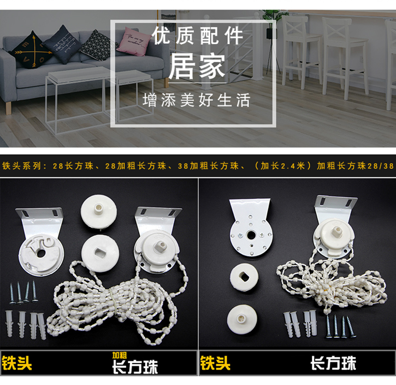 Zhenzhuang roller blind accessories rotating shaft curtain roller curtain zipper pull rope pull bead rope pull type hand lift controller blind pulley iron head (28 tubes) 2.4 meters rope