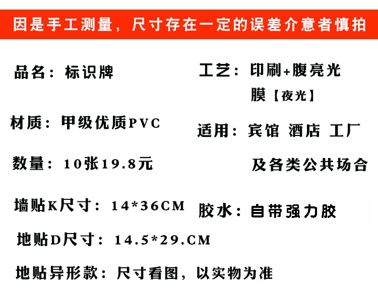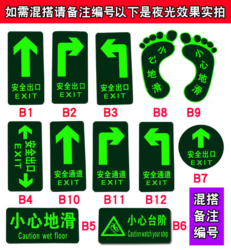 Zuopu luminous safety channel sign emergency evacuation emergency escape sign wall sticker fluorescent safety exit floor sticker 10 channels straight 14.5*29.5CM