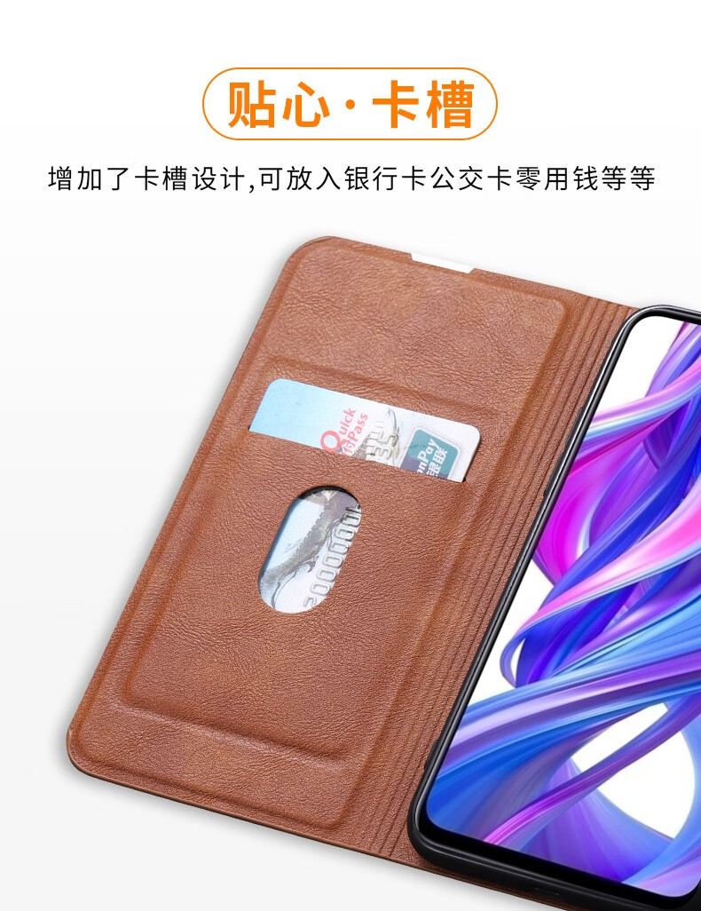 Peno Huawei Honor 9x mobile phone case Honor 9xpro flip-up protective leather case card viewing stand silicone soft shell all-inclusive anti-fall leather case for men and women Huawei Honor 9x magnetic flip leather case jazz black